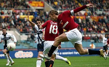 ROMA, 19 dicembre 2004 - Il Parma incappa nel "Totti day" e naufraga miseramente all'Olimpico, Carmignani non poteva immaginare esordio peggiore sulla panchina dei gialloblù. Finisce 5-1 per la Roma con una doppietta del capitano (che sale a quota 108 gol in giallorosso, miglior marcatore di tutti i tempi), due gol di Cassano, uno di Montella e il centro della bandiera emiliana realizzato da Bovo. La squadra di Del Neri è ormai tonica e reattiva, schiaccia subito il Parma nella sua area e non lascia spazi al contropiede avversario. Una Roma giovane con Curci in porta al posto del febbricitante Zotti, con un 3-4-3 che vede la difesa schierata con Dellas, Ferrari e Mexes, centrocampo con Panucci a destra, Cufrè a sinistra Aquilani e De Rossi centrali, trittico d'attacco formato da Montella, Totti e Cassano. Carmignani risponde con un 4-4-1-1 nel quale Morfeo è schierato alle spalle dell'unica punta Gilardino. Il Parma prova a sorprendere i padroni di casa con un pressing iniziale, ma sono fuochi fatui, perché la Roma non è più quella di inizio campionato e i suoi giovani, ben protetti e allenati da del Neri, uniscono la bravura tattica alla spigliatezza dell'età. Aggiungete che là davanti ci sono tre signori che farebbero felice qualsiasi allenatore. Cassano sta bene e si vede, Totti insegue il record di gol in giallorosso e Montella la classifica cannonieri. Il 2-0 che si registra alla mezzora (primo centro del capitano romanista) è la pallida fotografia di una gara a senso unico. Nemmeno quando Bovo, allo scadere, dimezza lo svantaggio, si ha l'impressione che il Parma possa riaprire la gara. E infatti, nella ripresa, primissimi minuti a parte, il monologo giallorosso continua, senza che gli ospiti abbiano la forza di replicare in alcun modo. Così, una volta segnalate le proteste degli ospiti per il primo gol di Totti (c'era Ferronetti a terra in area gialloblù) per il gol annullato a Morfeo per un fuorigioco contestato, va dato atto alla squadra di Del Neri di aver sofferto soltanto sui calci piazzati, di aver messo in mostra un portiere esordiente, Curci, che esce e para con la calma del veterano. Unico vero neo l'ammonizione a Montella che, diffidato, salterà l'atteso derby della Befana. |