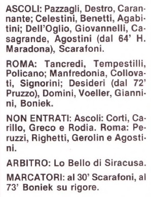 ASCOLI - ROMA 1-1 Ascoli, Stadio Cino e Lillo Del Duca domenica 13 settembre 1987 ore: 16:00 ![]() invia una e-mail per i resoconti |