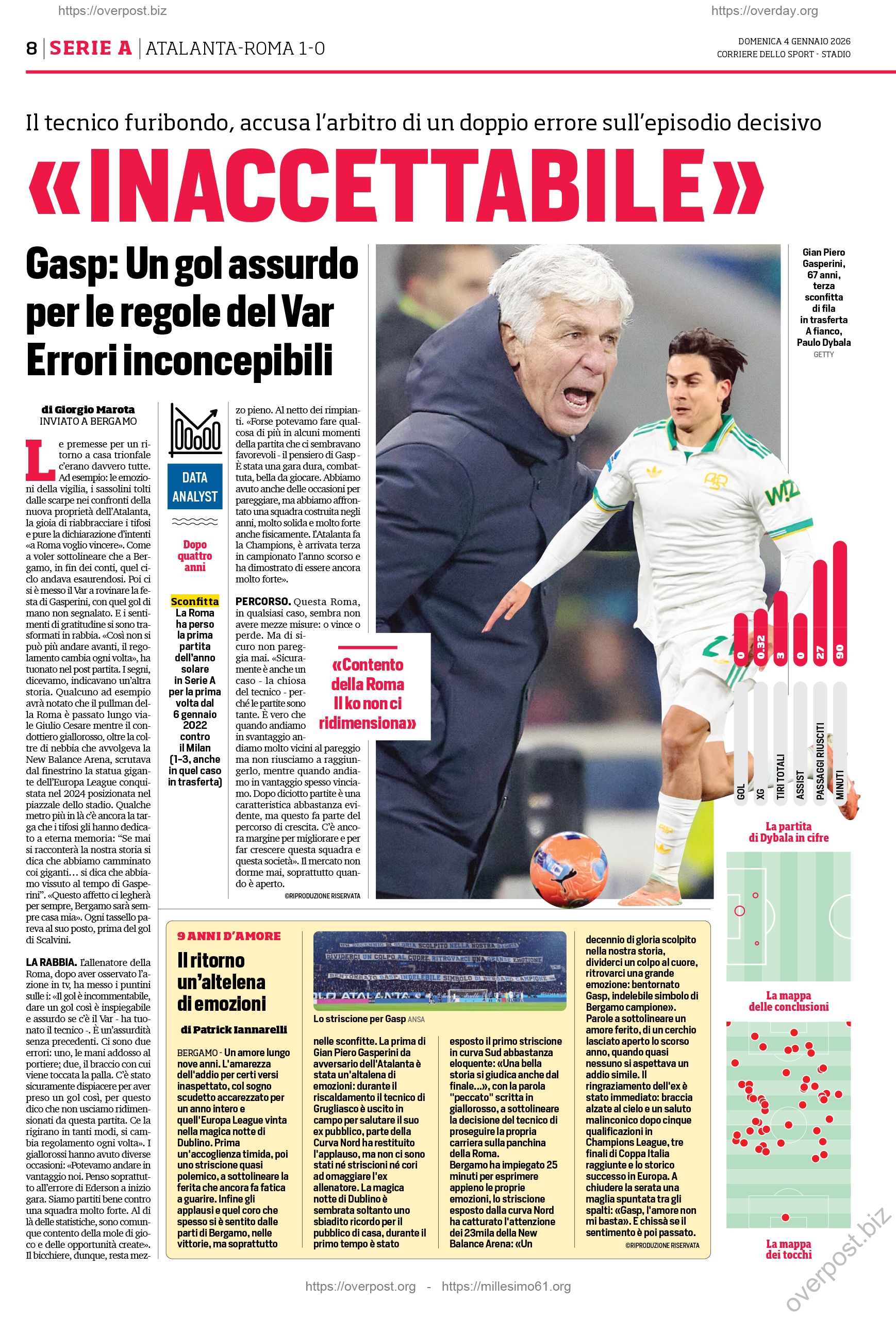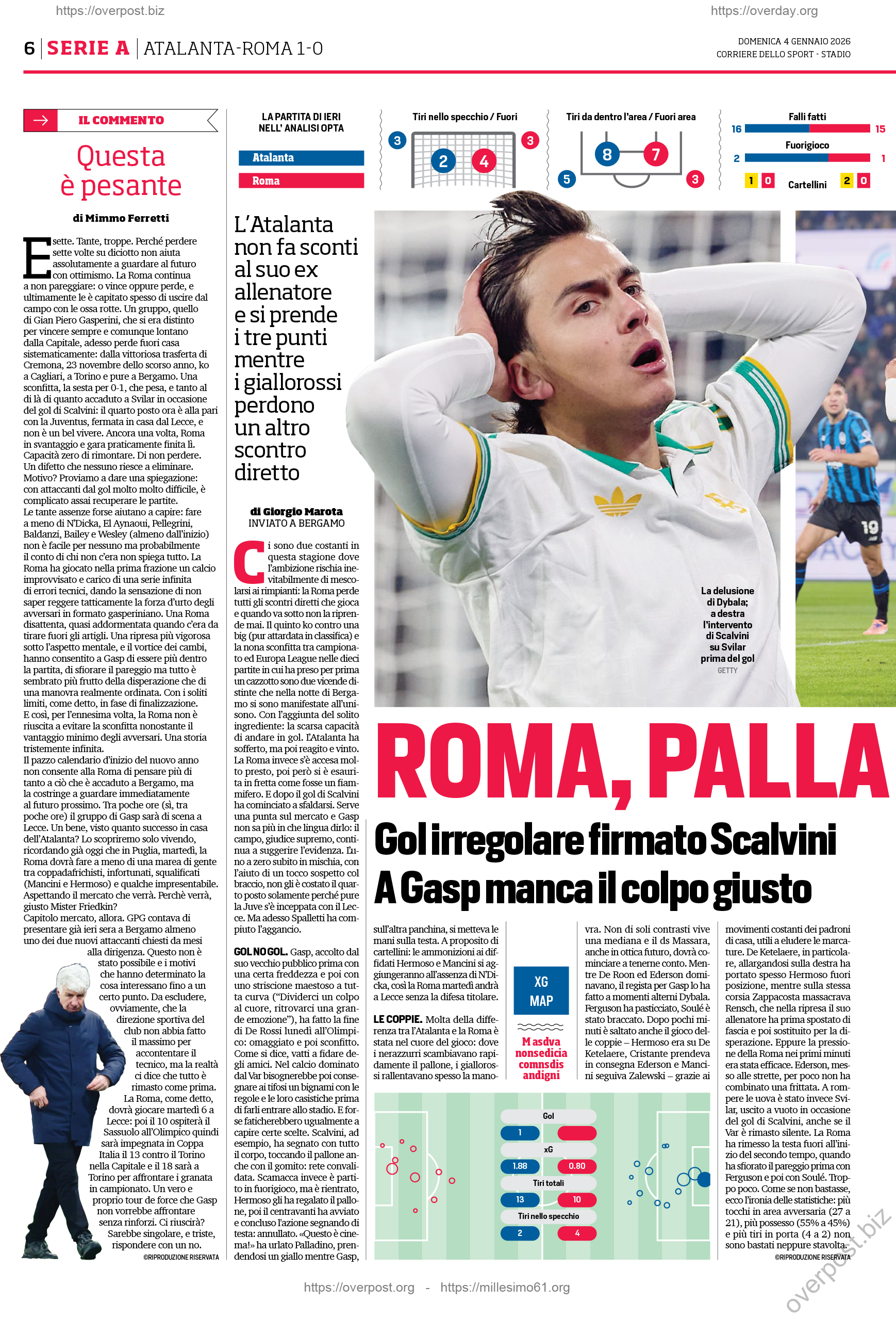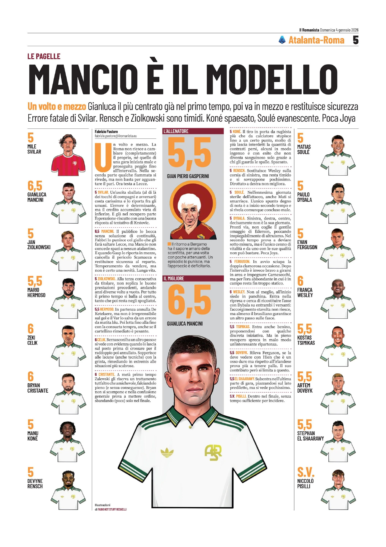 Tsimikas); Soulé (67' El Shaarawy), Dybala; Evan