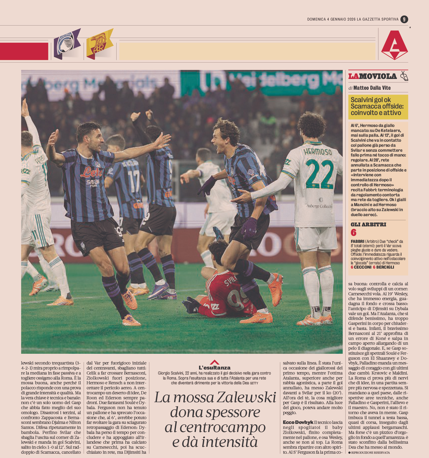 Hermoso per fallo su Zalewski.
