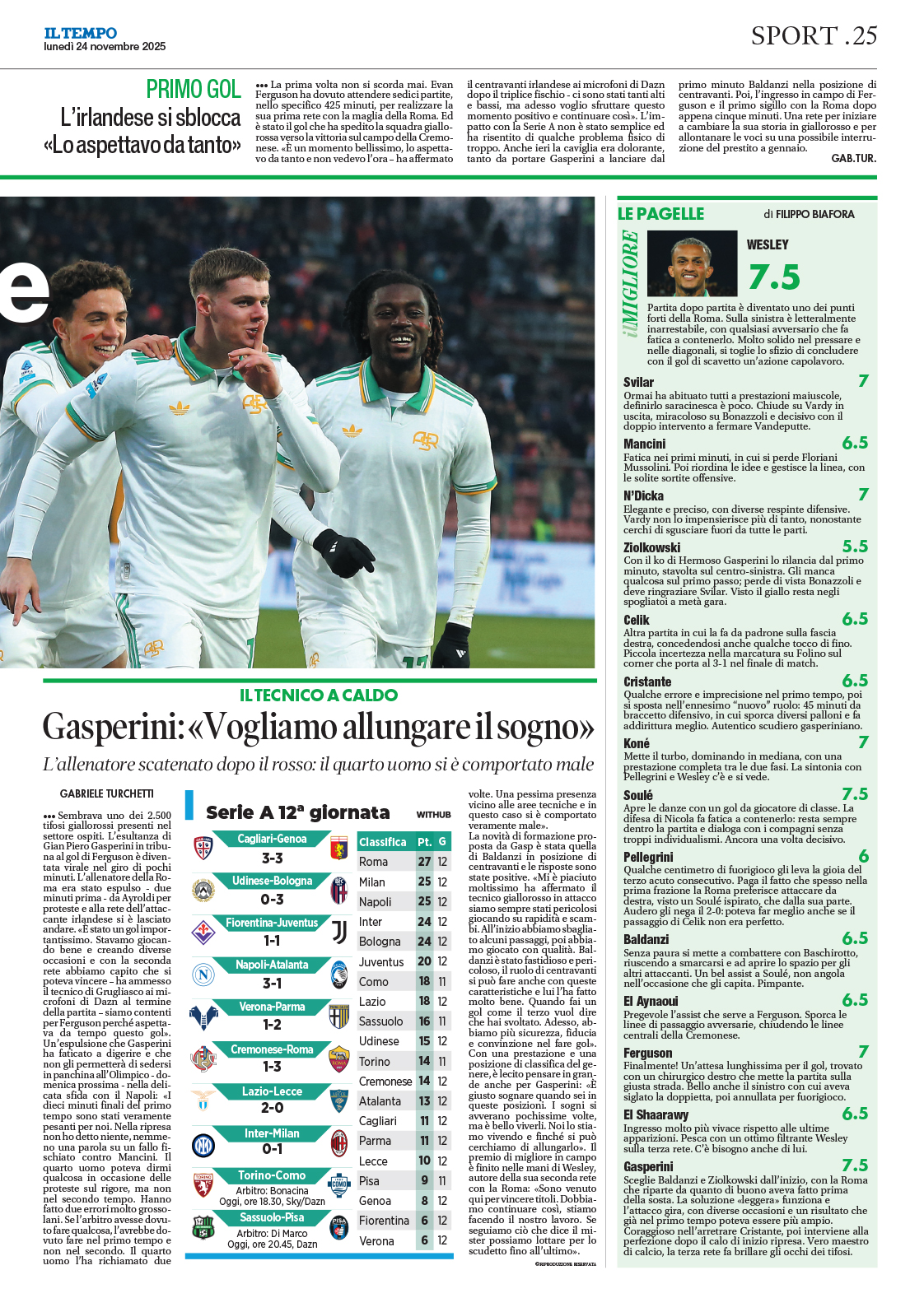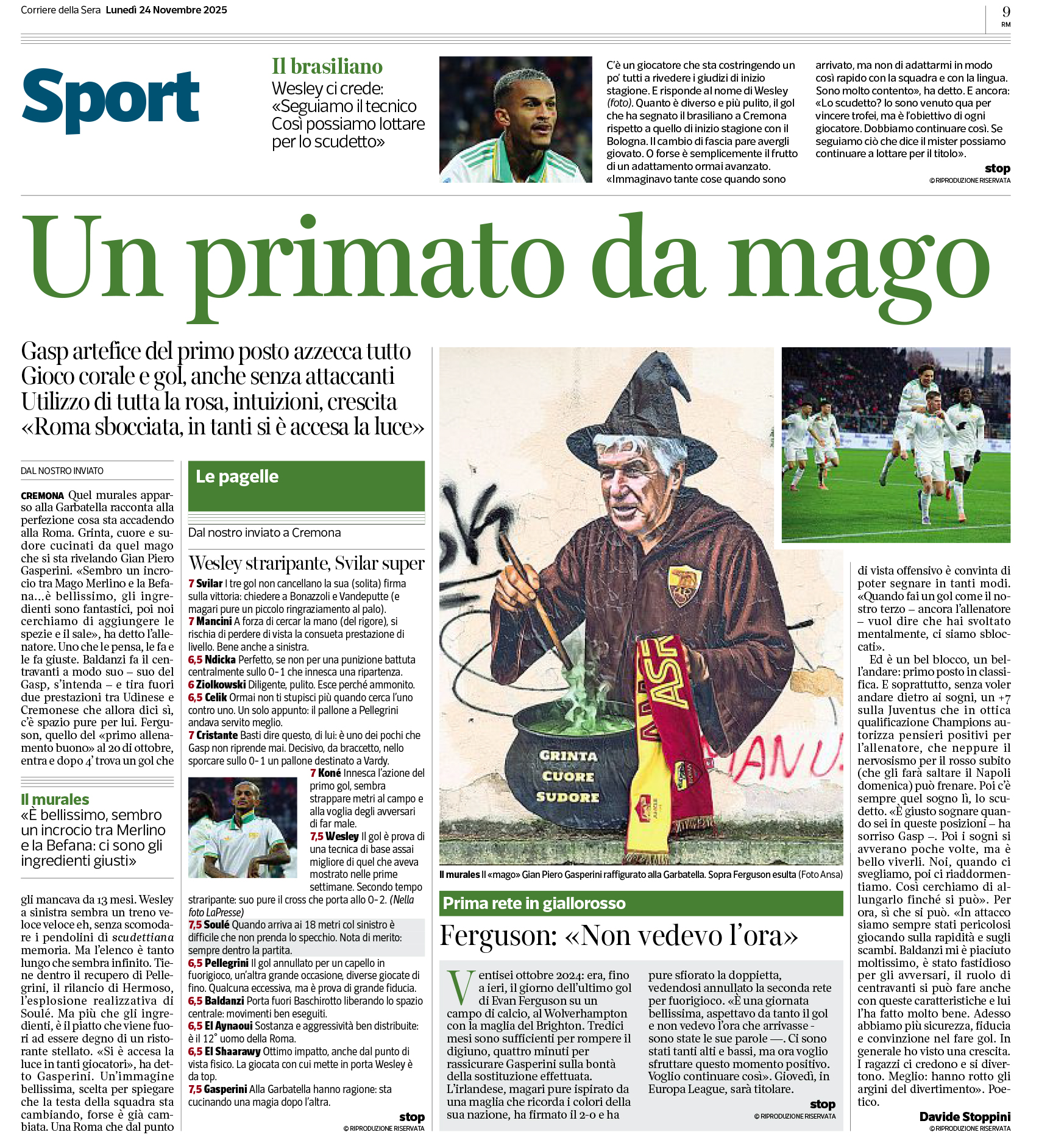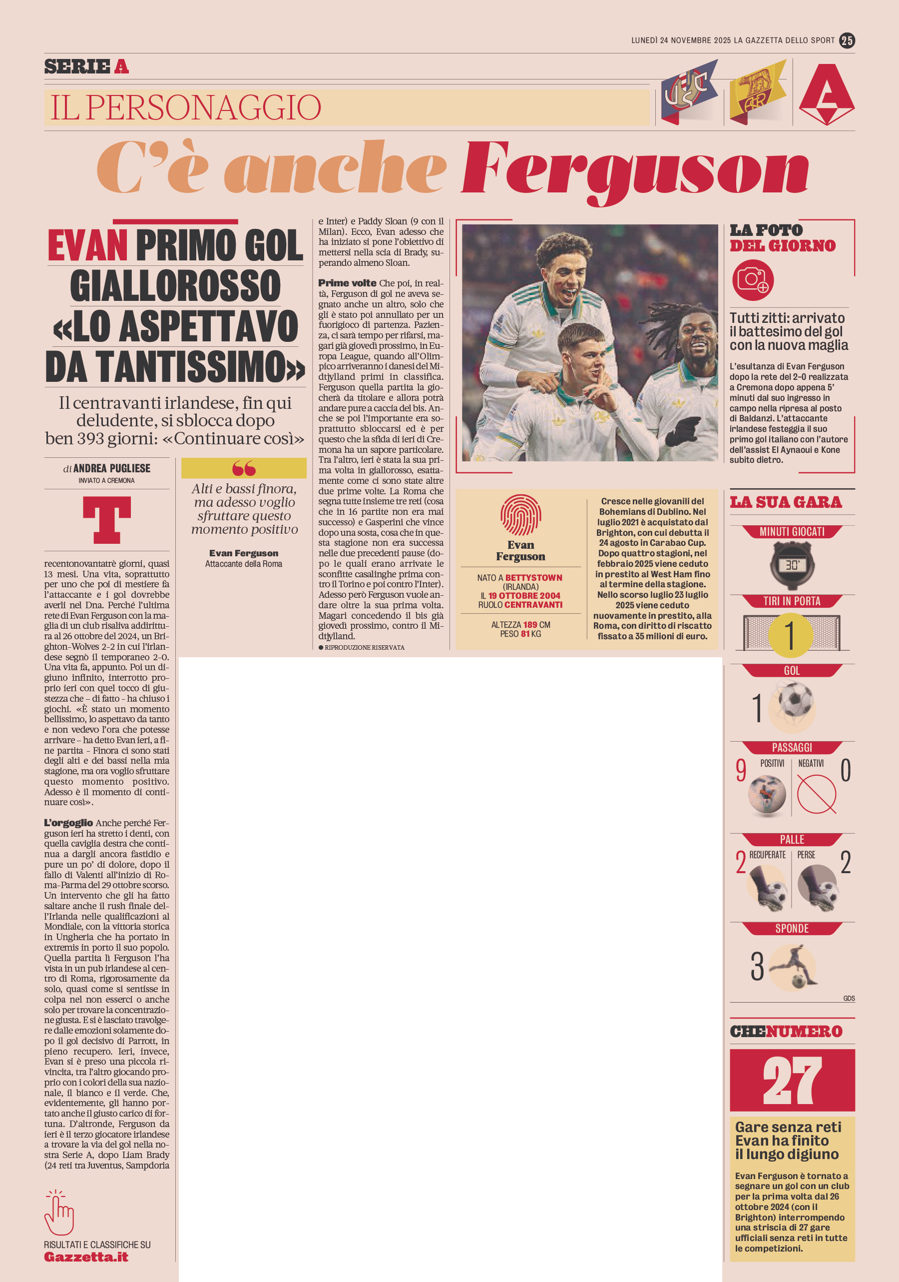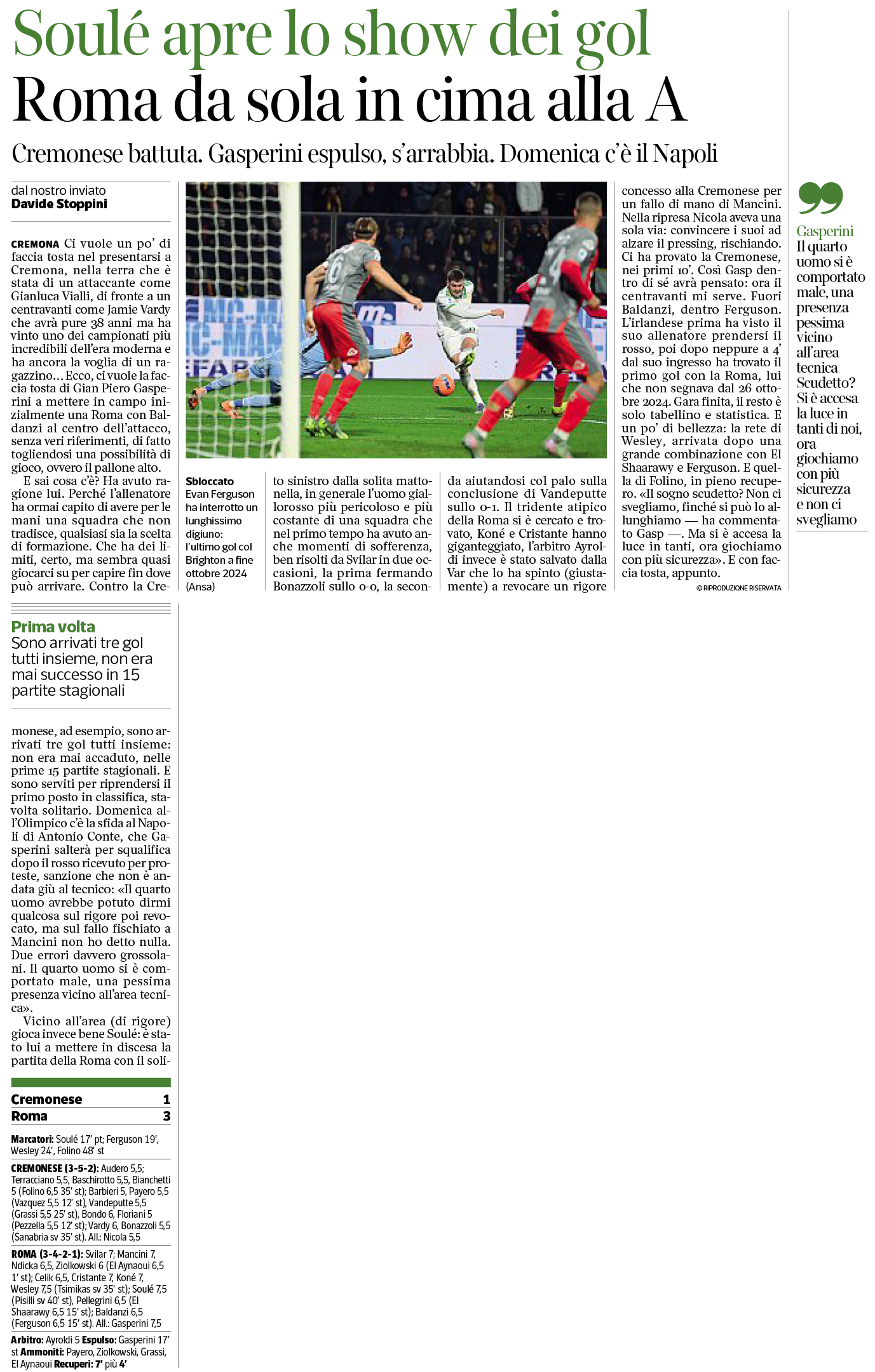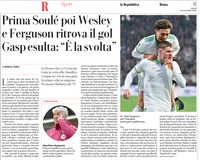 Reti: 17′ Soulé (R), 64′ Ferguson (R), 69′