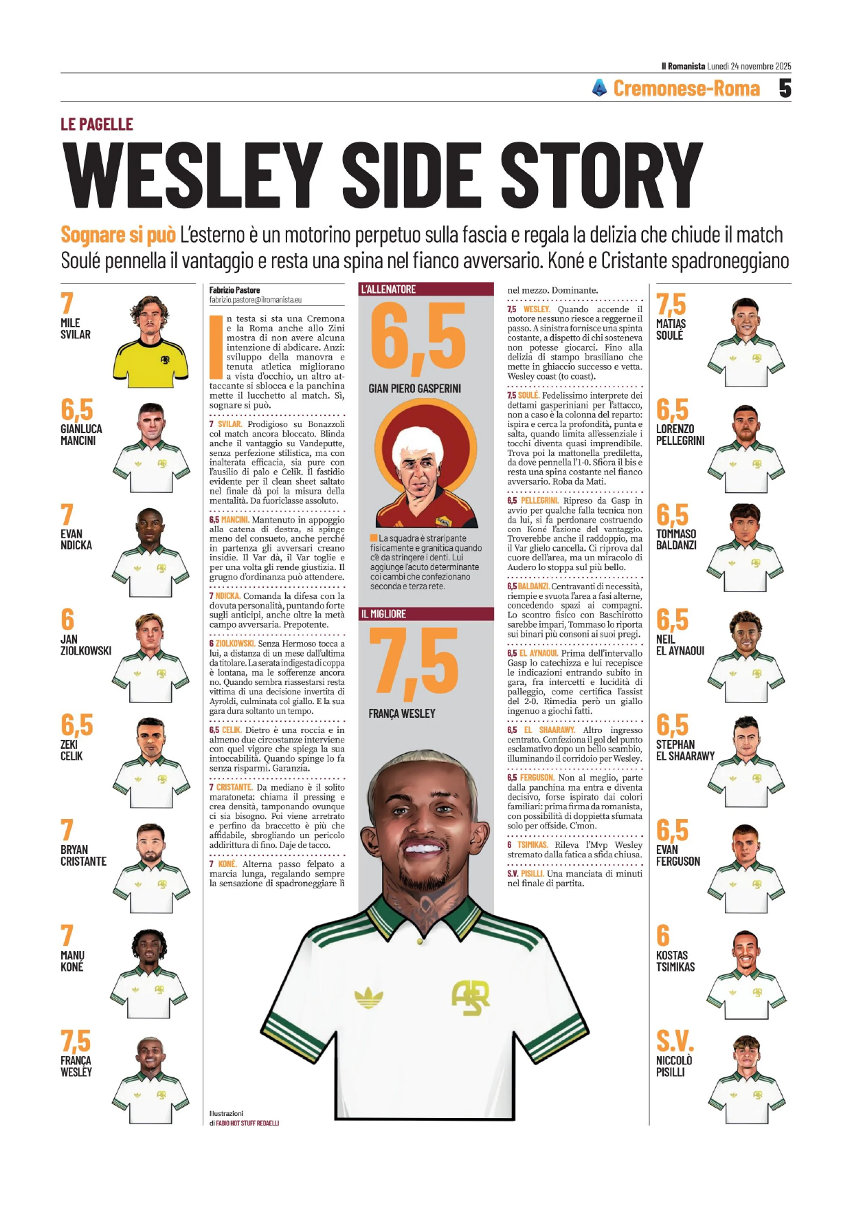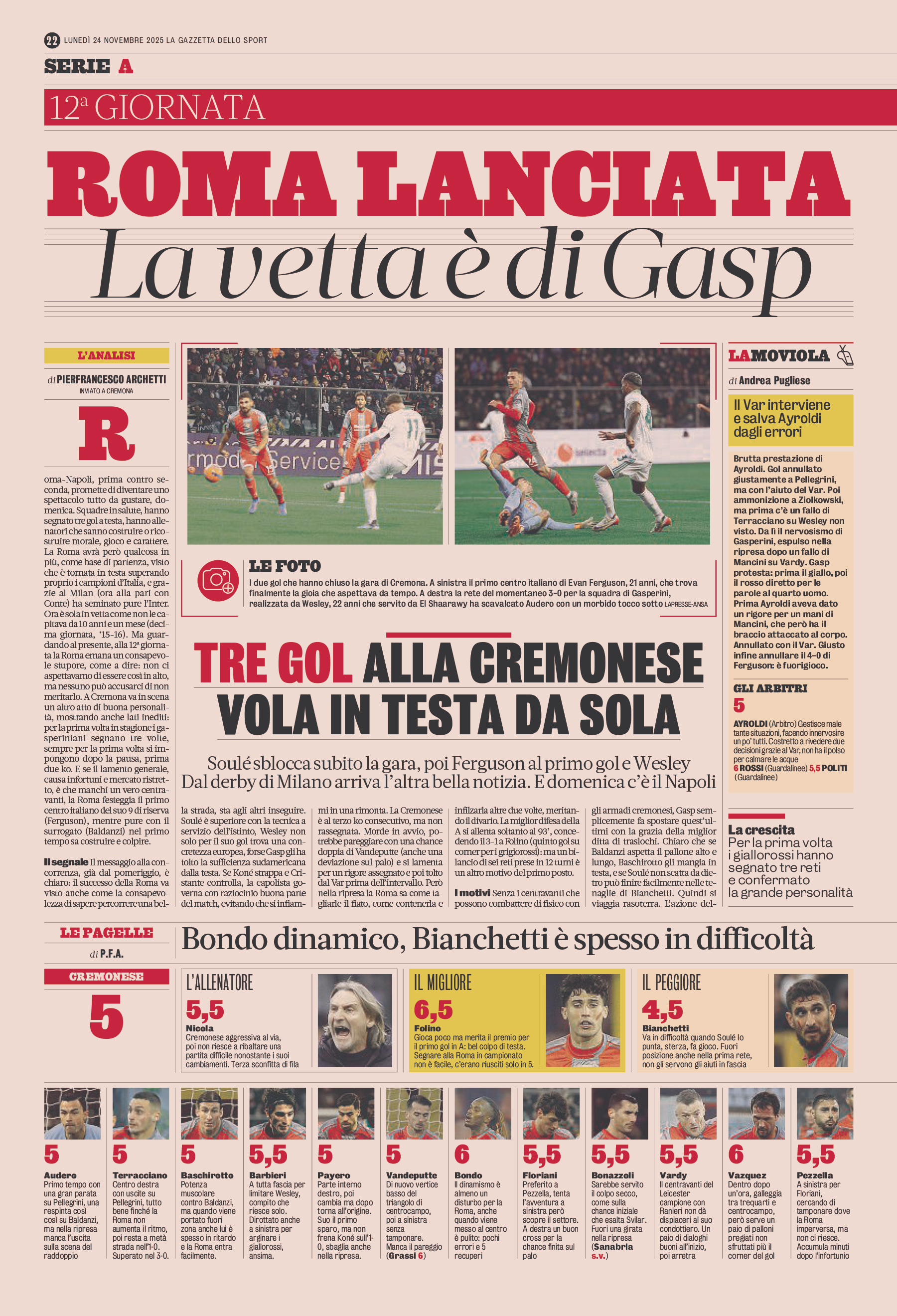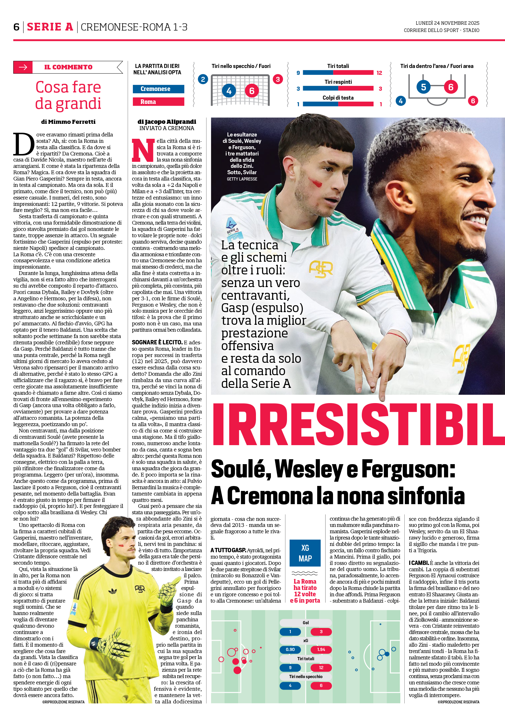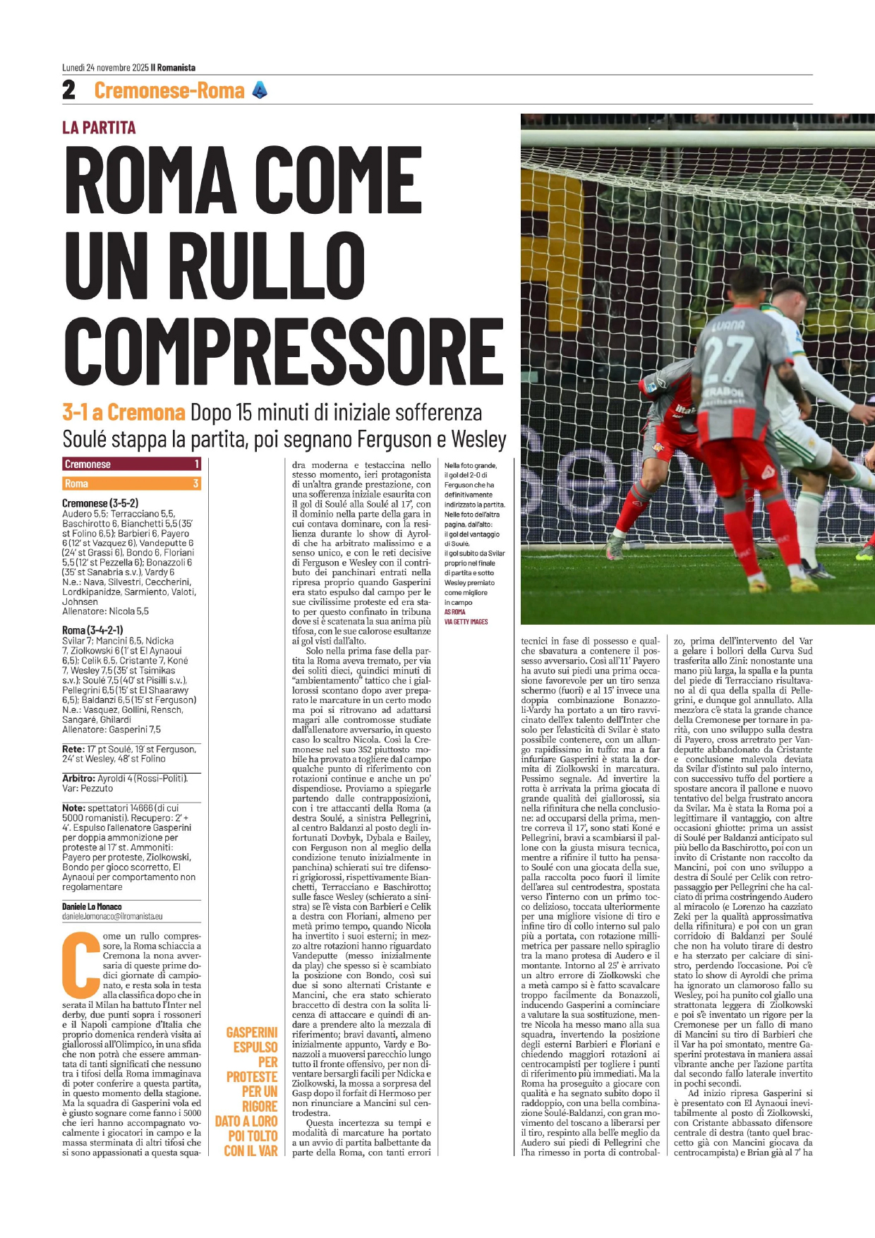 Cristante, Koné, Wesley (80′ Tsimikas); Soulé (85′