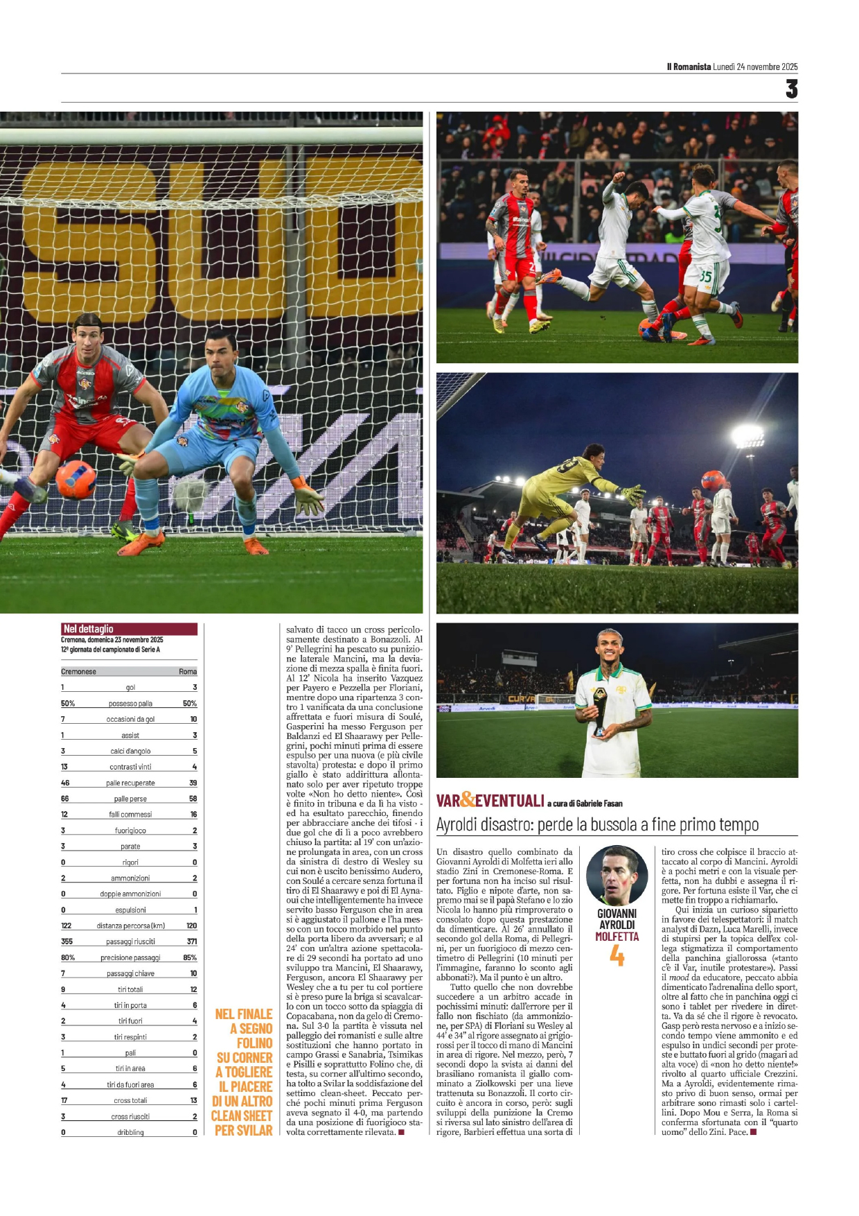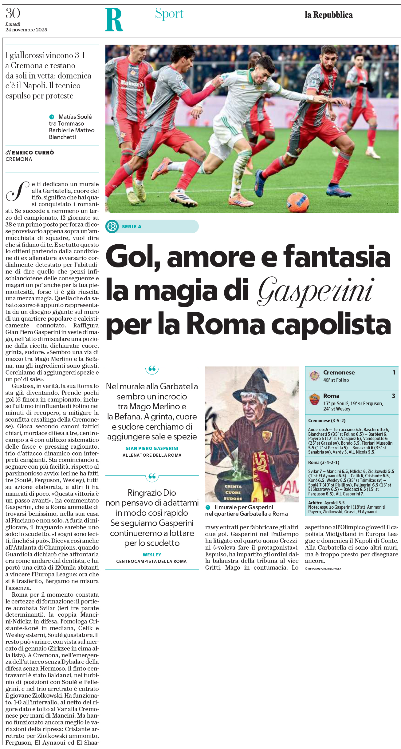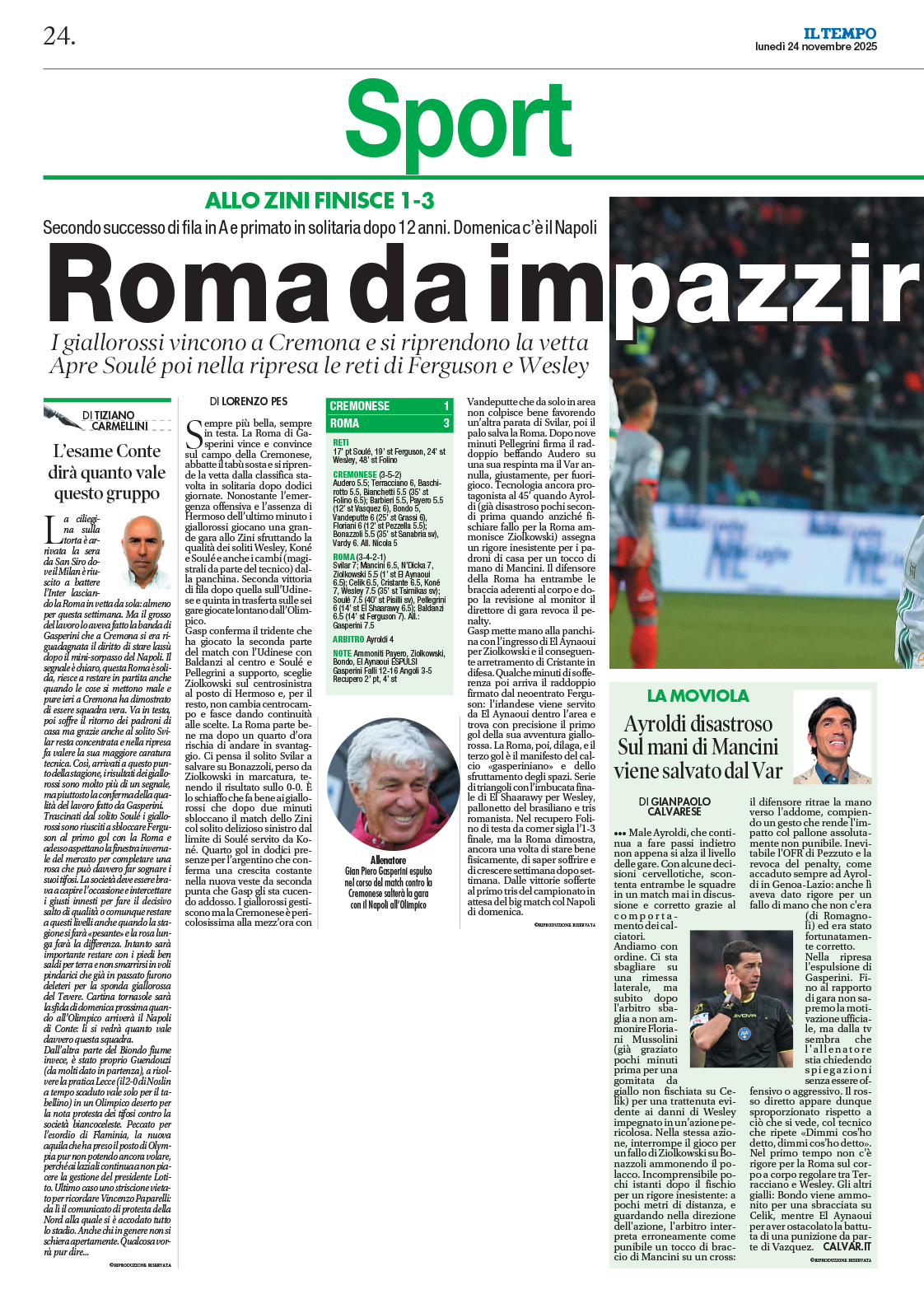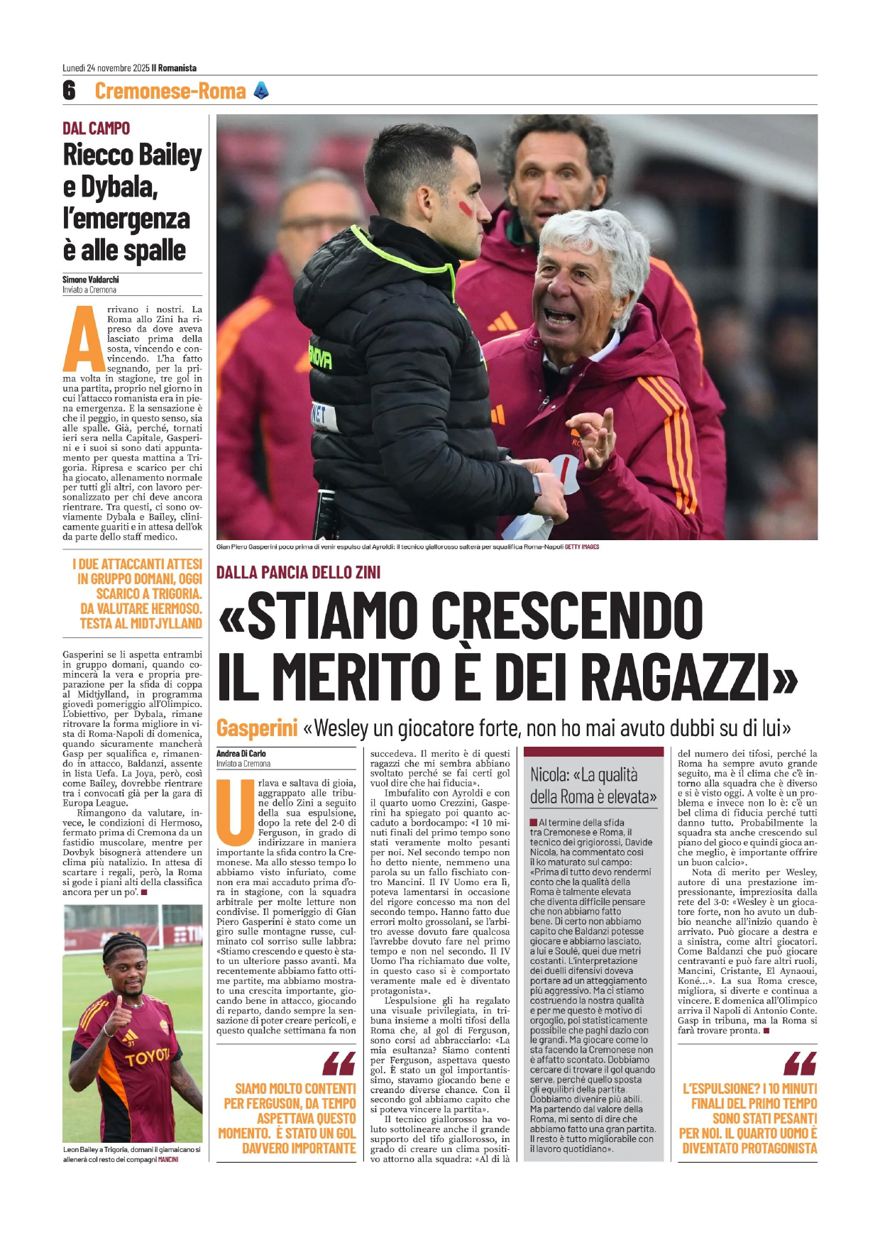 Cristante, Koné, Wesley (80′ Tsimikas); Soulé (85′