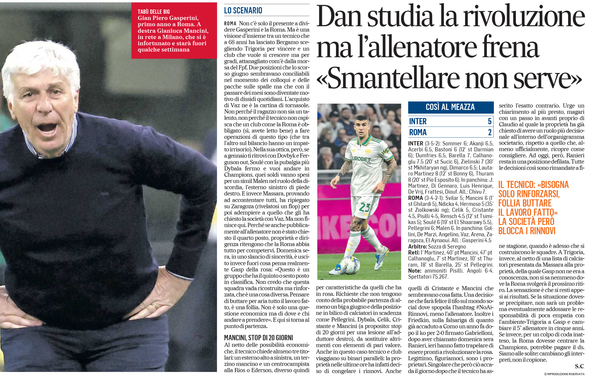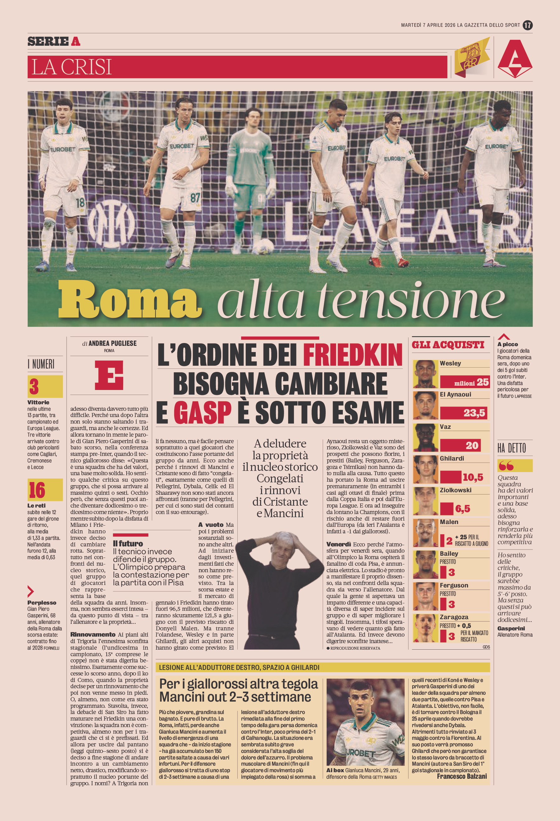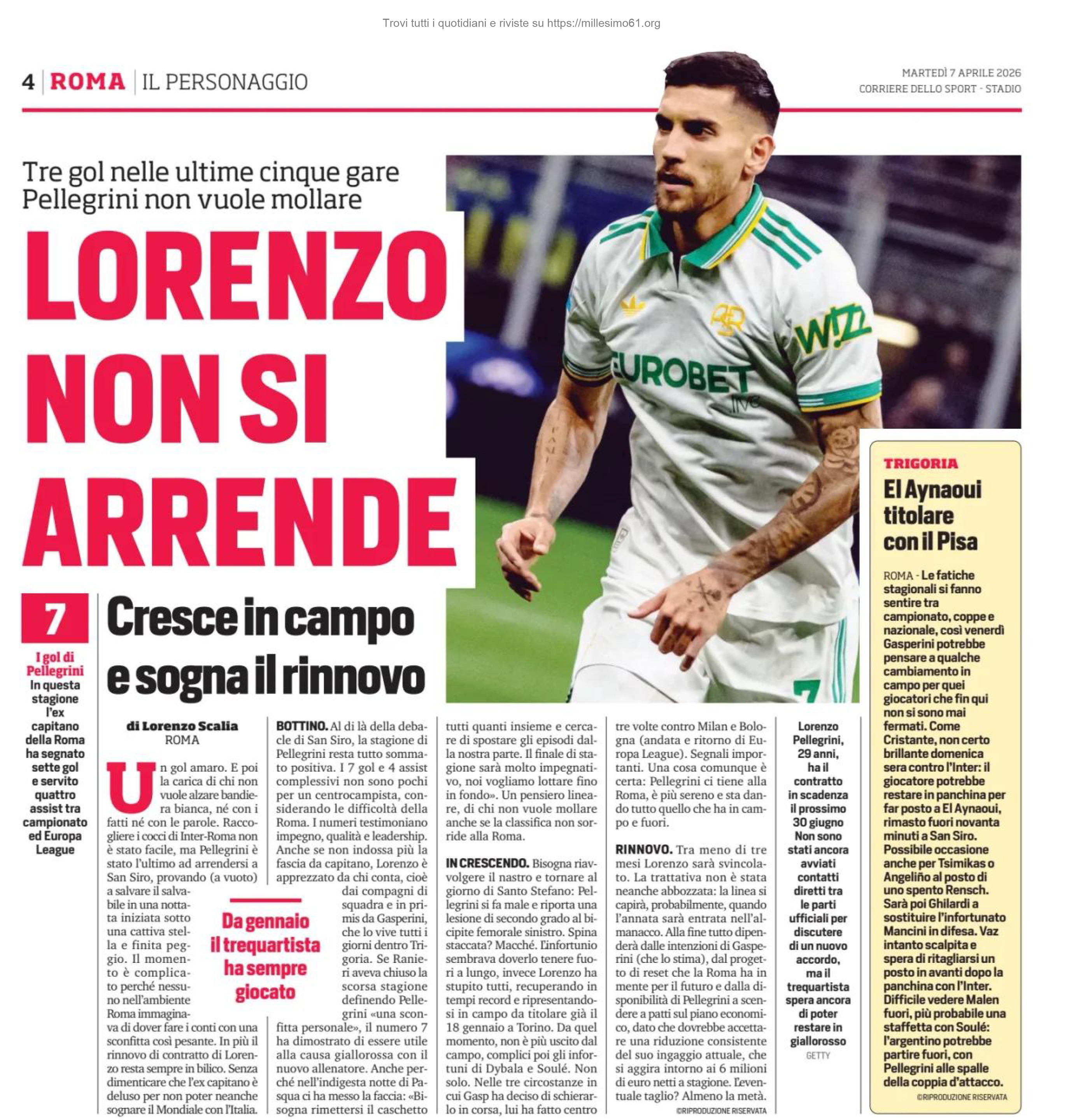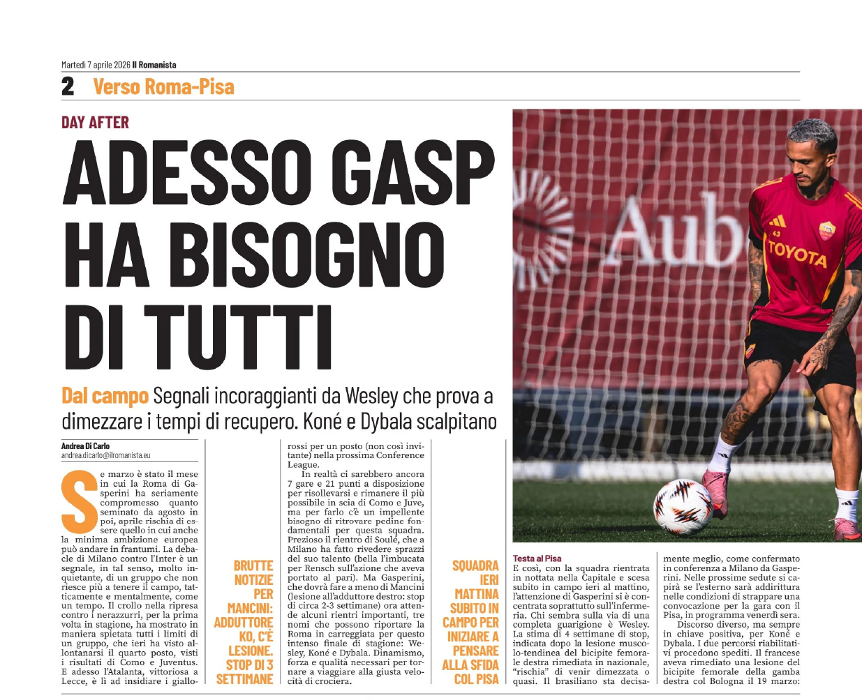 Pellegrini, Soulé (64' El Shaarawy); Malen.