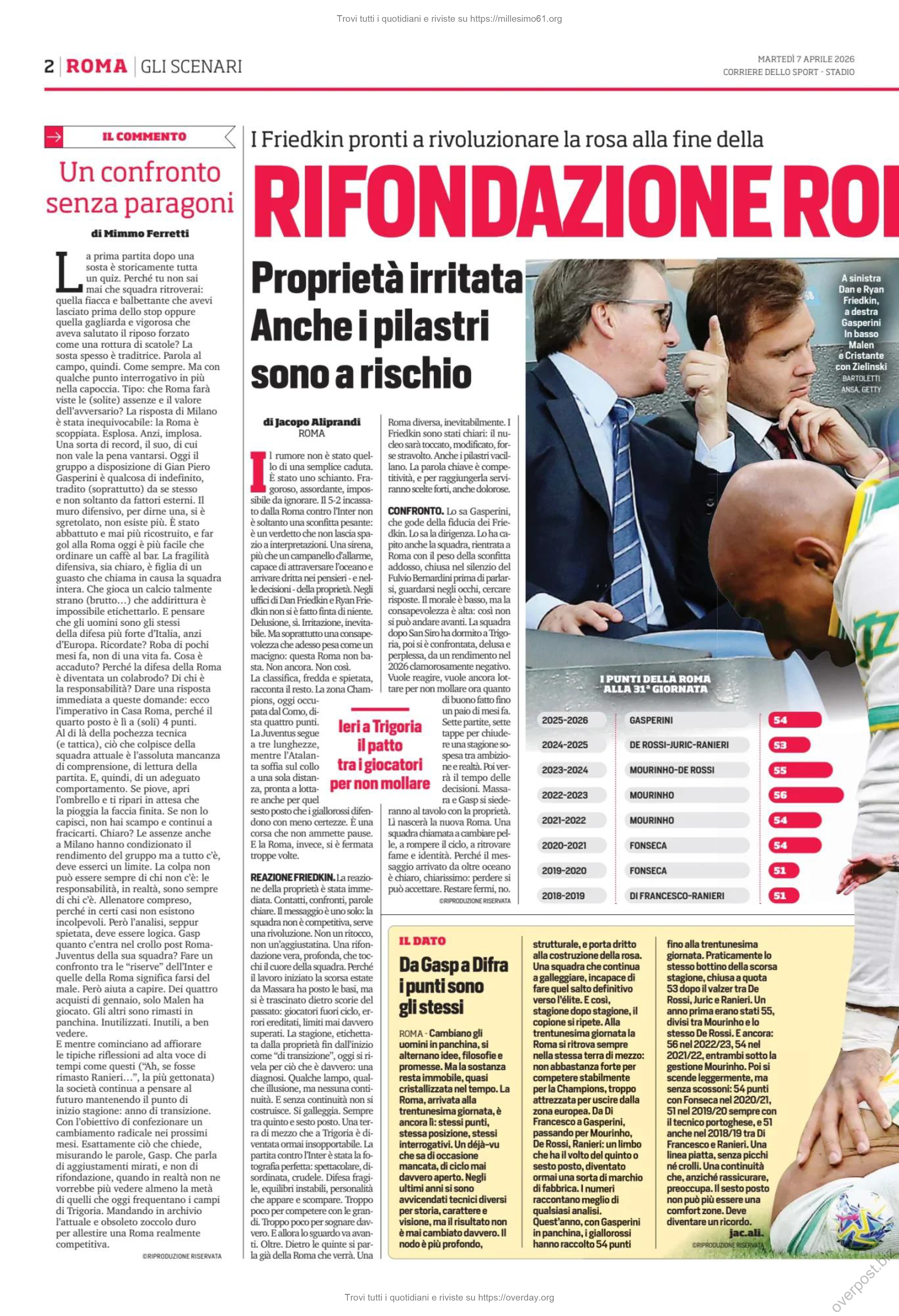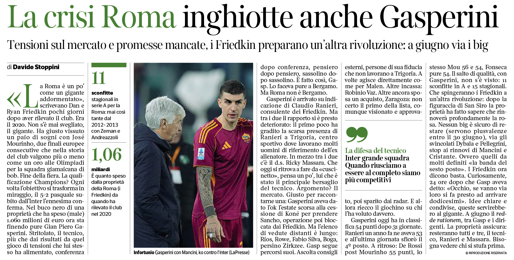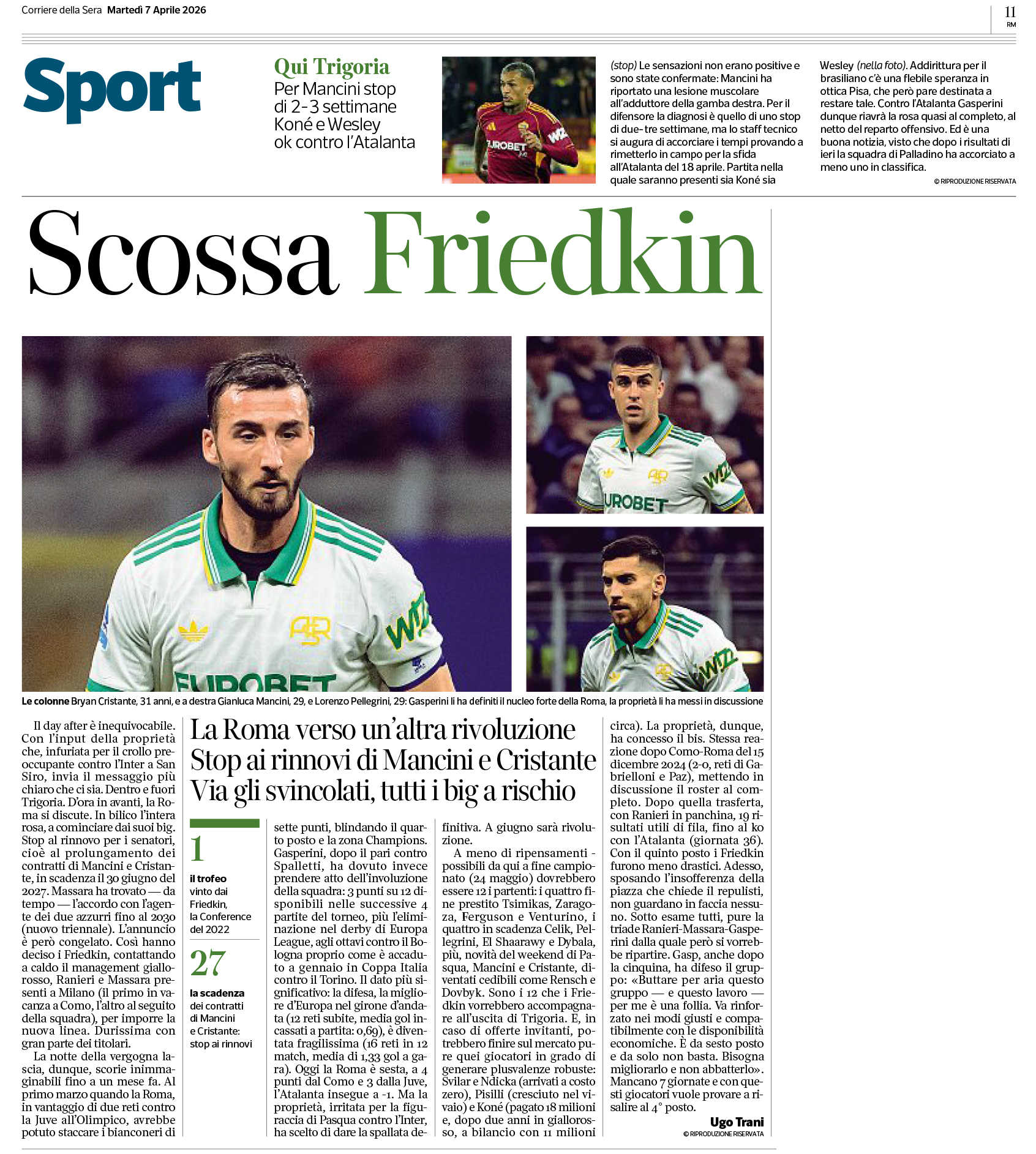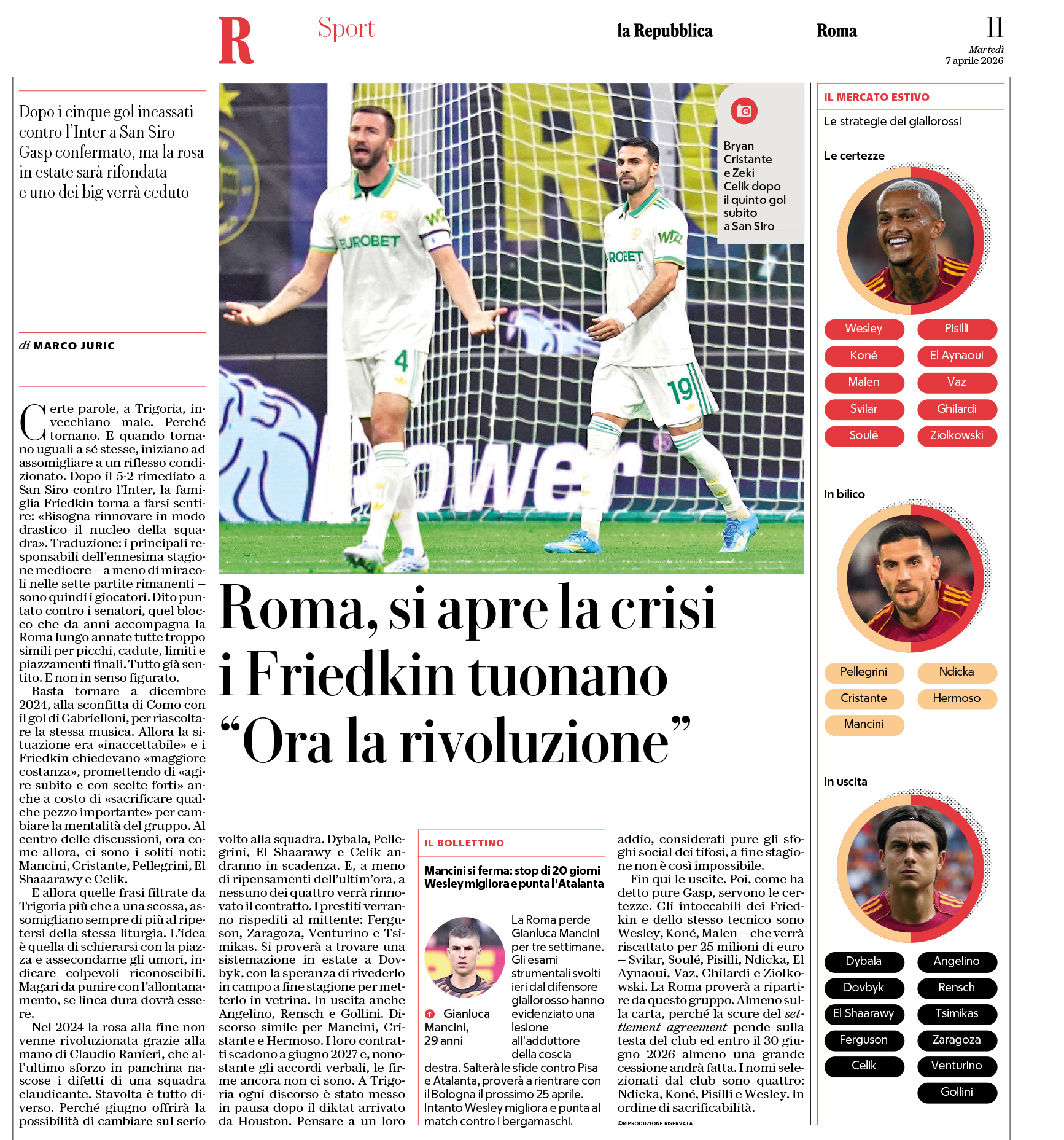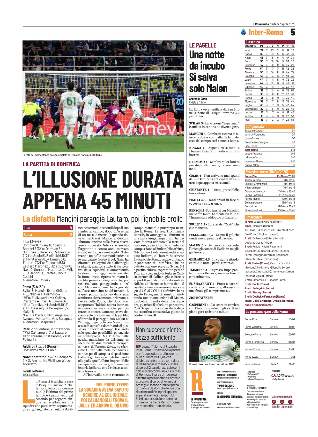 Pellegrini, Soulé (64' El Shaarawy); Malen.