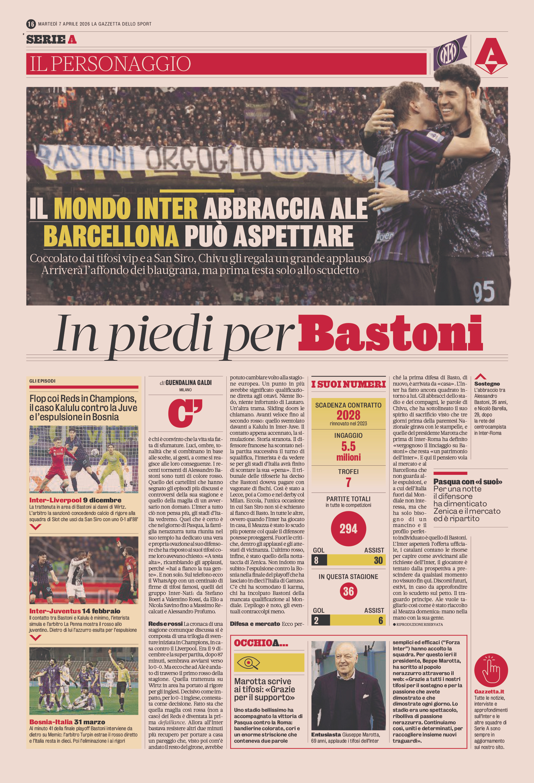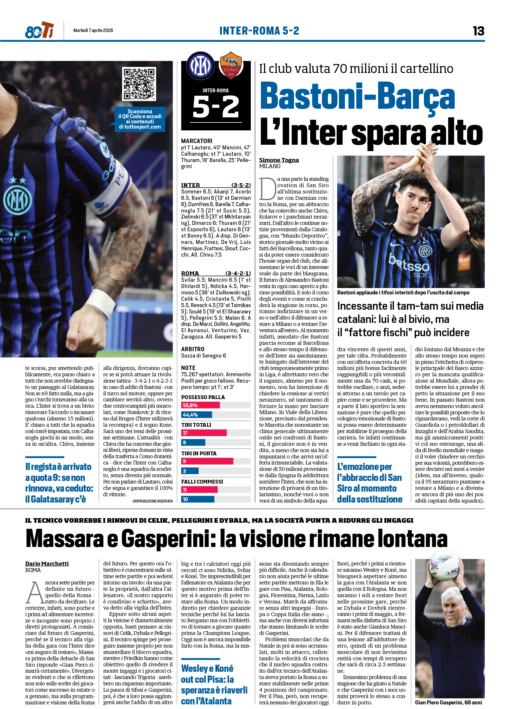 Bastoni (58' Darmian); Dumfries, Barella, Çalhanoglu