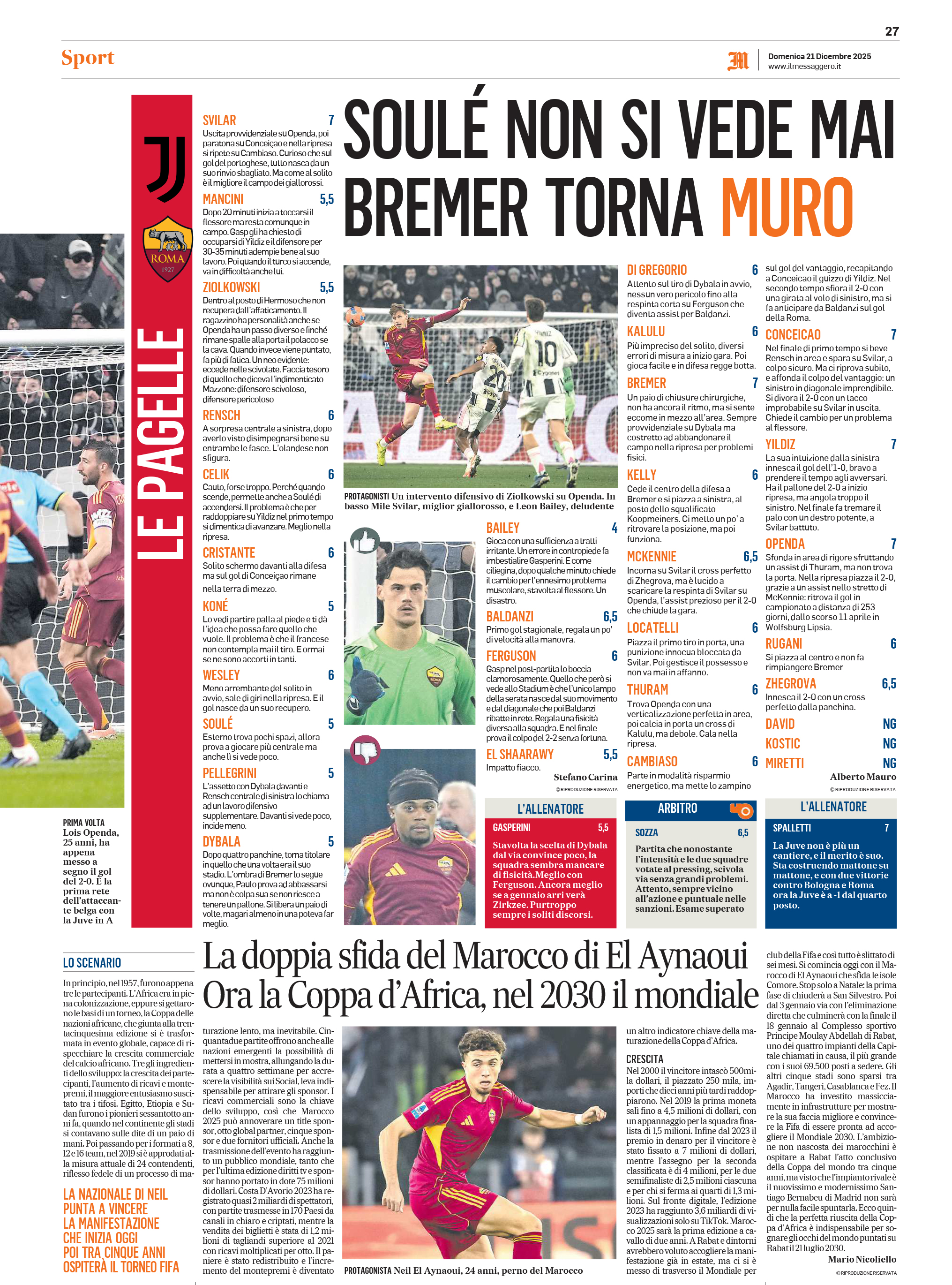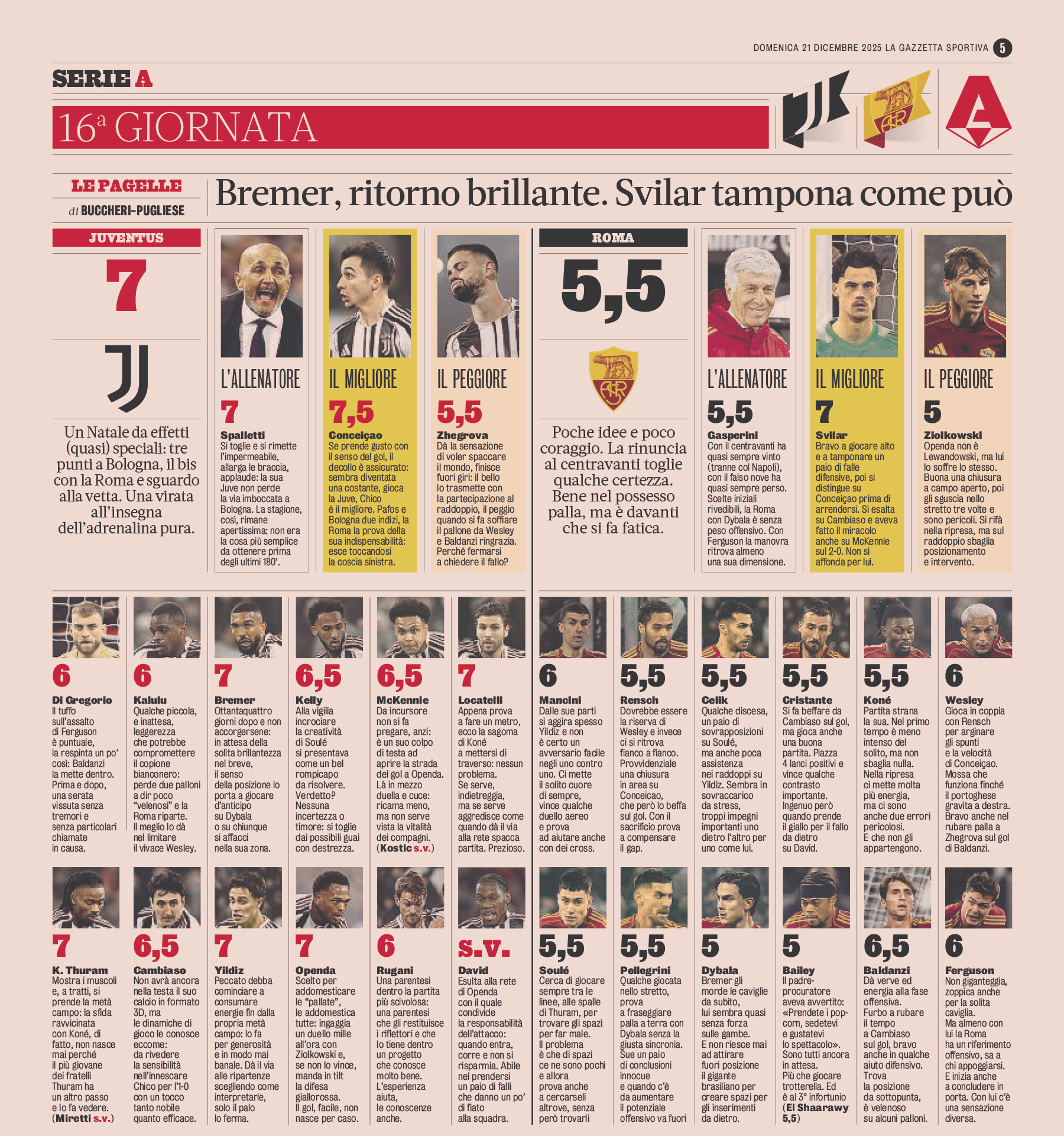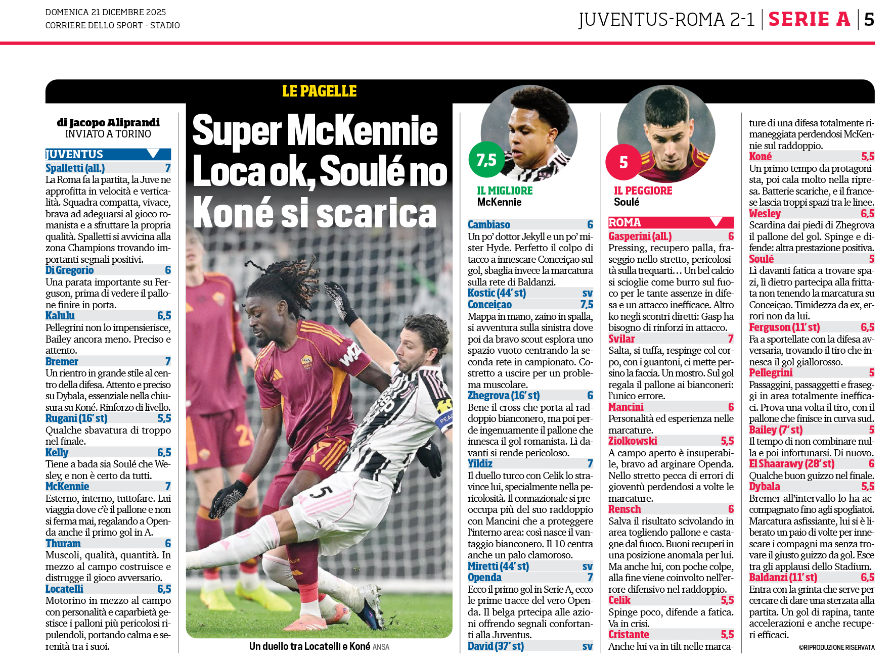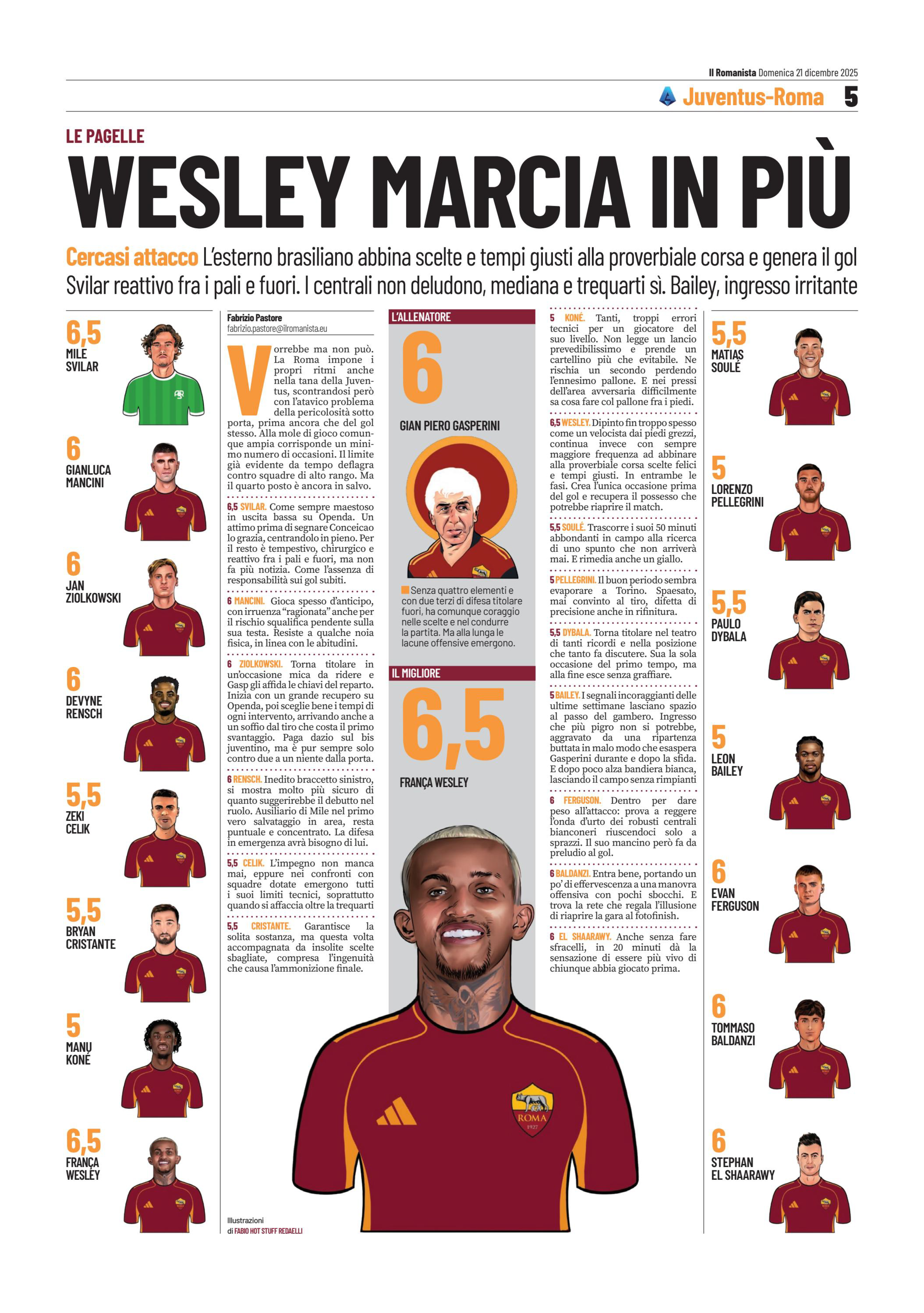 Cristante 6, Kone 5, Wesley 7; Soulé 5 (11’st