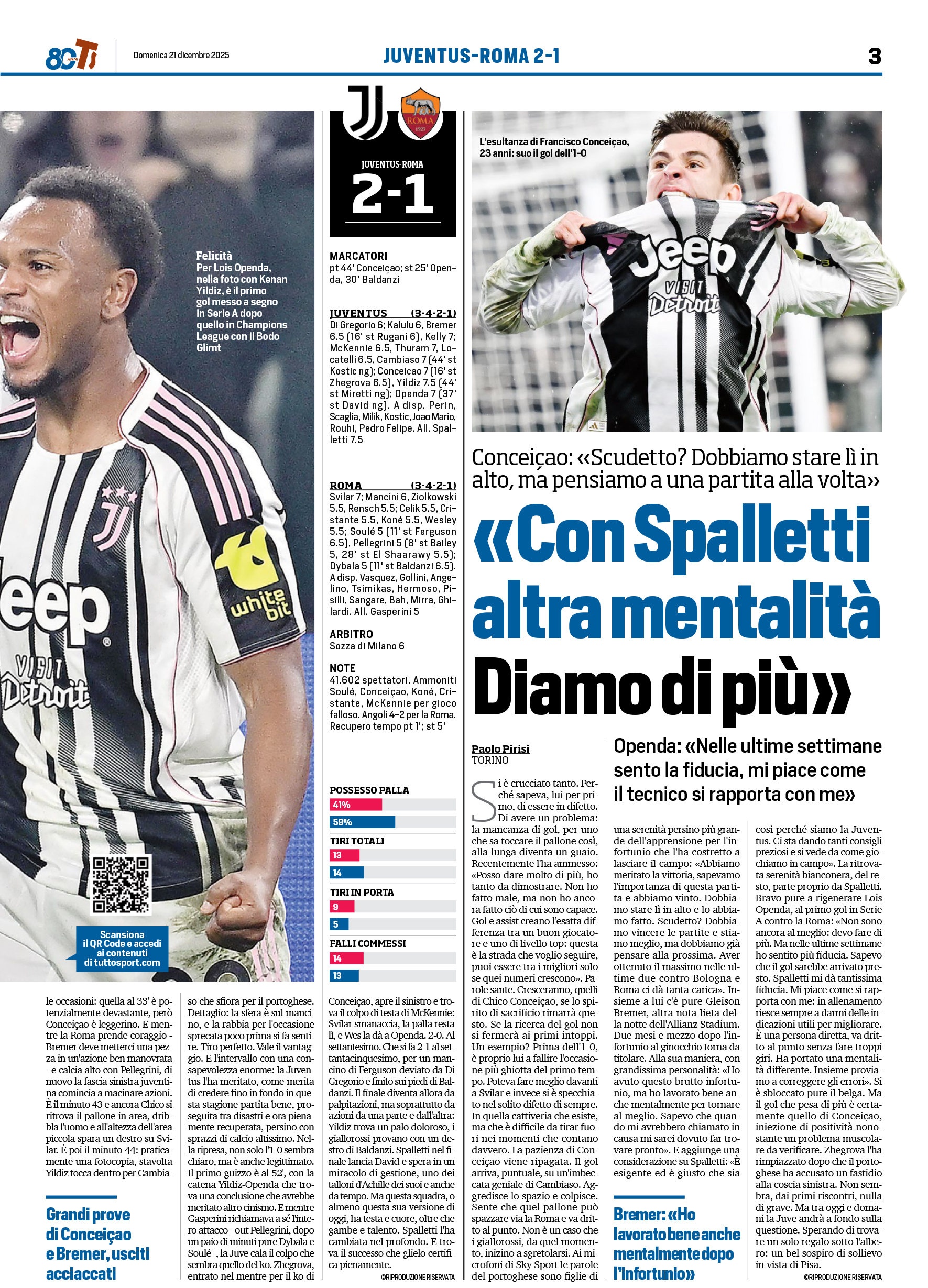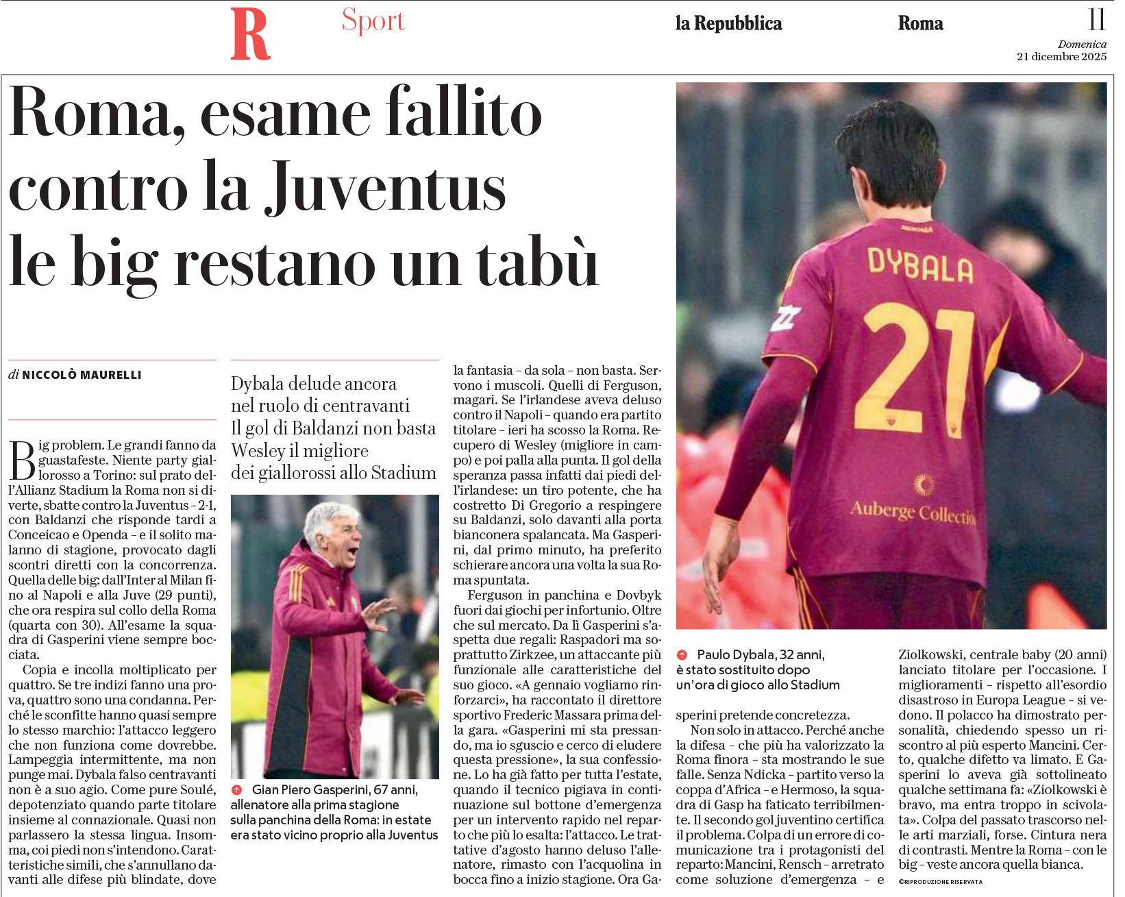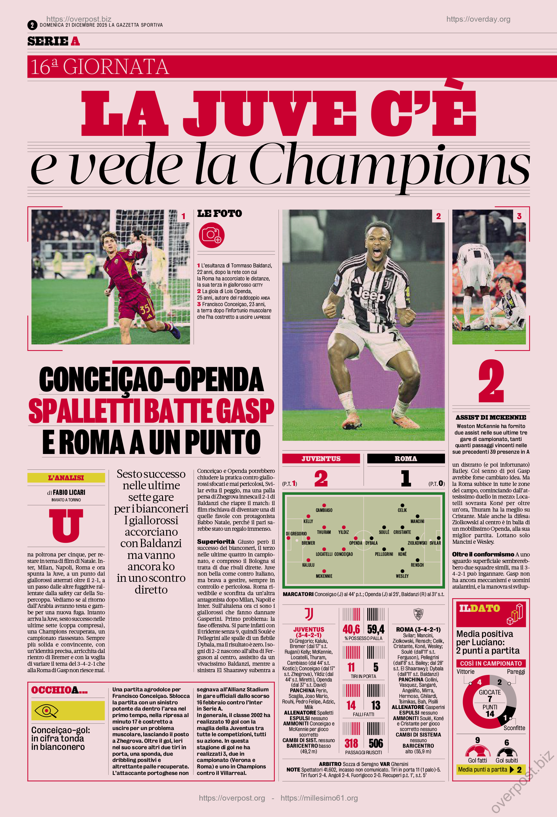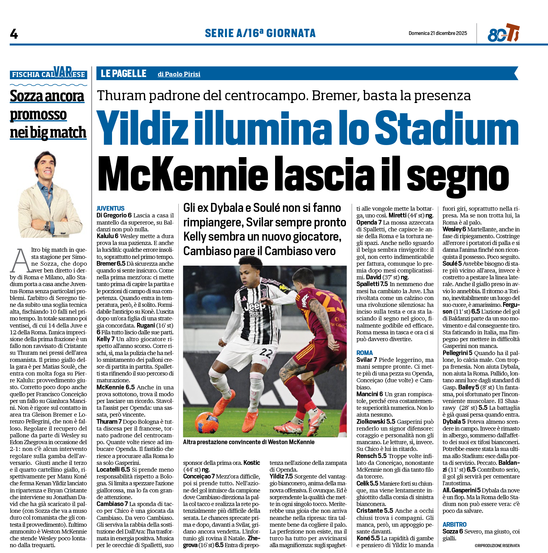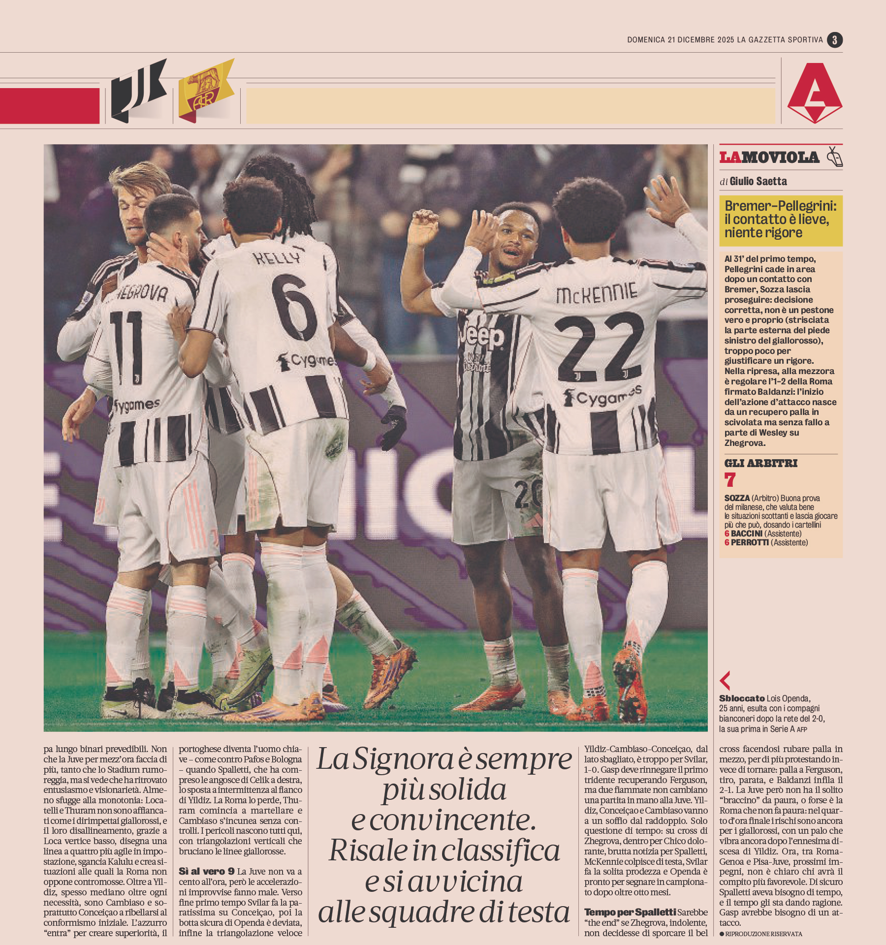 Cristante 6, Kone 5, Wesley 7; Soulé 5 (11’st