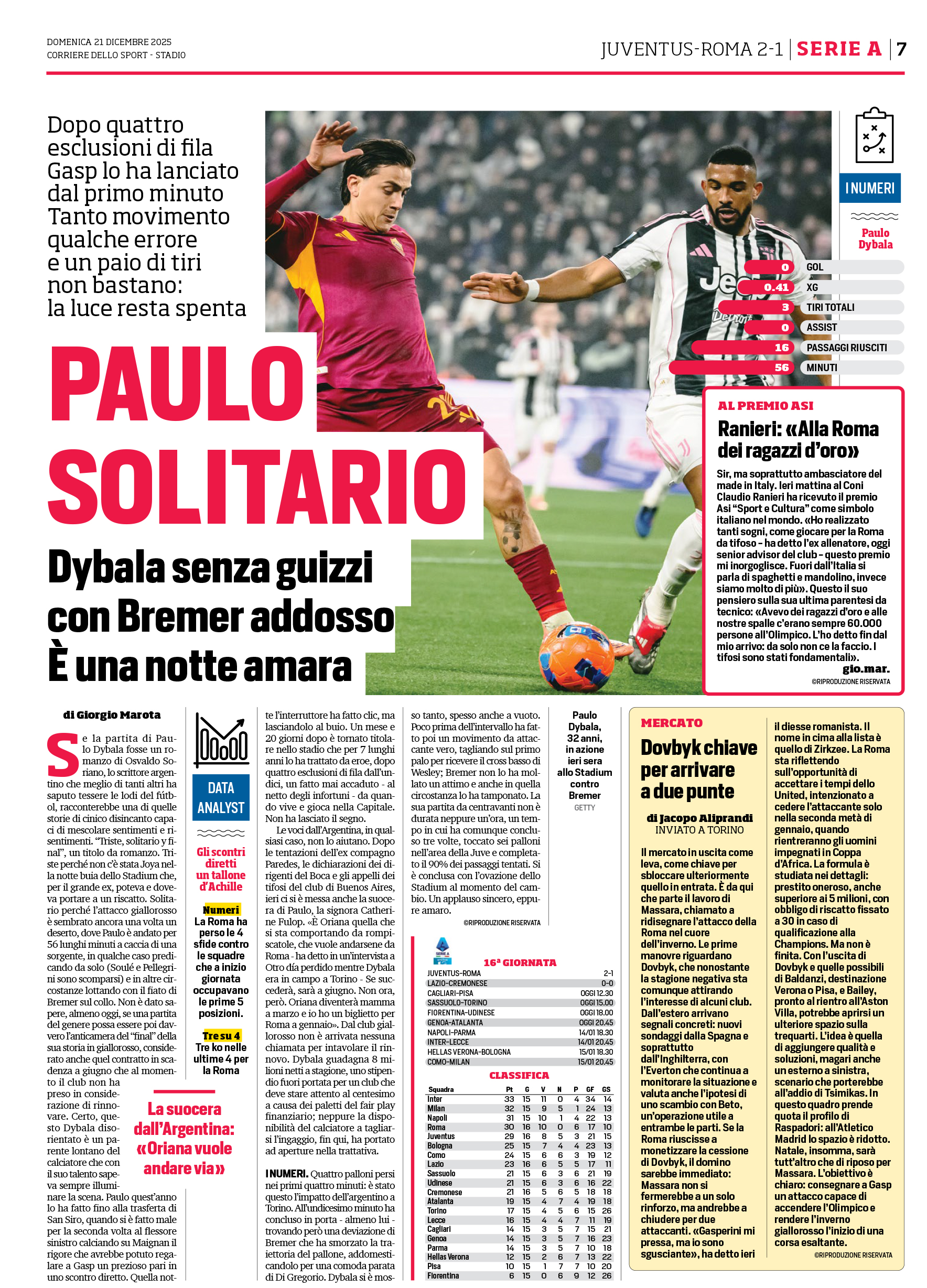 Shaarawy 6); Dybala 5.5 (11’st Ferguson 6.5). In