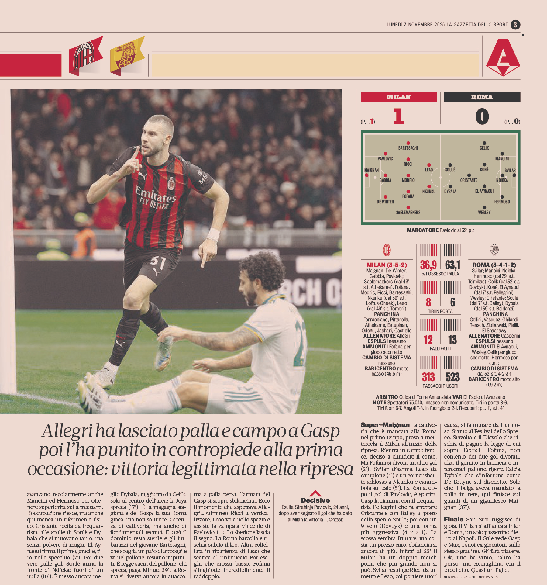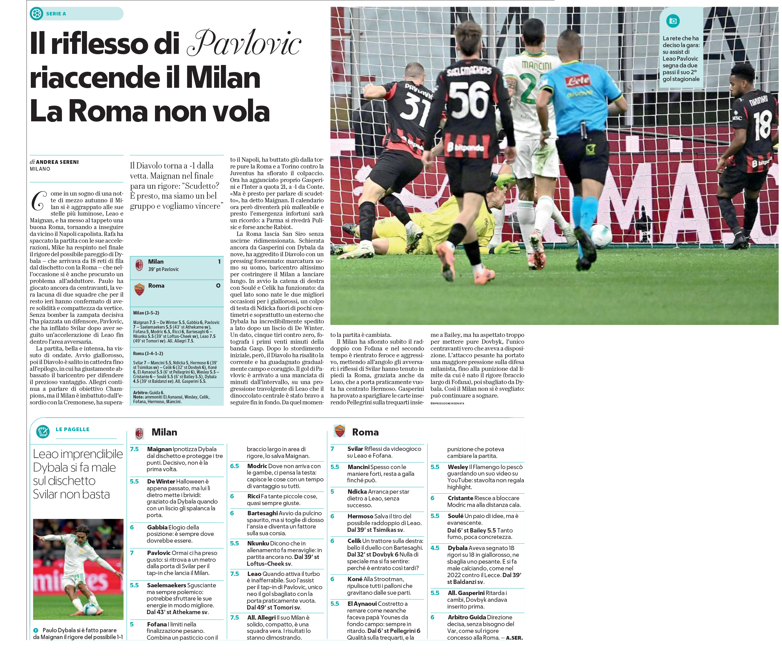 Winter, Gabbia, Pavlovic; Saelemaekers (dal 88’