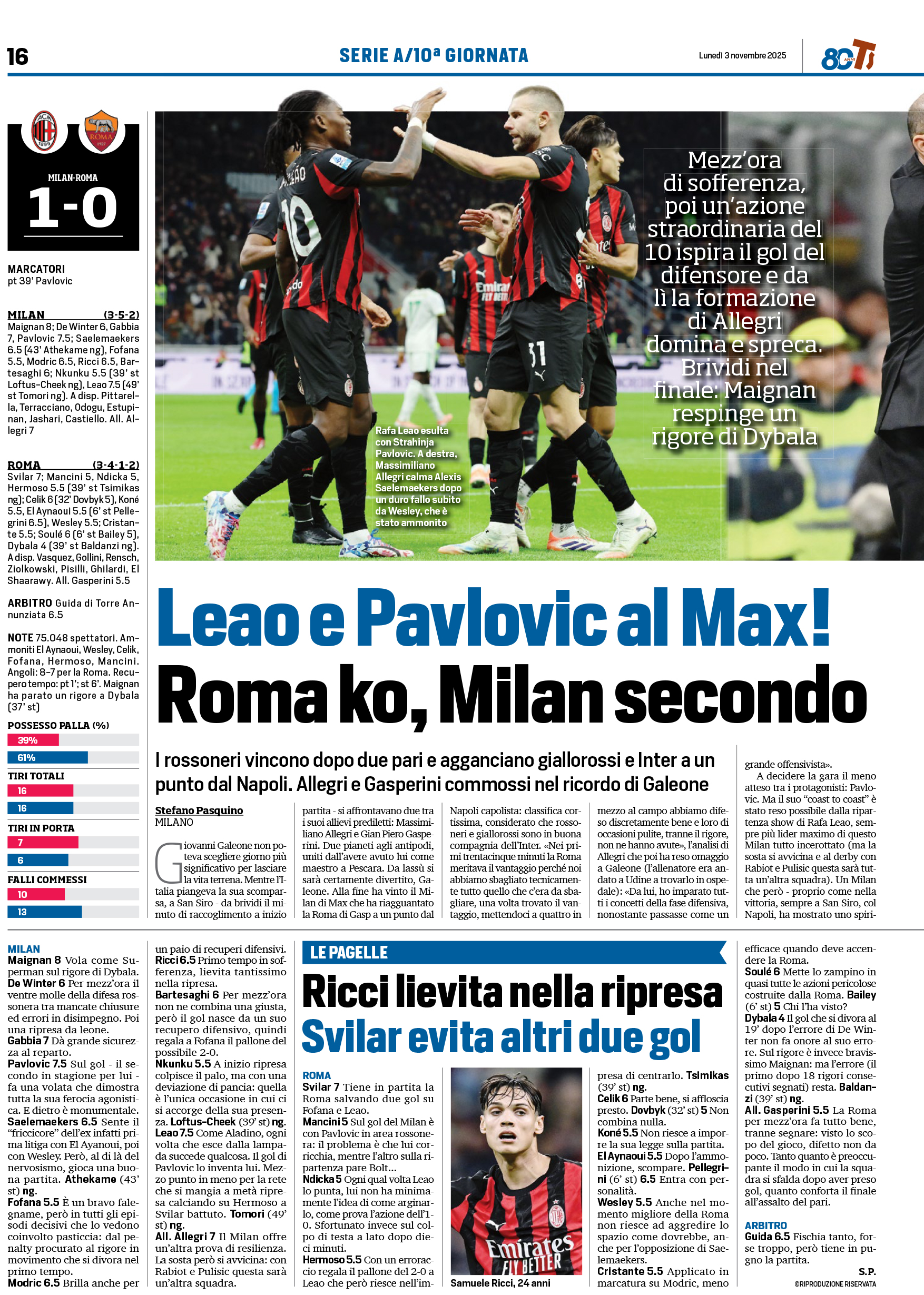 (dal 84’ Loftus-Cheek), Leao (dal 90’+4).
