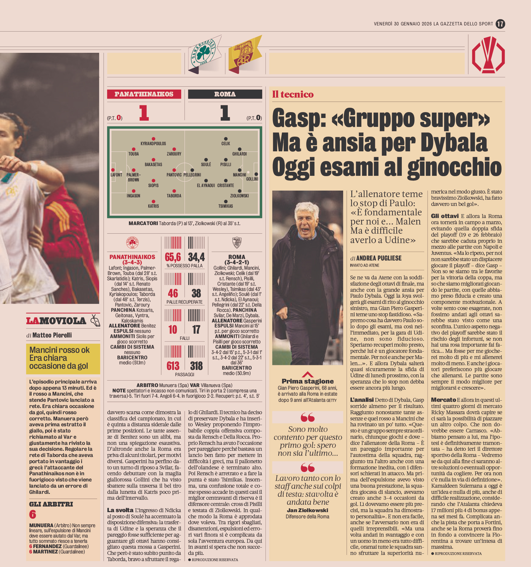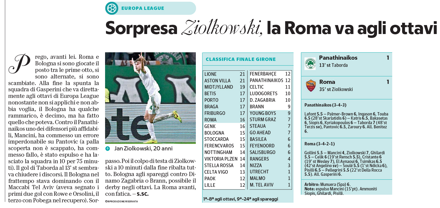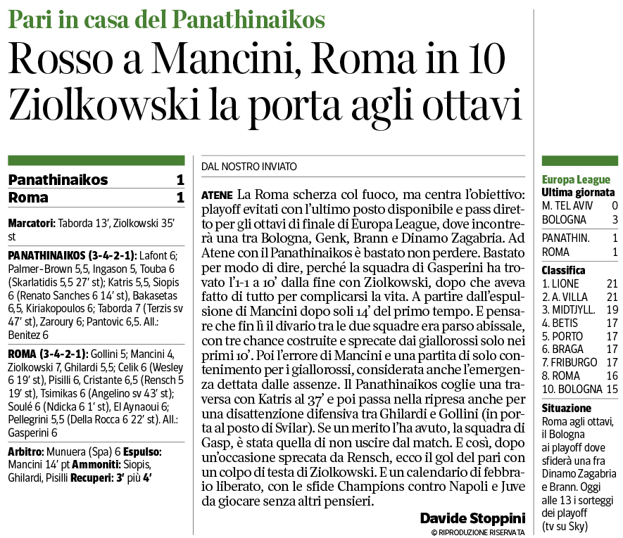 Angelino); 18 Soulé (45′ N’Dicka), 7 Pellegrini
