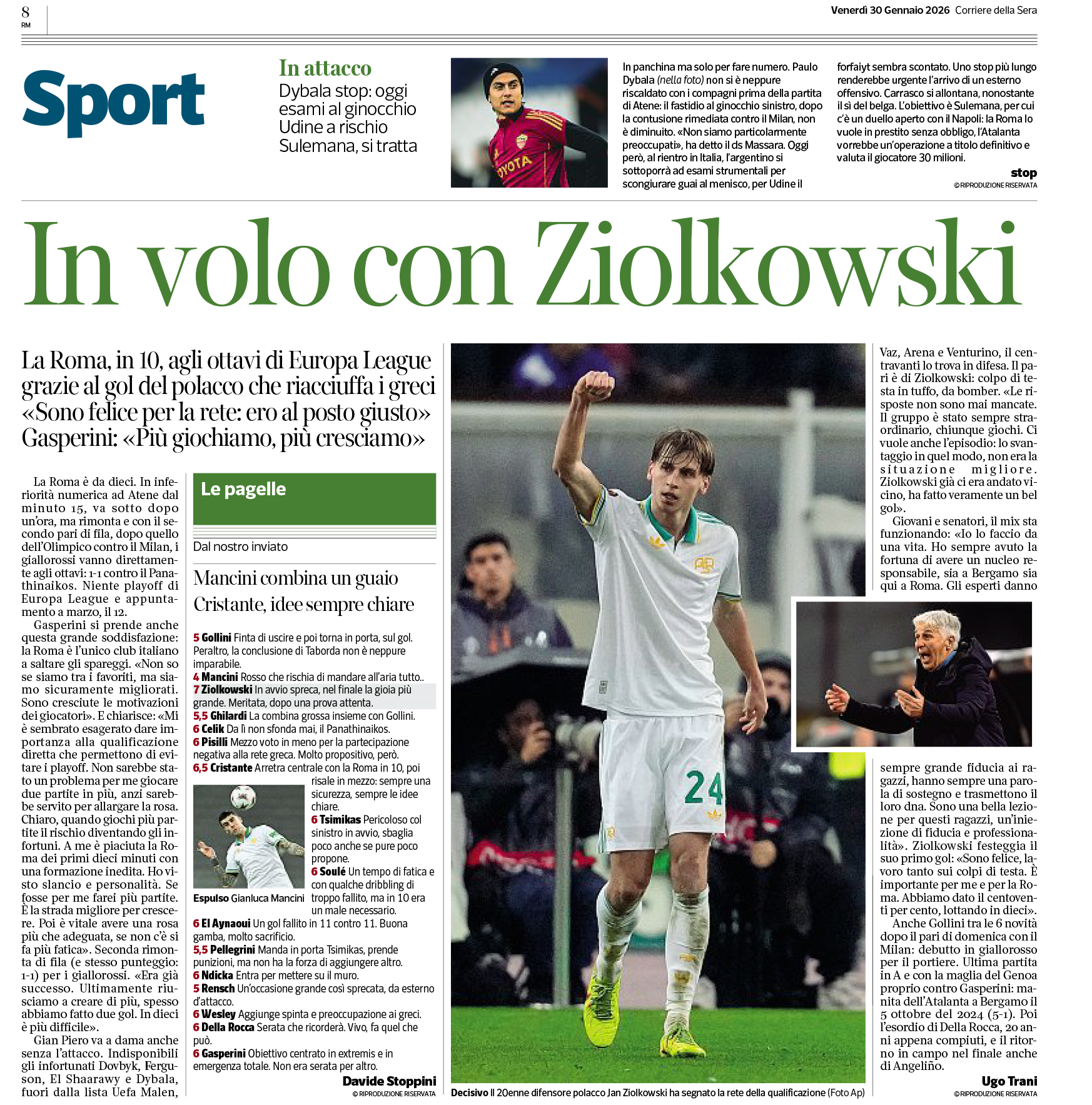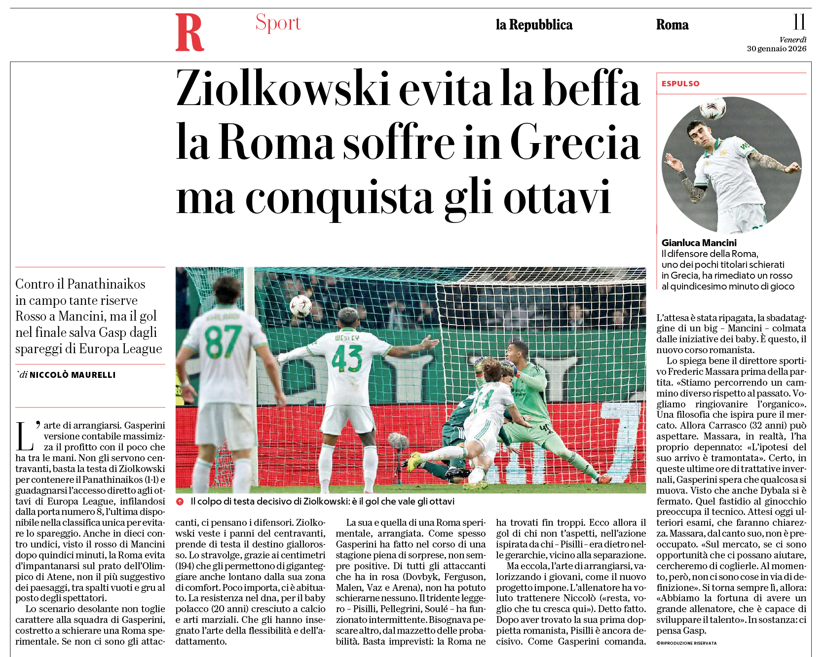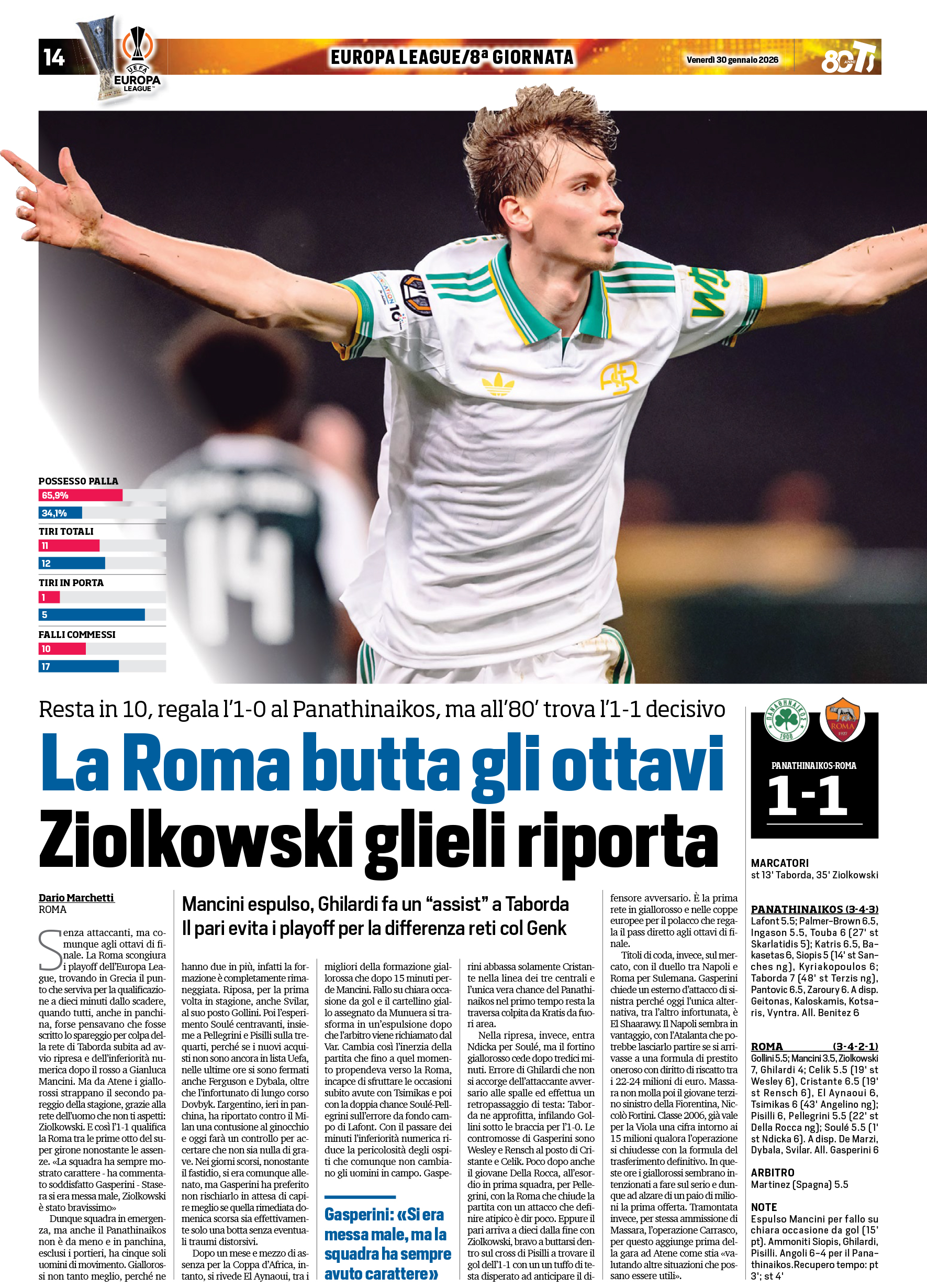 Angelino); 18 Soulé (45′ N’Dicka), 7 Pellegrini