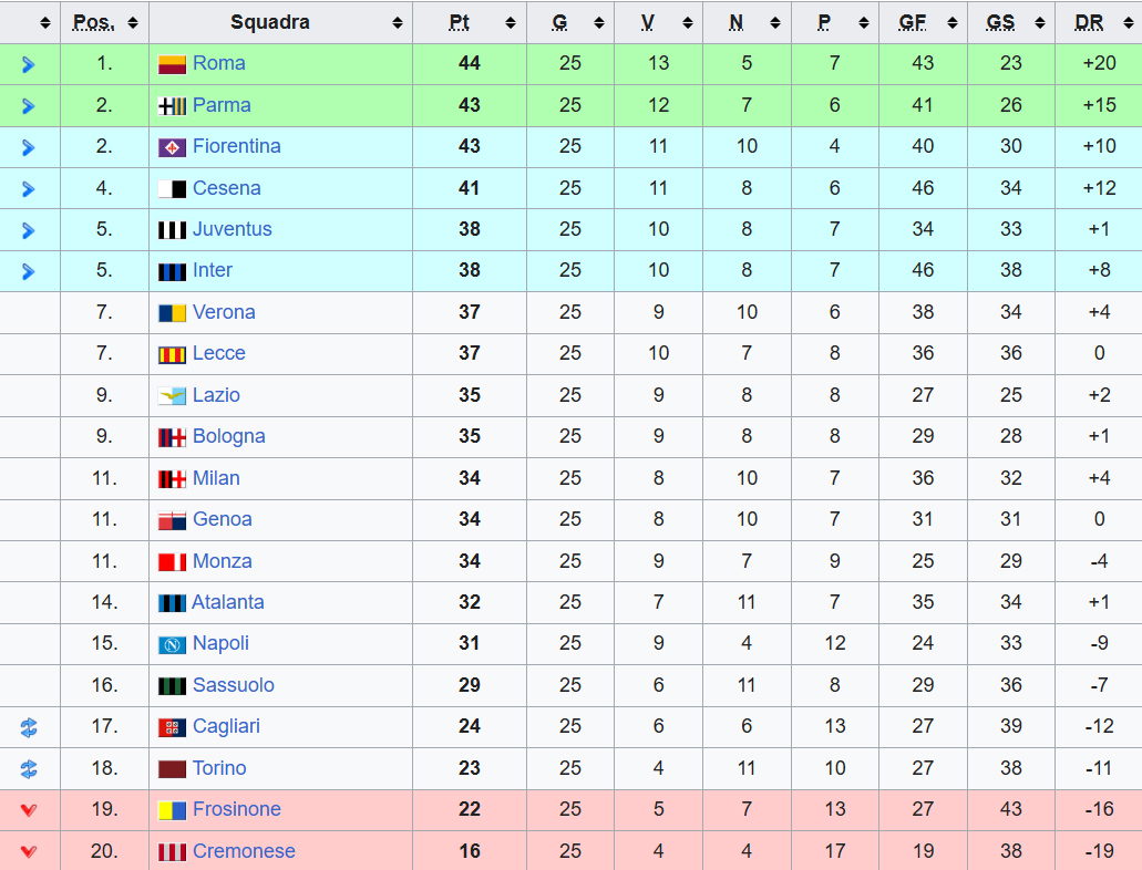 Morucci, 21 Scacchi, 32 Paratici, 34 Bonifazi.