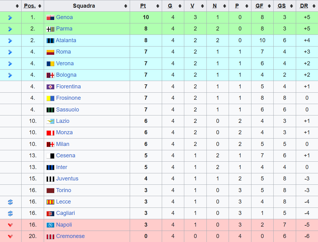 Tabellino partita: