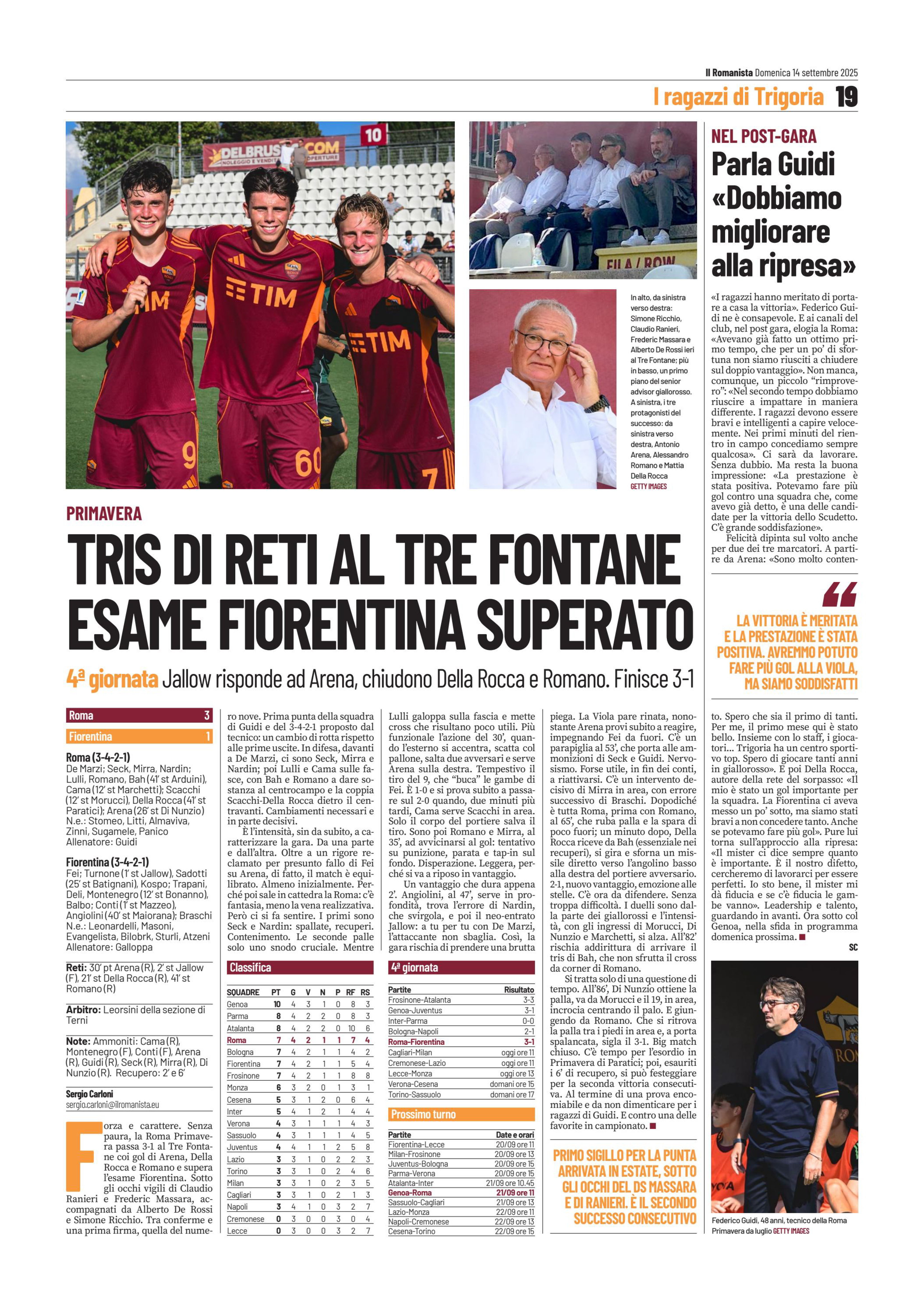 ROMA (3-4-2-1): De Marzi;