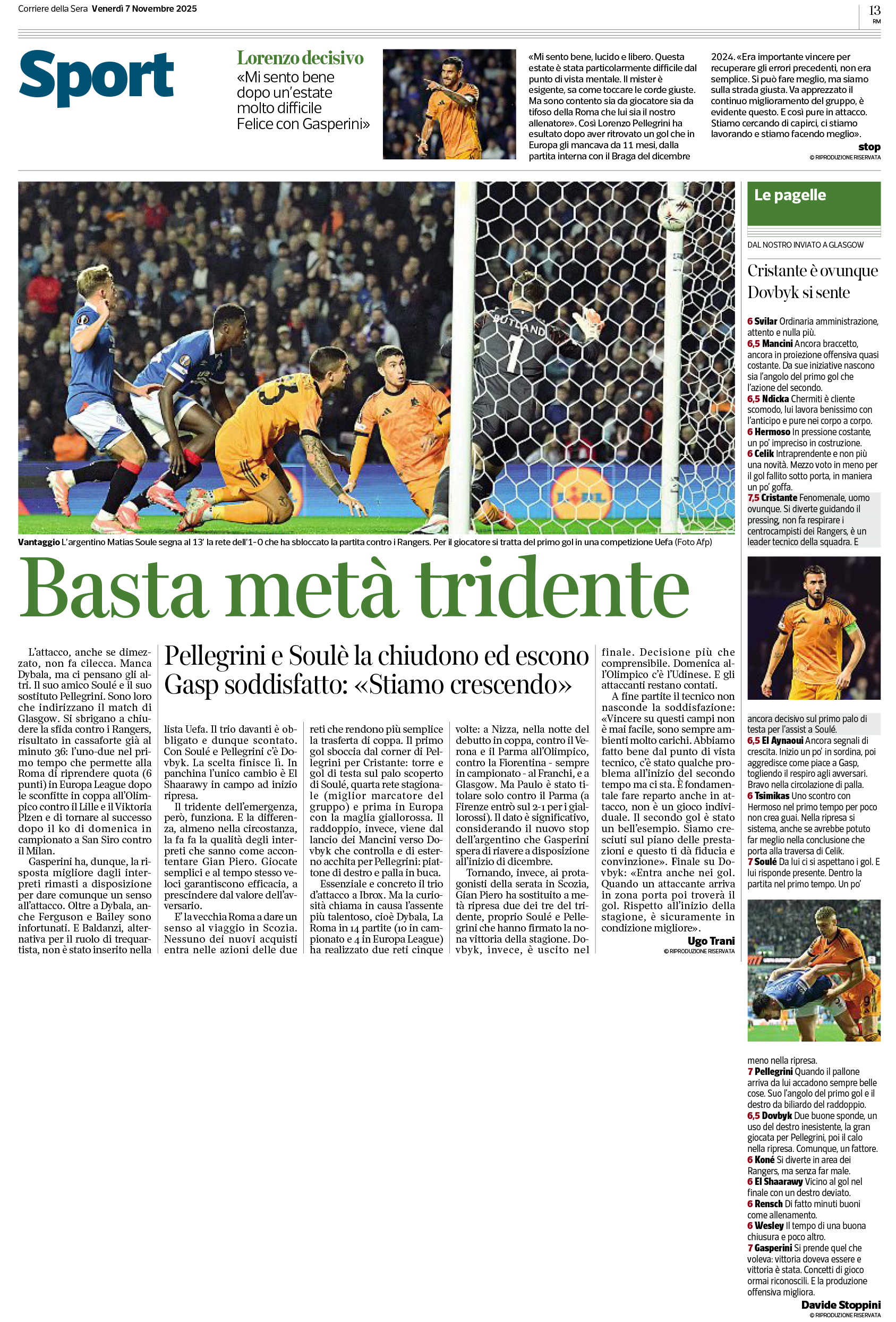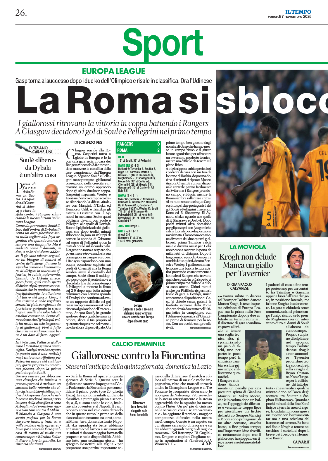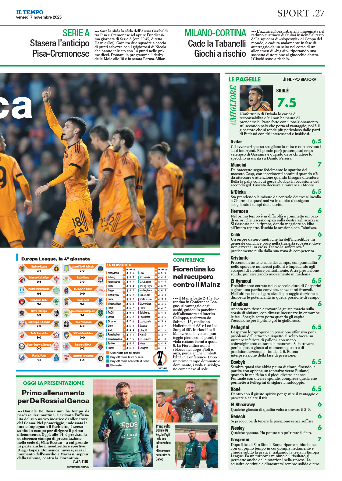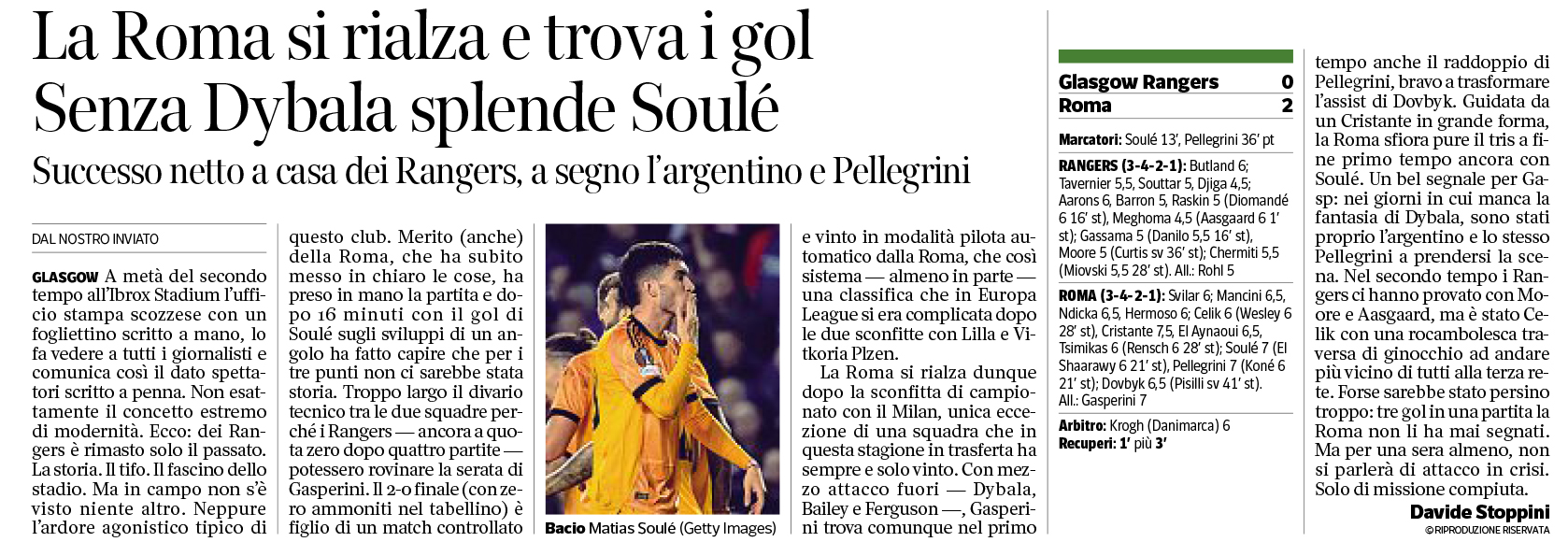 (66' El Shaarawy), Pellegrini (66' Koné); Dovbyk