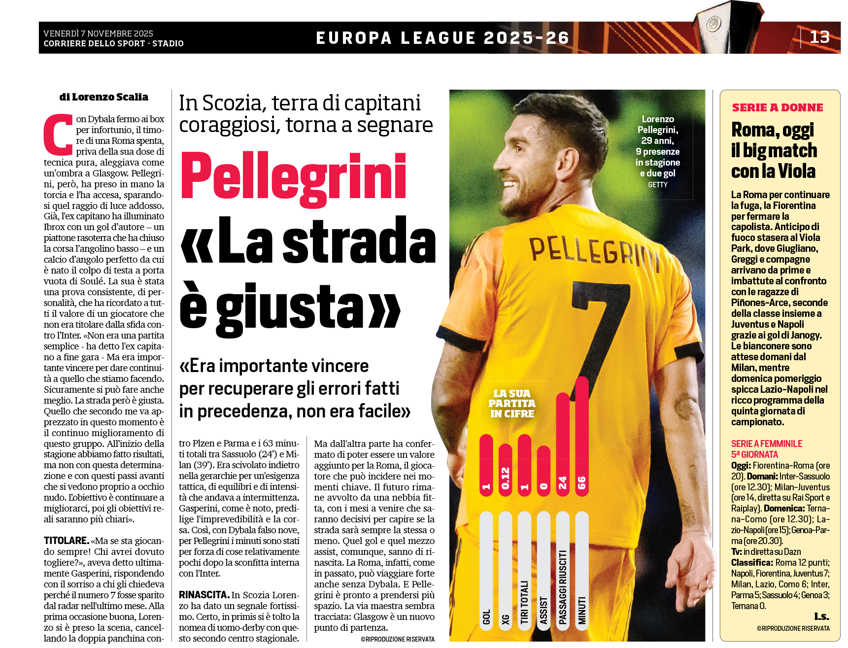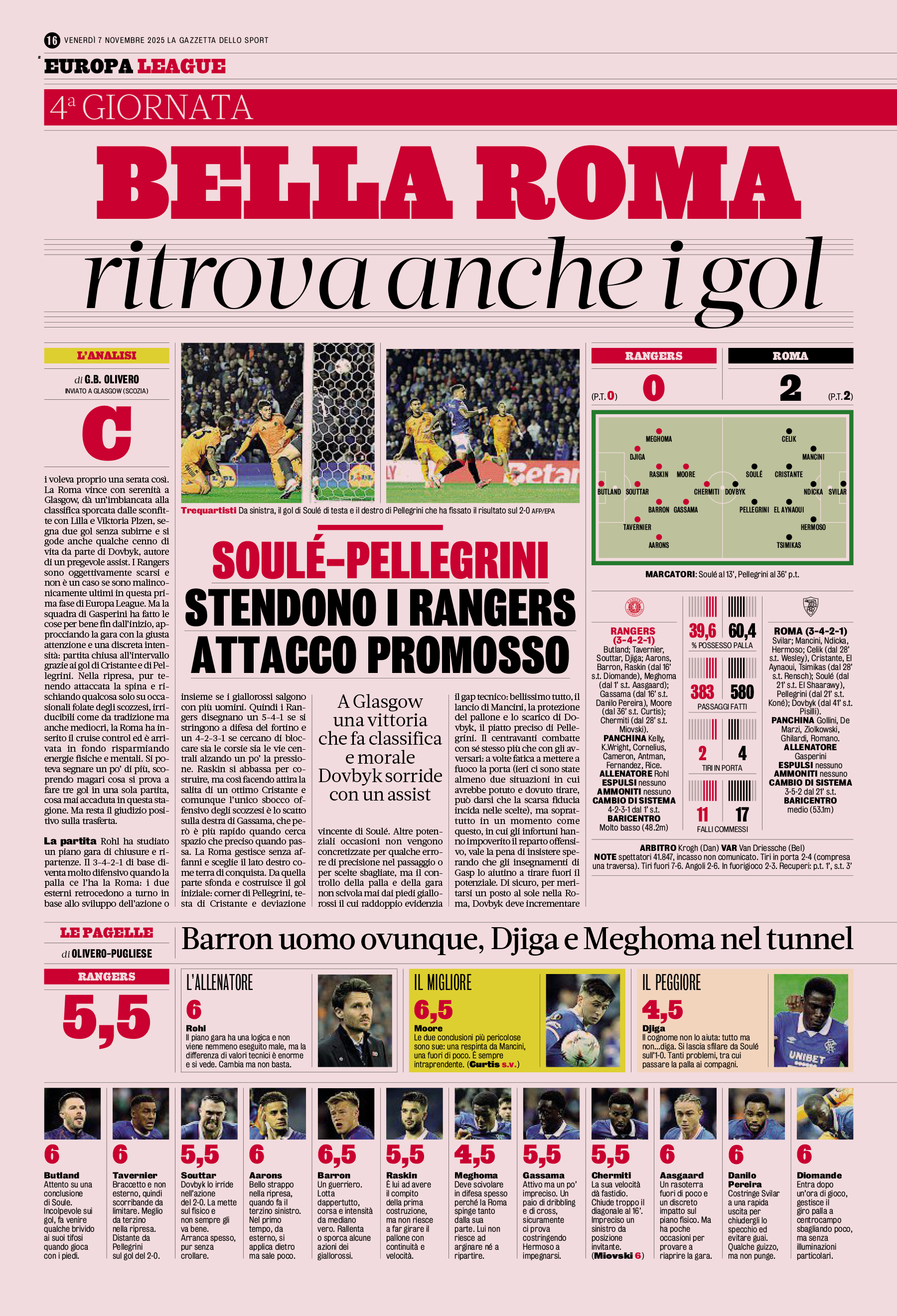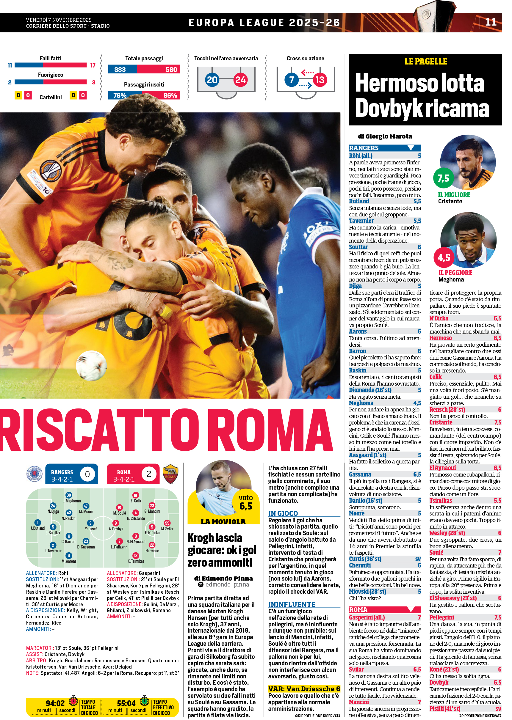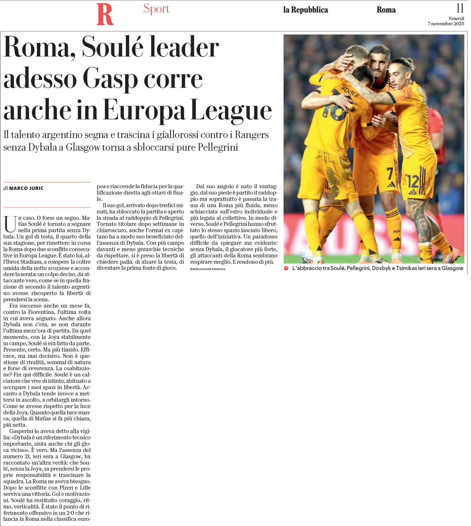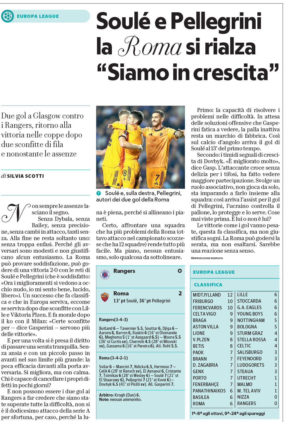 (66' El Shaarawy), Pellegrini (66' Koné); Dovbyk