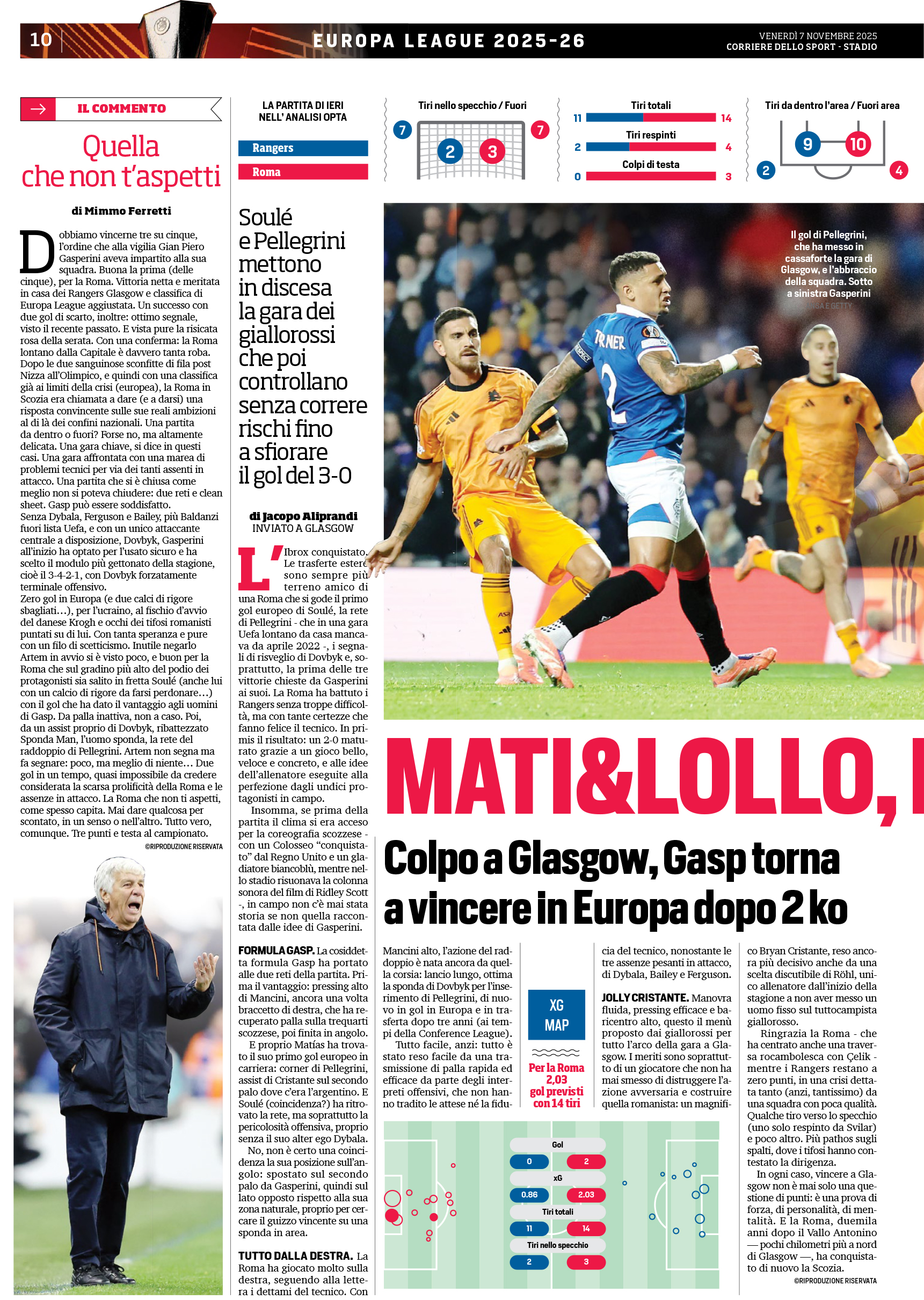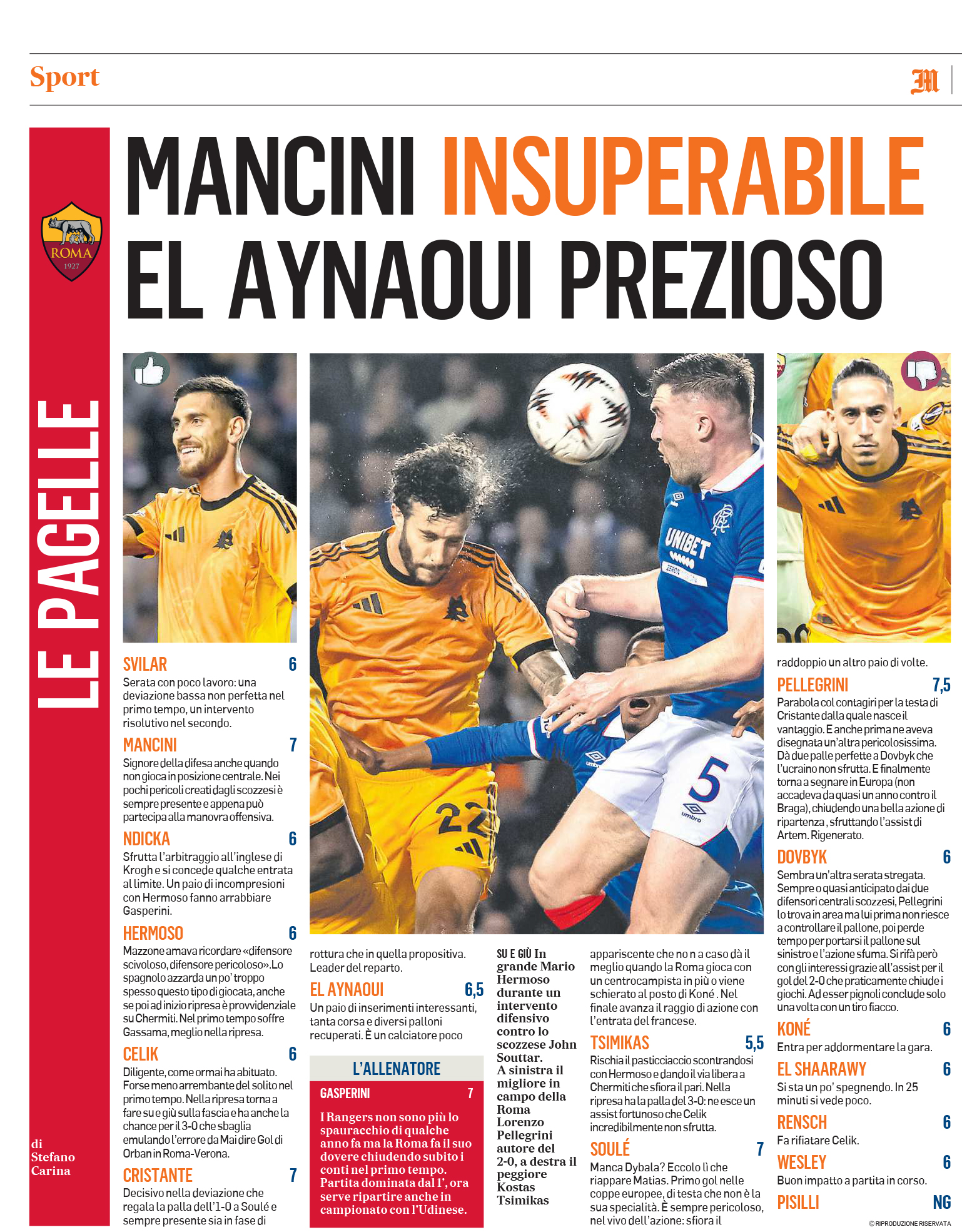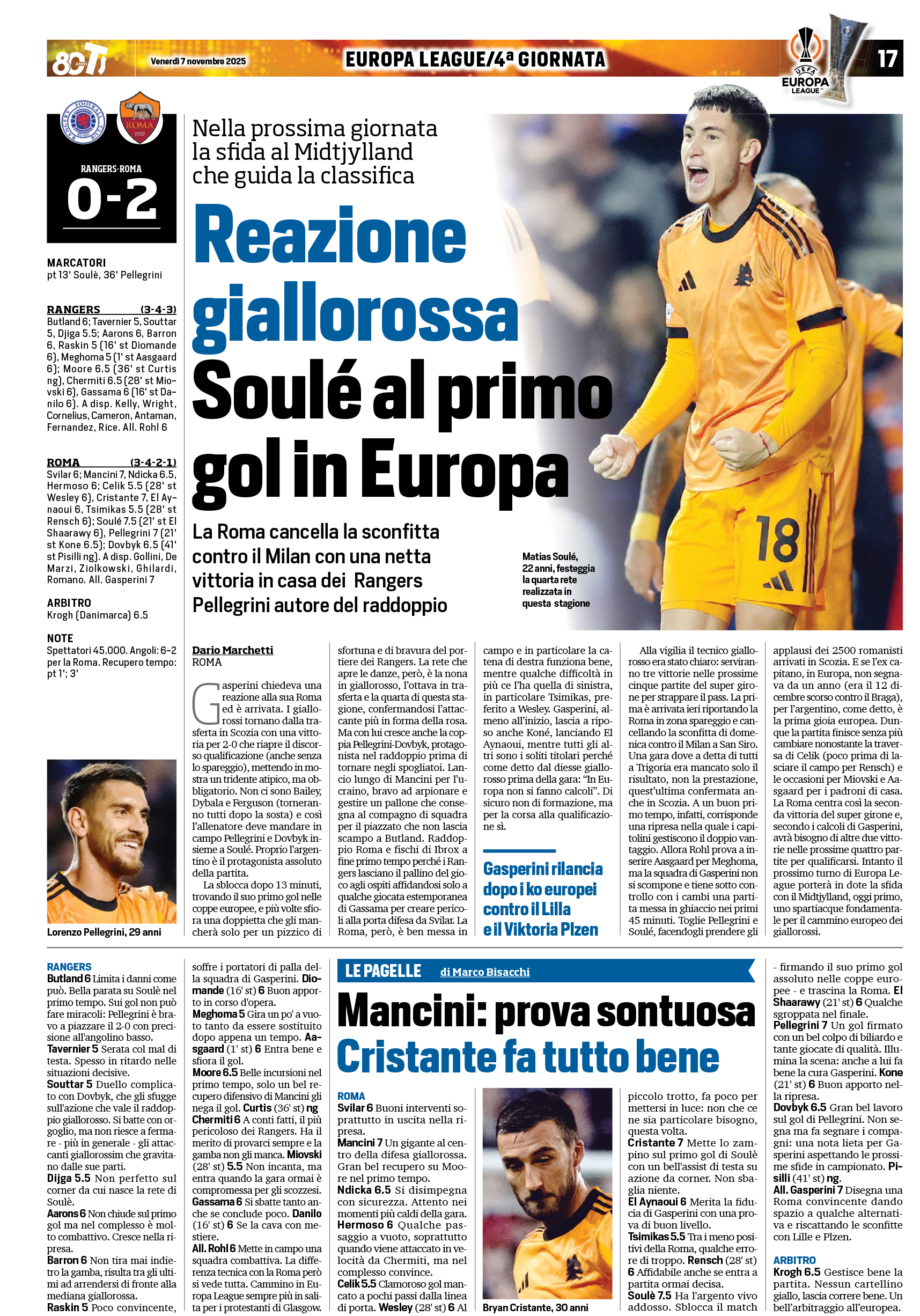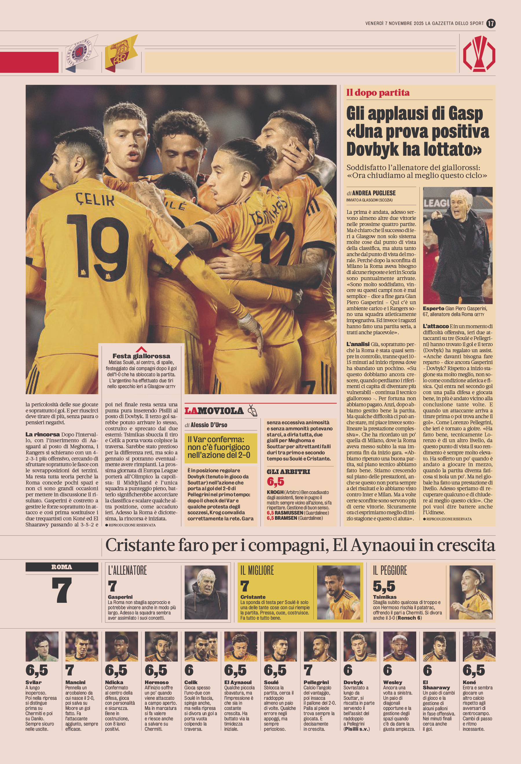 (66' El Shaarawy), Pellegrini (66' Koné); Dovbyk