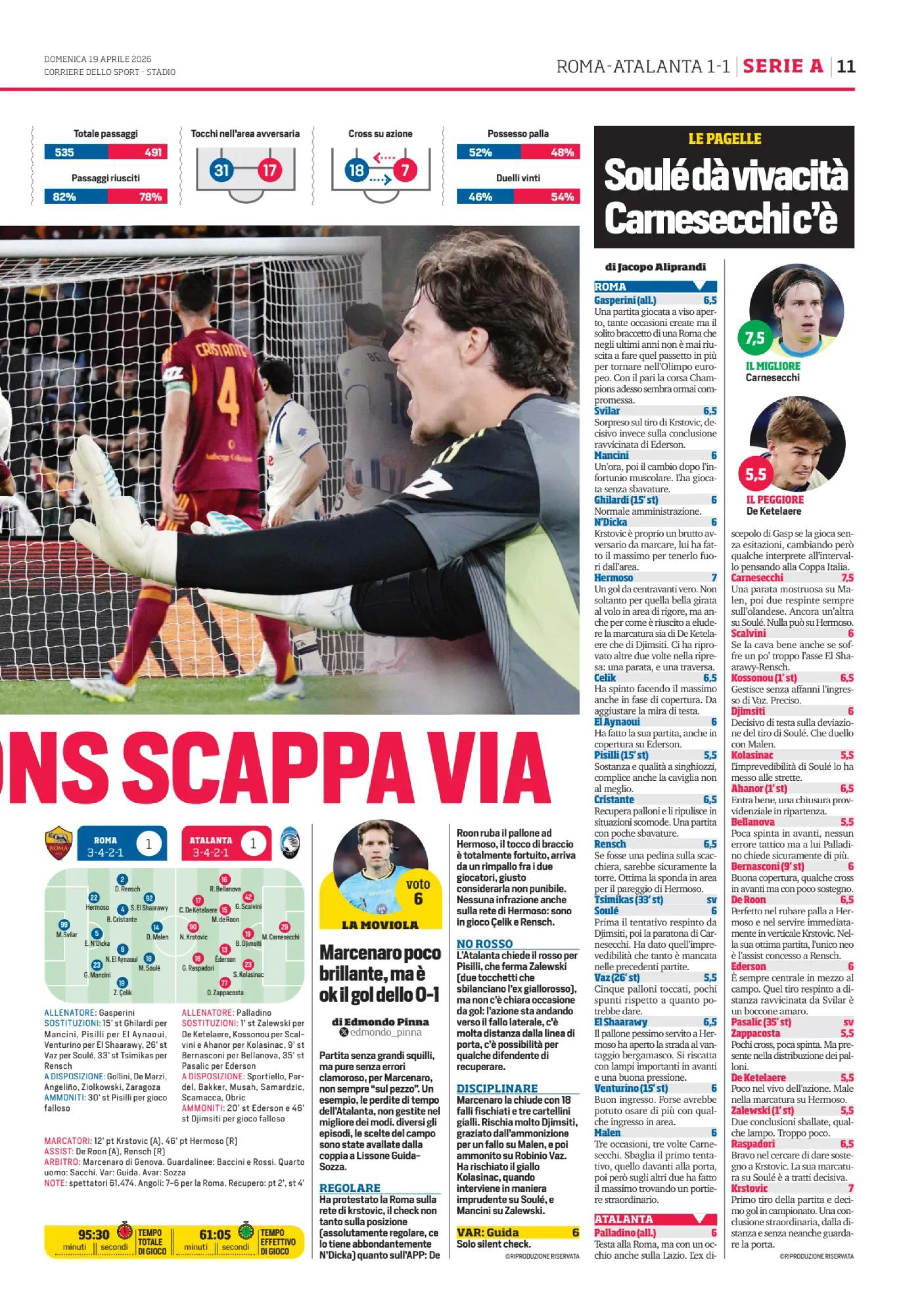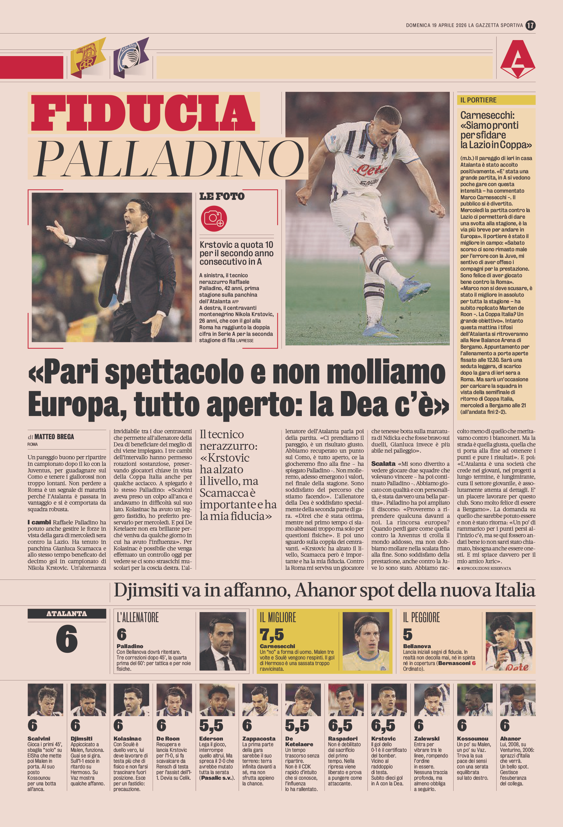 Bellanova (54' Bernasconi), De Roon, Ederson (79'