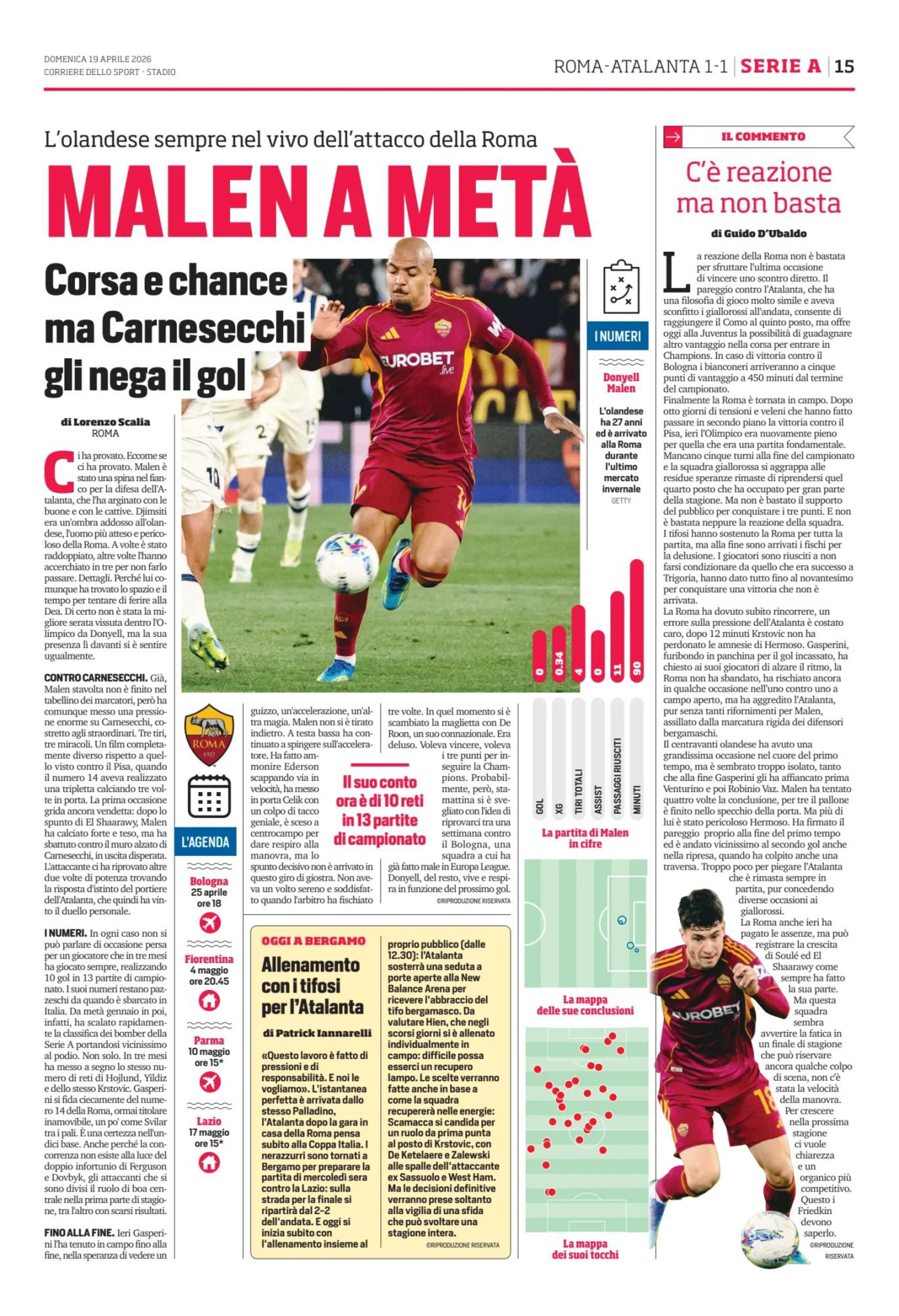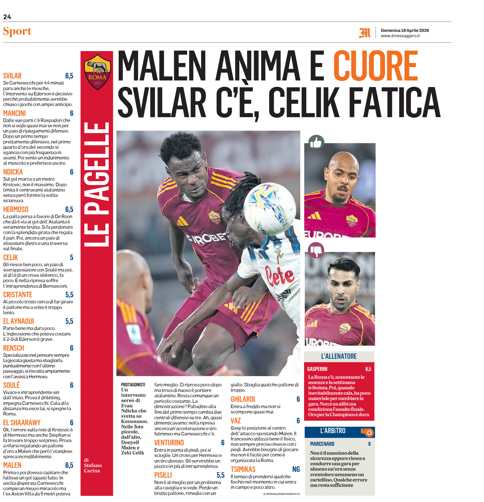 (71' Vaz), El Shaarawy (60' Venturino); Malen. A