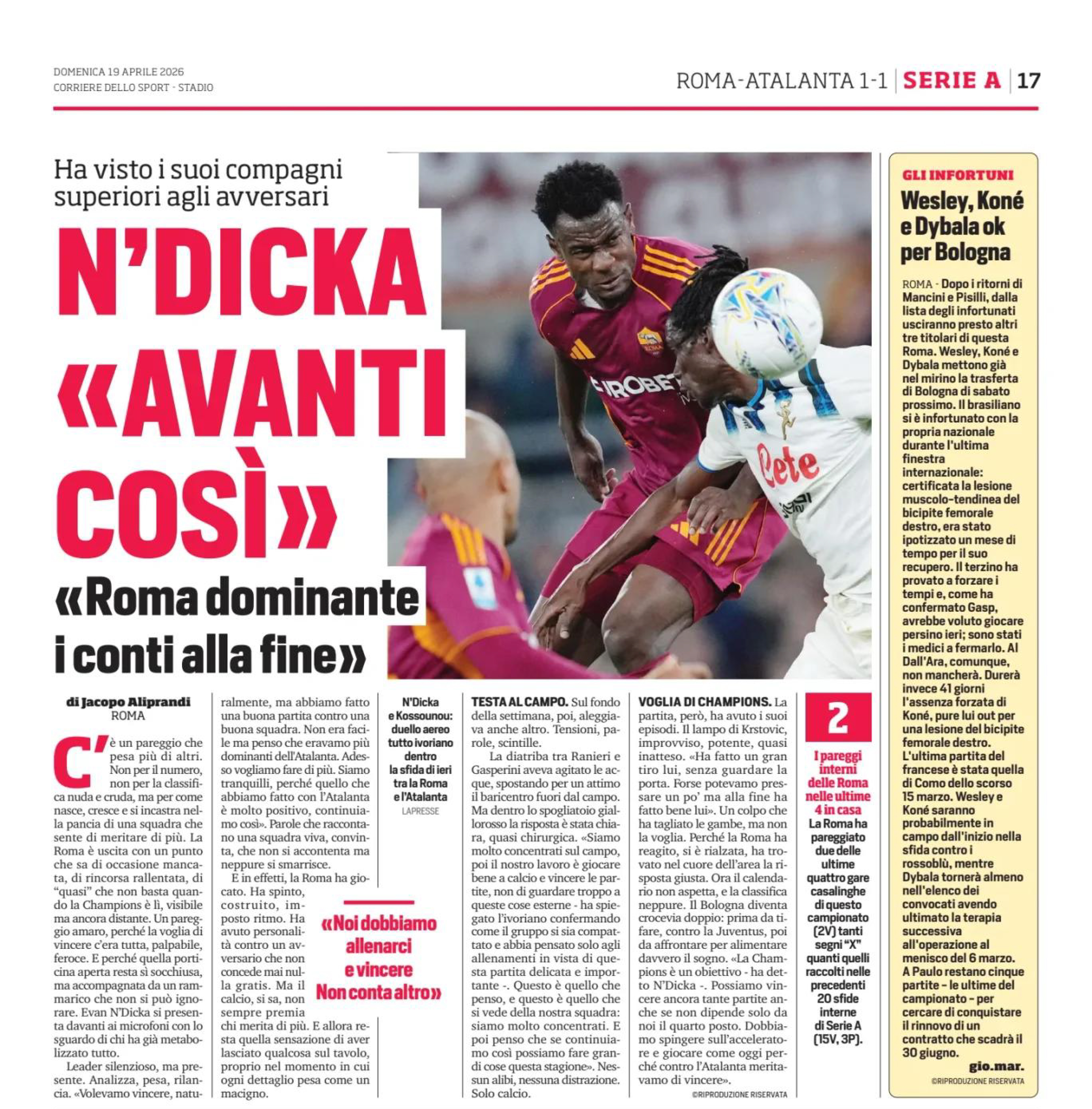 Ghilardi), Ndicka, Hermoso; Celik, Cristante, El