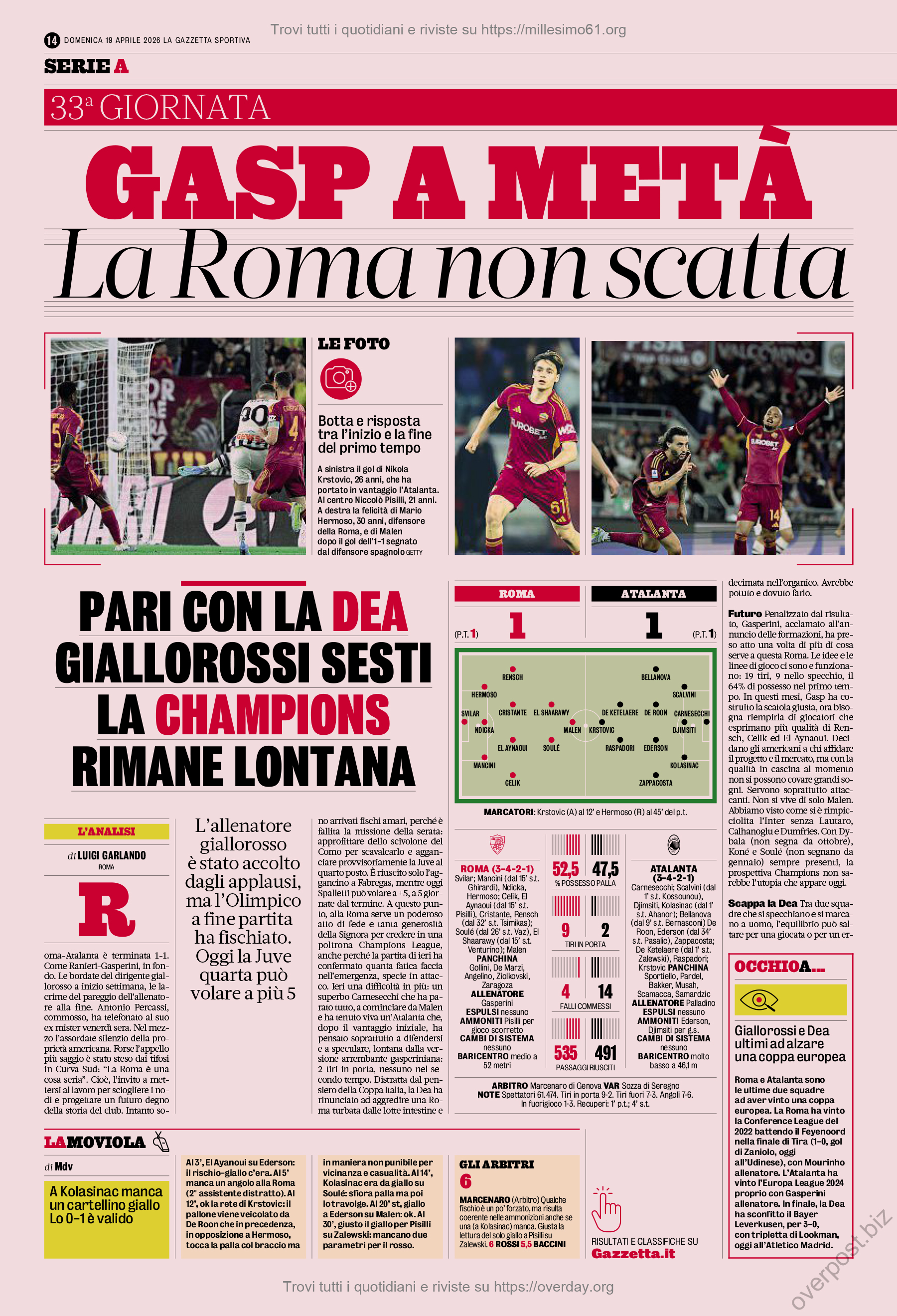 Spettatori: 61.434, cielo sereno, temperatura 18