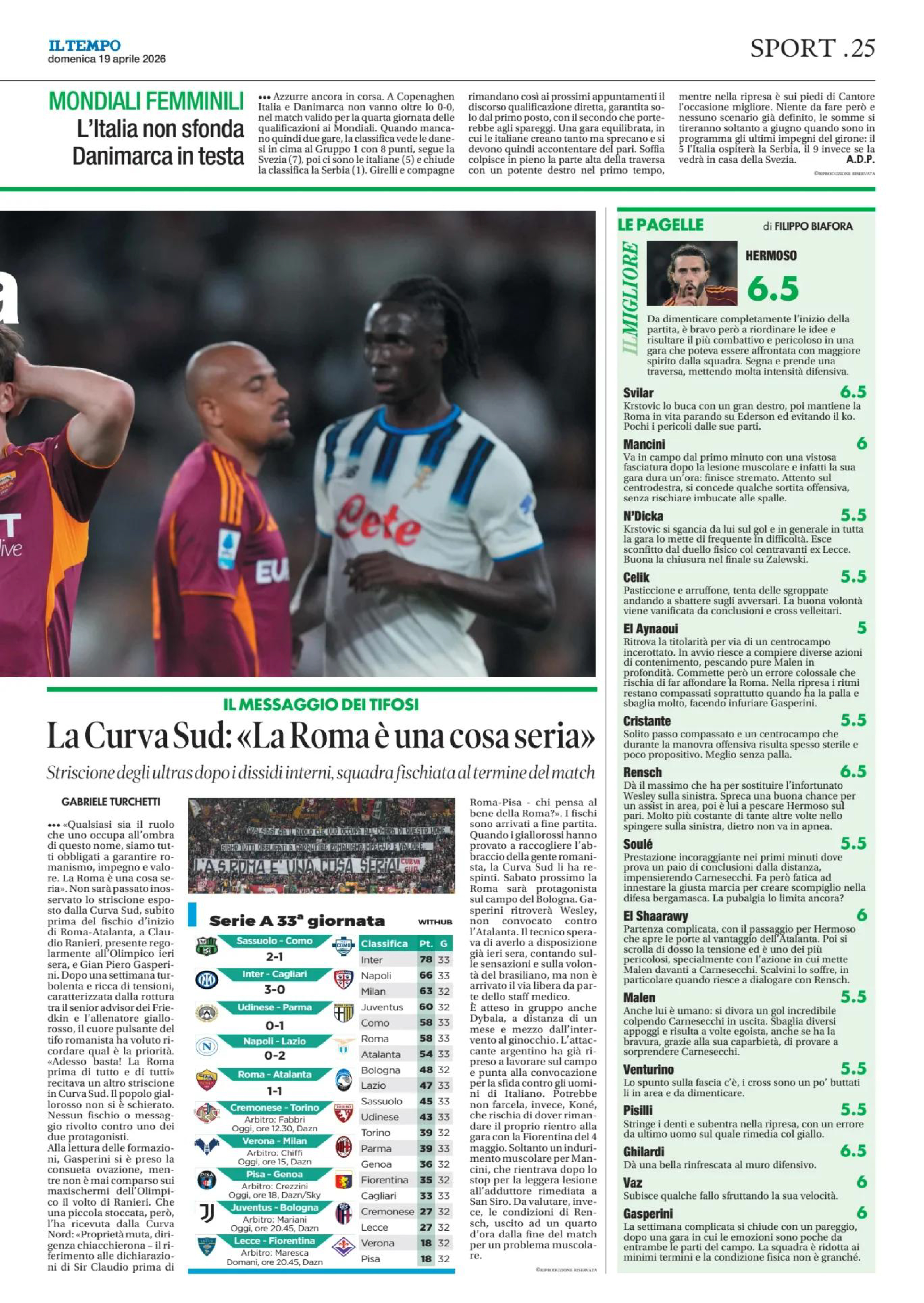 ROMA (3-4-2-1): Svilar; Mancini (60'