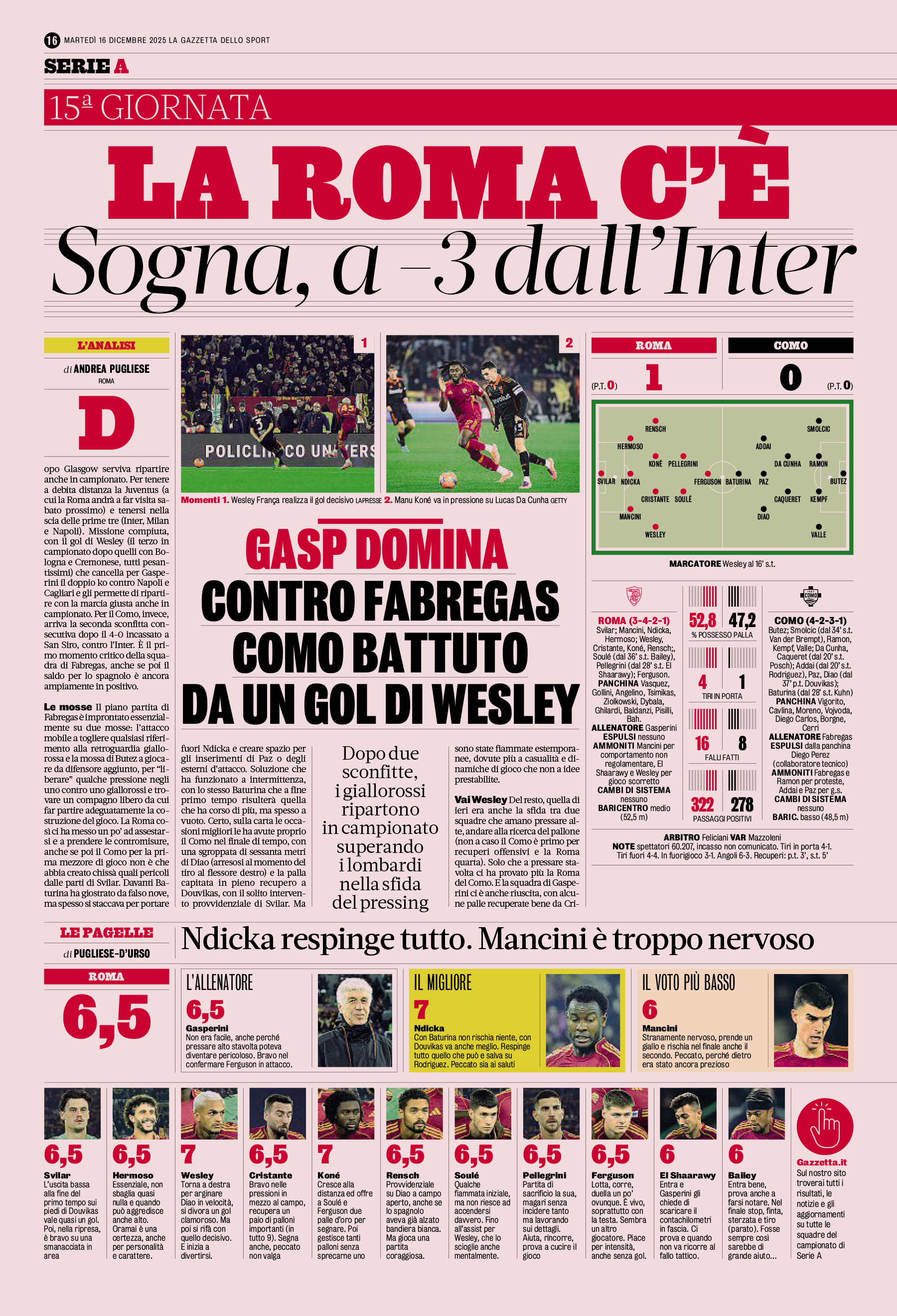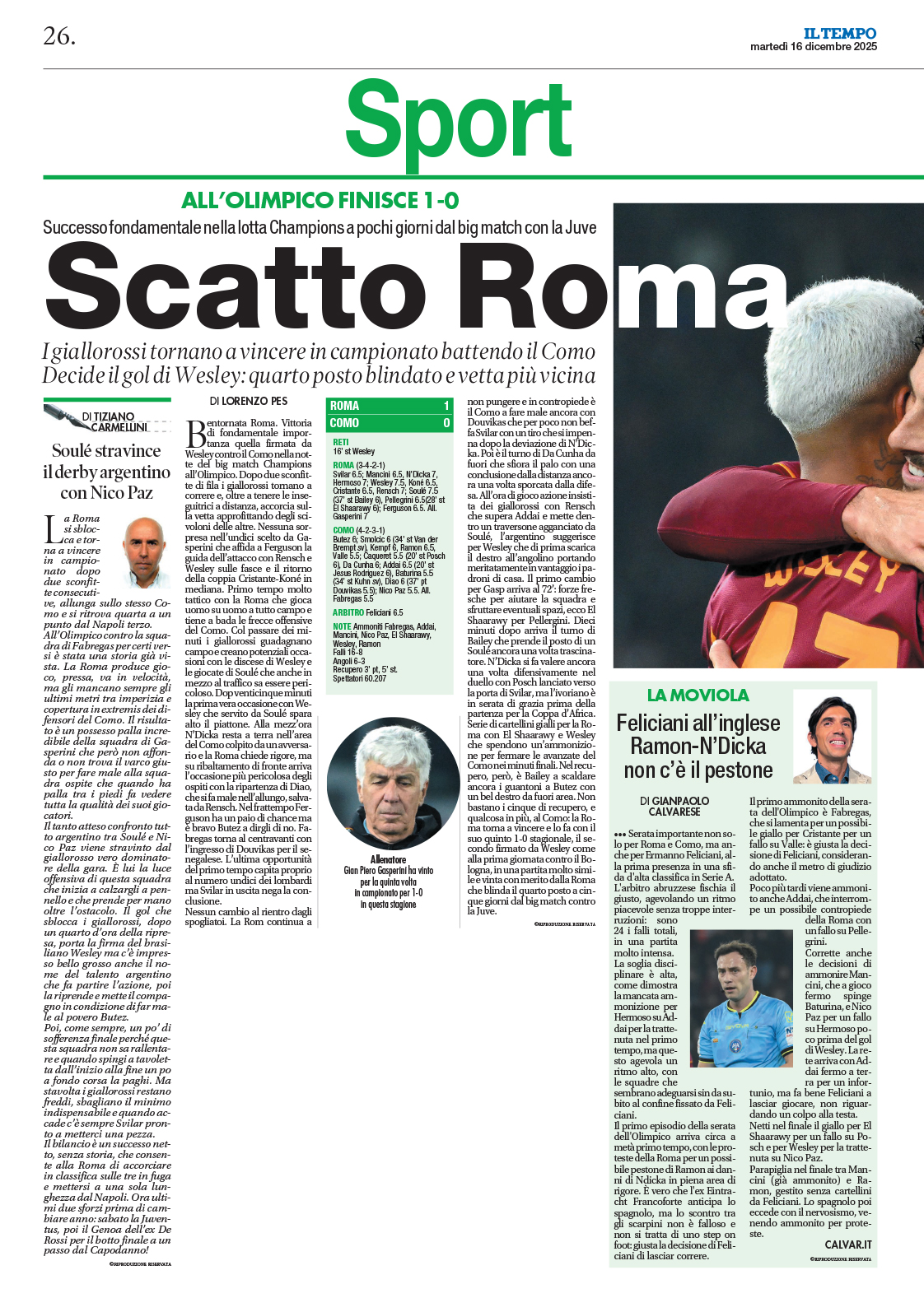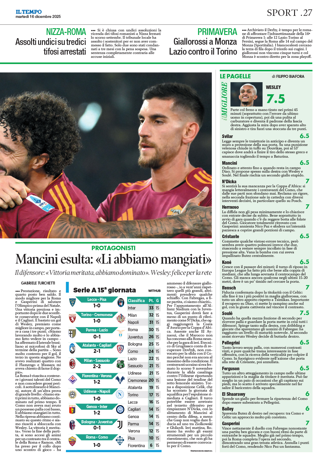 ROMA (3-4-2-1): Svilar 6.5; Mancini 6.5,