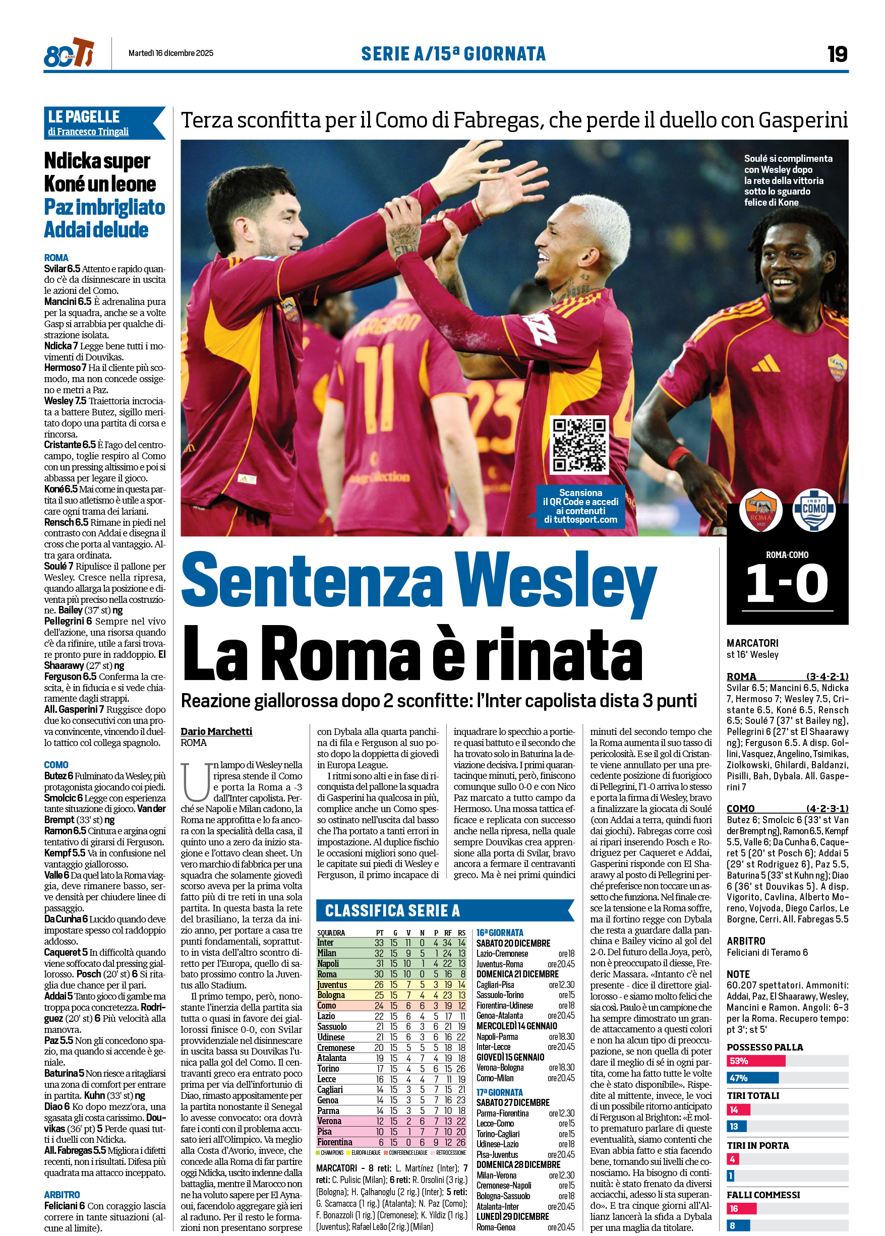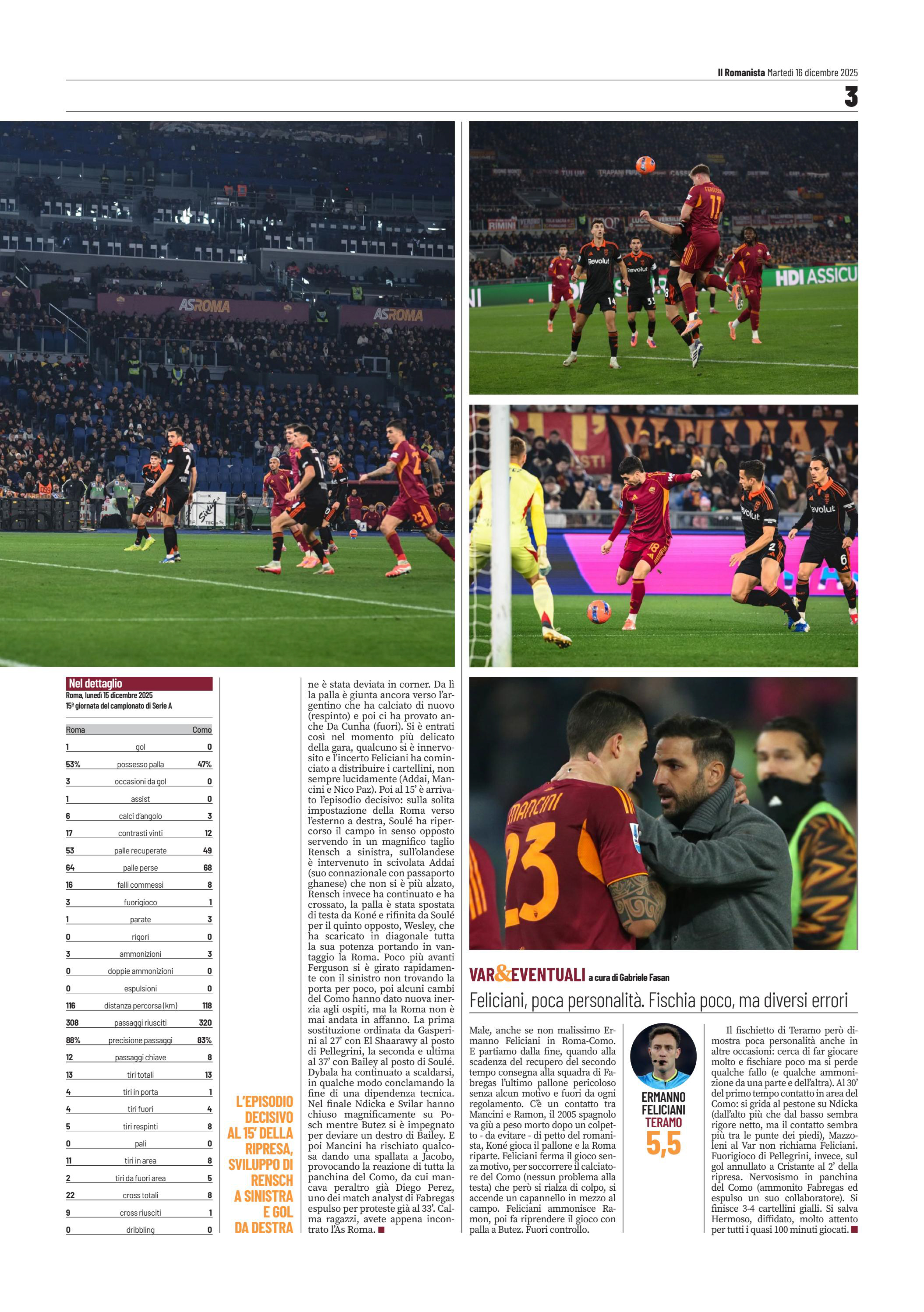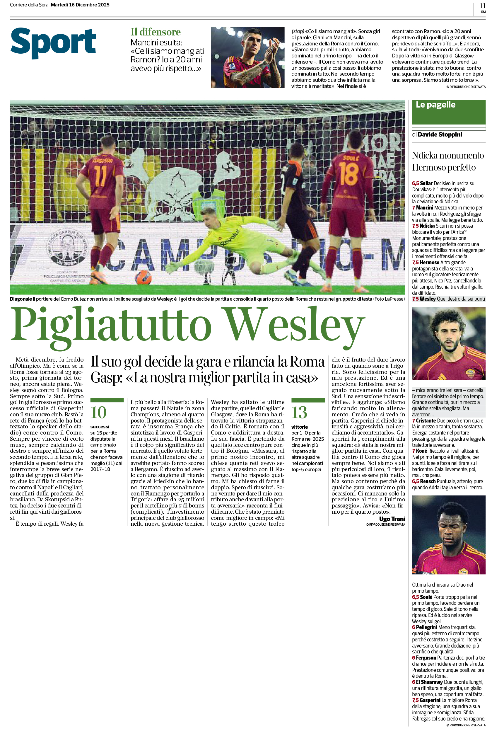 ROMA (3-4-2-1): Svilar 6.5; Mancini 6.5,