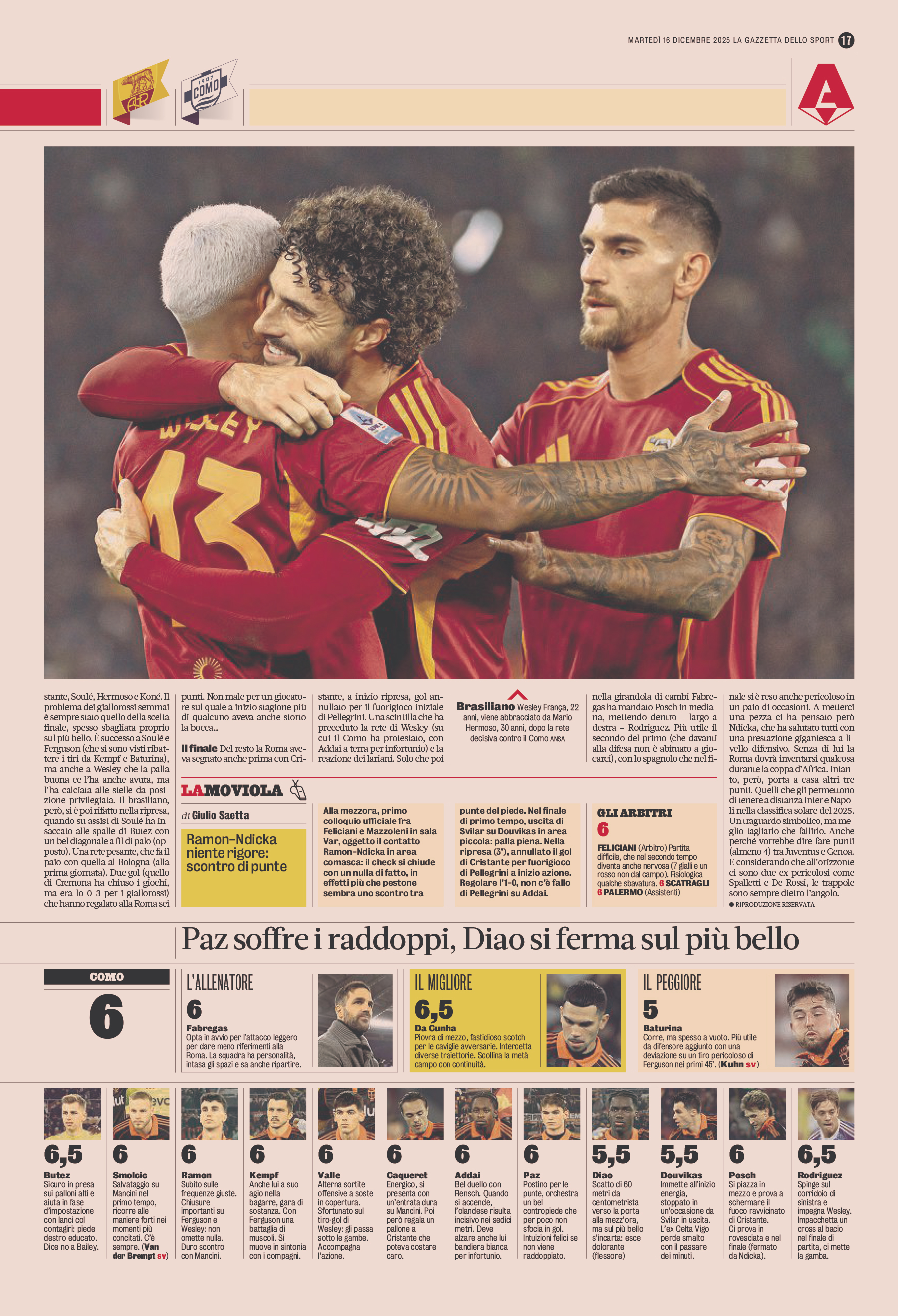 Ndicka 7, Hermoso 6.5; Rensch 6.5, Cristante 7, Kone
