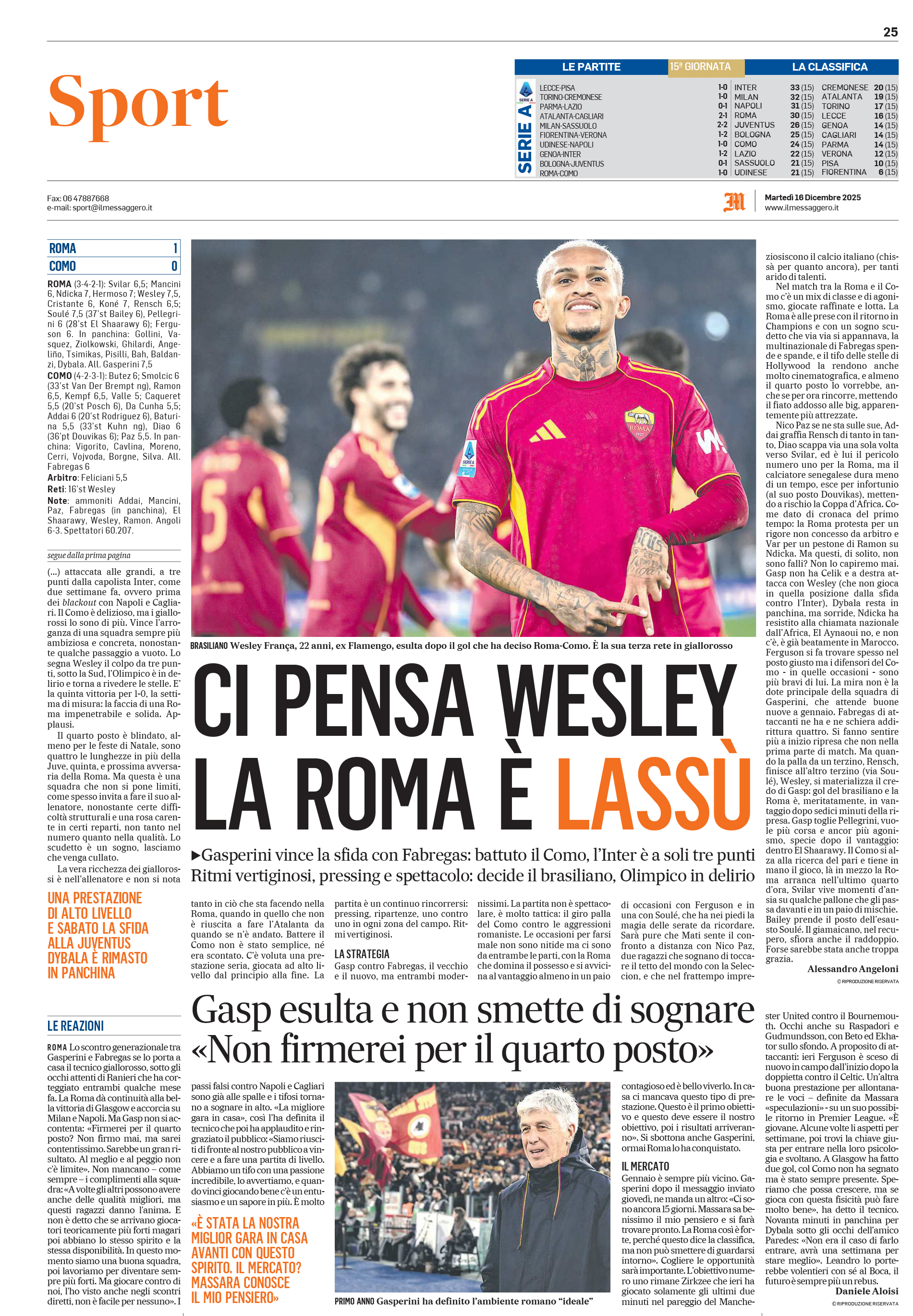 Ghilardi, Pisilli, Bah, Dybala, Baldanzi. Allenatore: