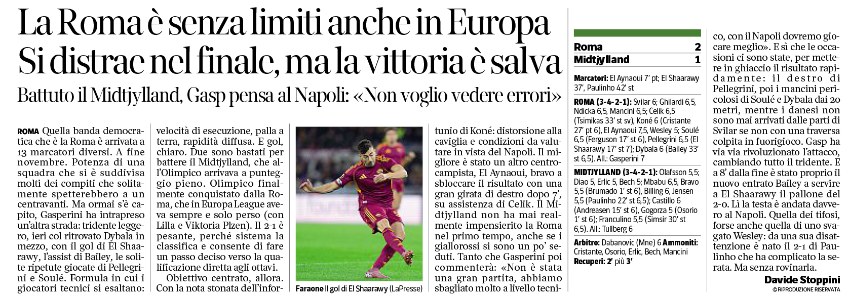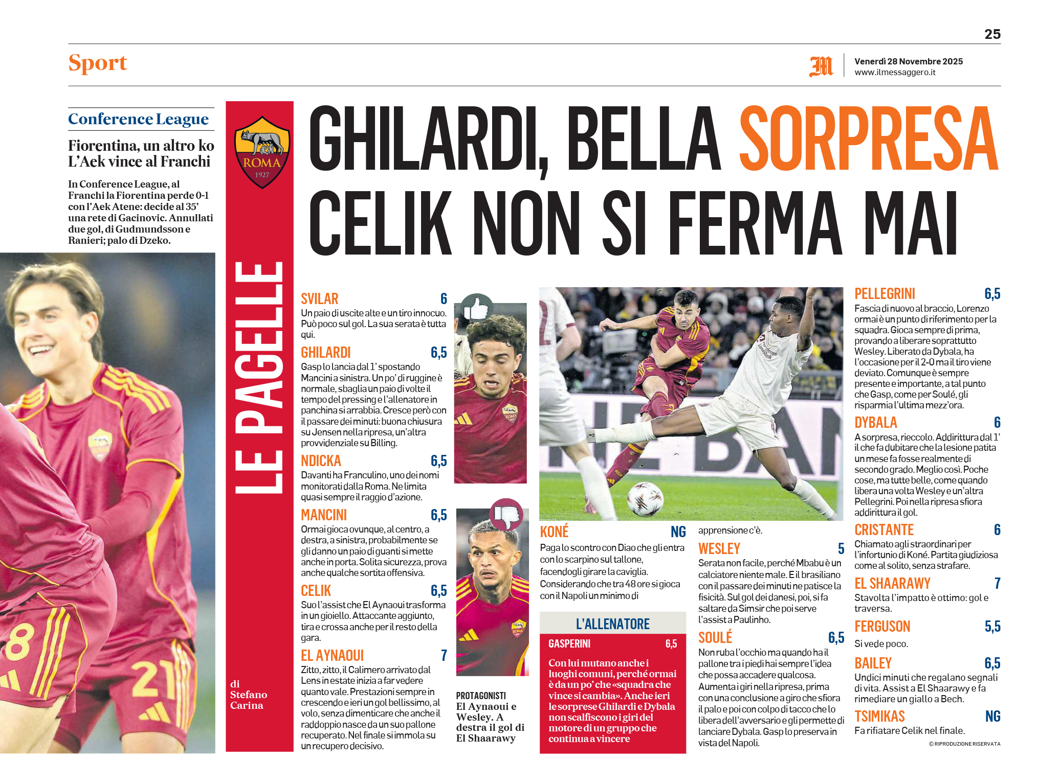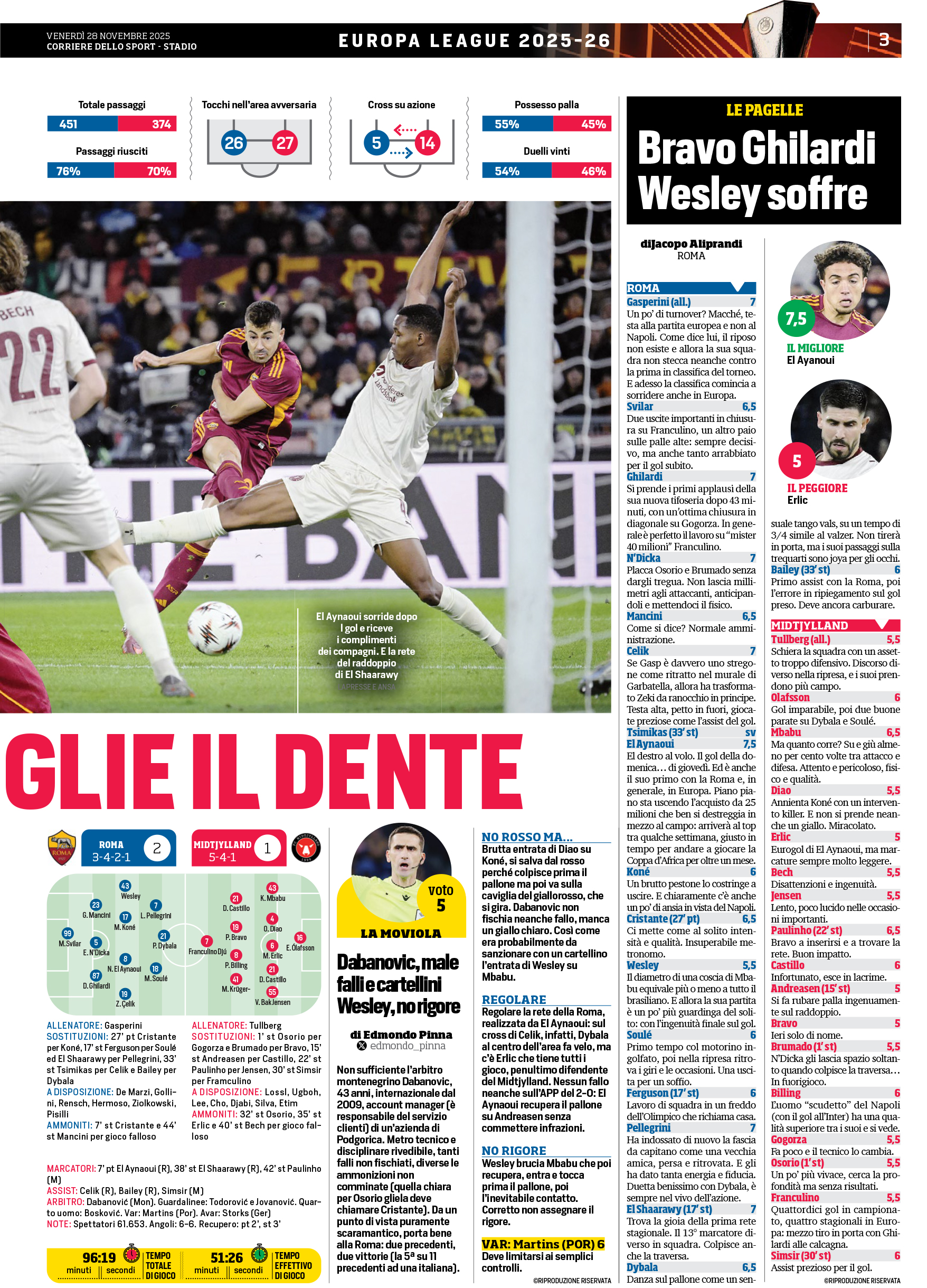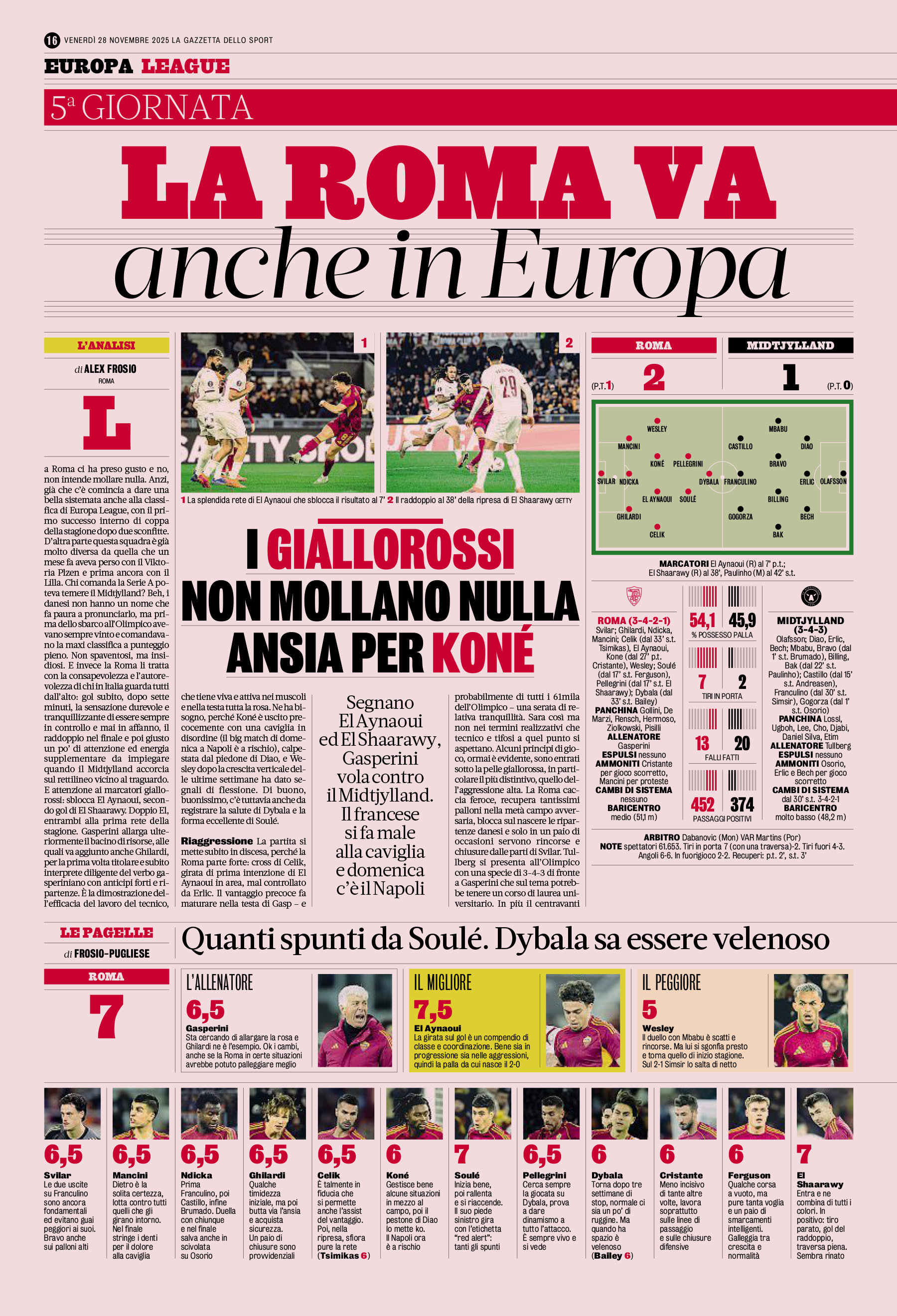 Cristante 6), Wesley 5; Soulè 6,5 (63' Ferguson 6),