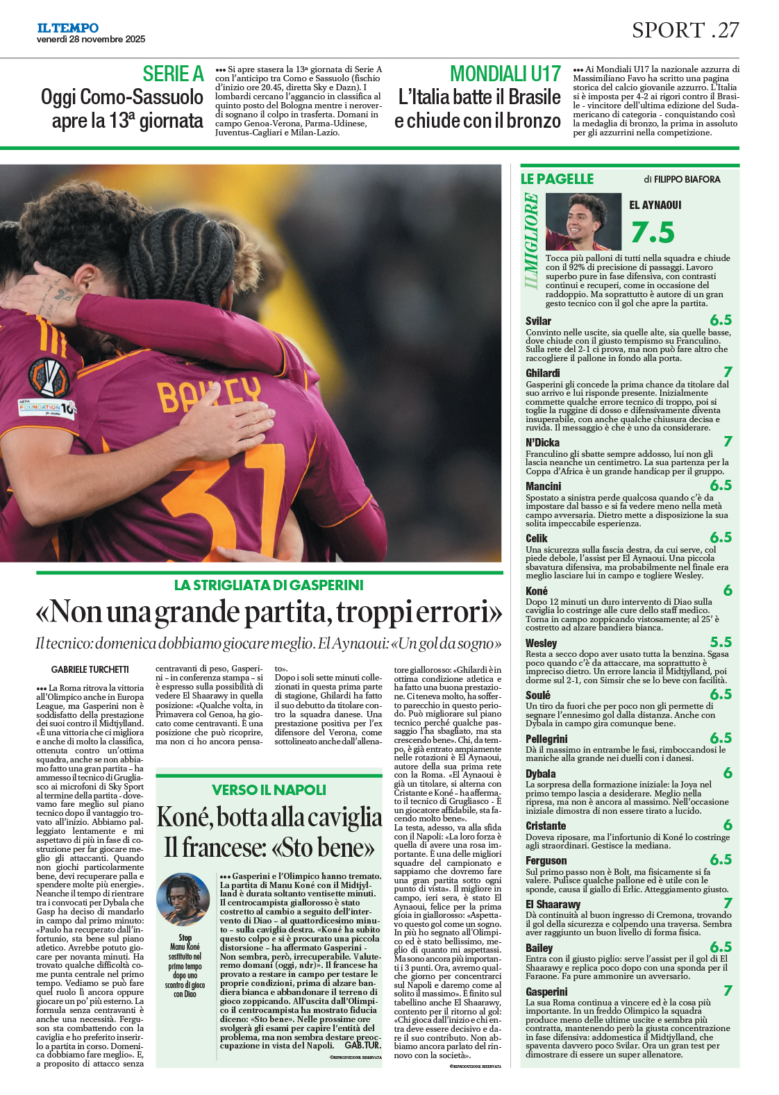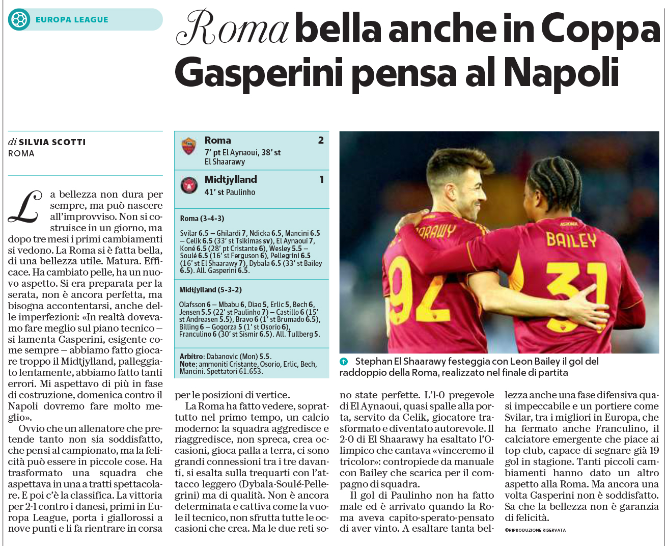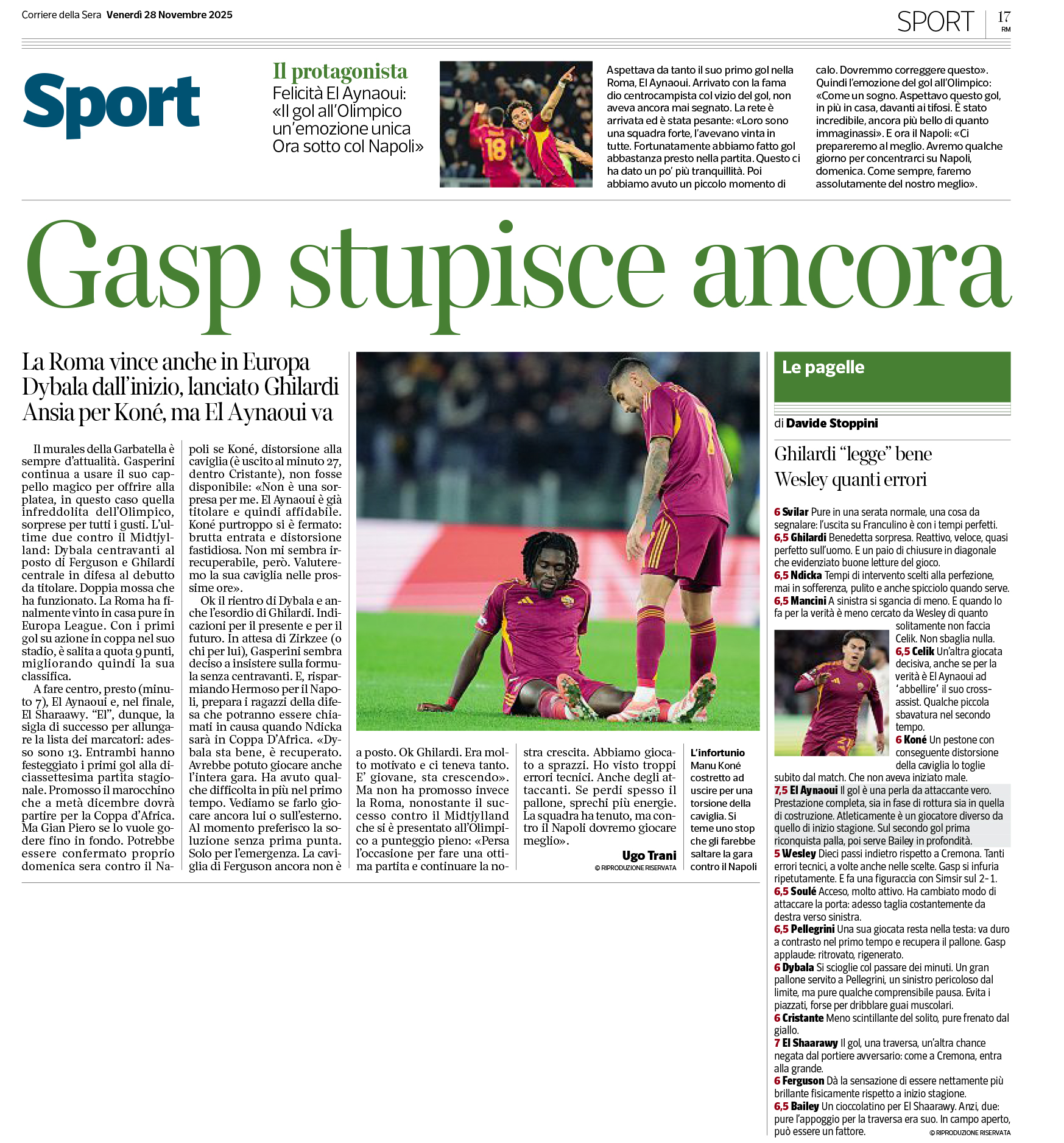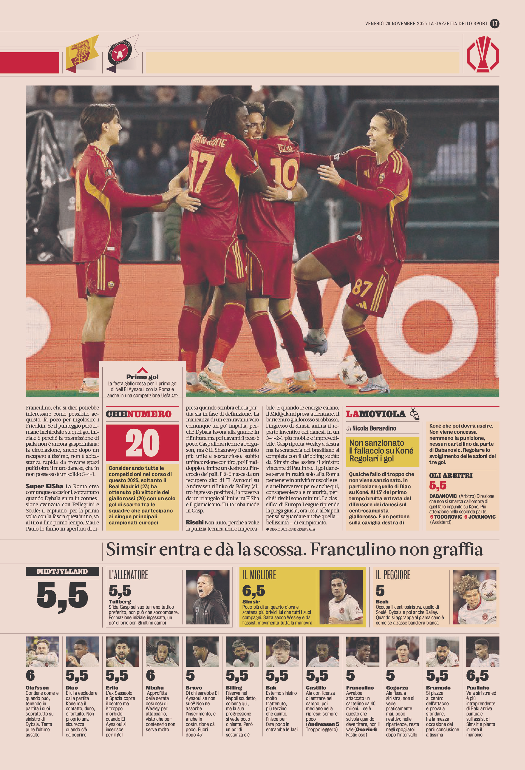 Cristante 6), Wesley 5; Soulè 6,5 (63' Ferguson 6),