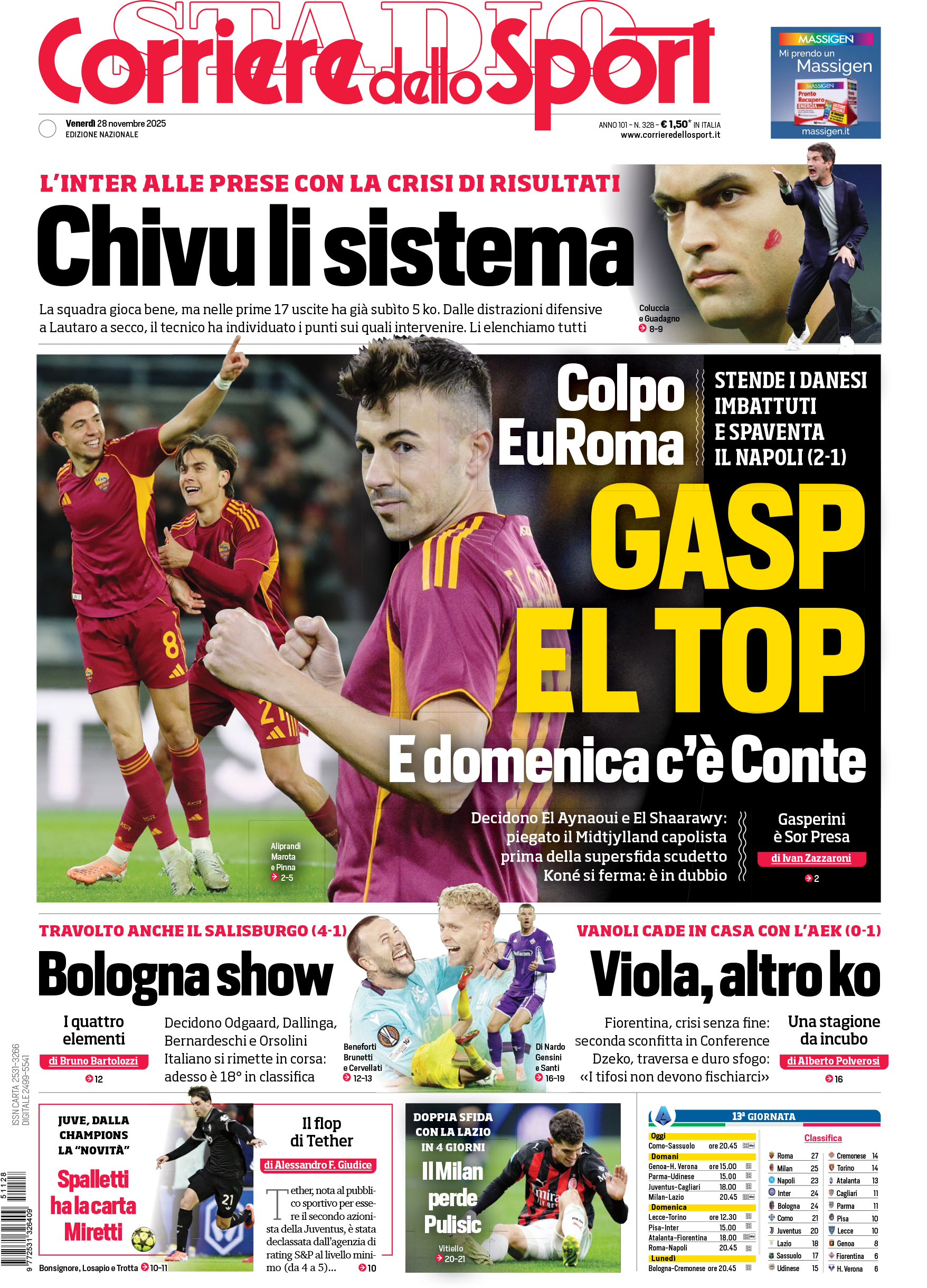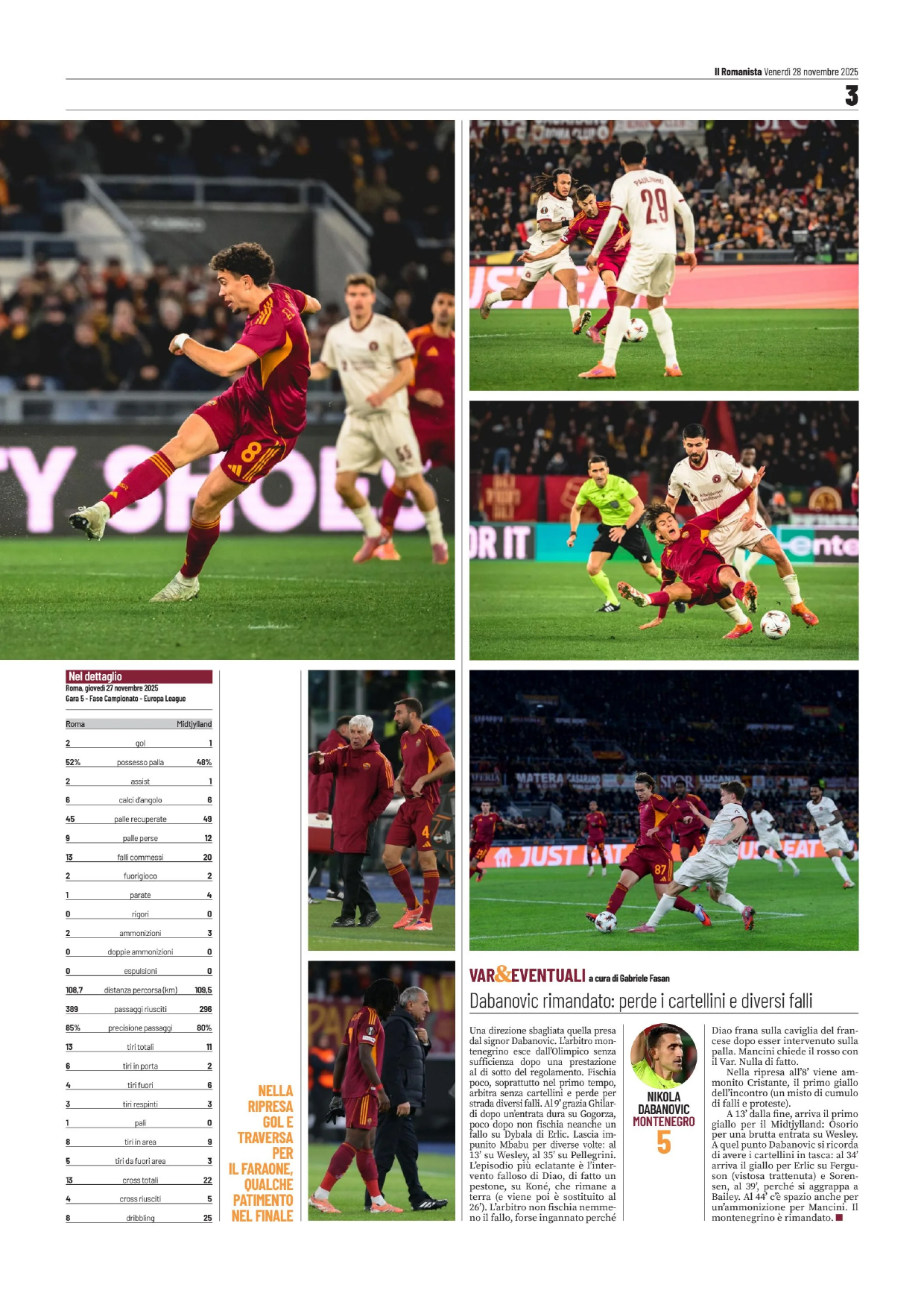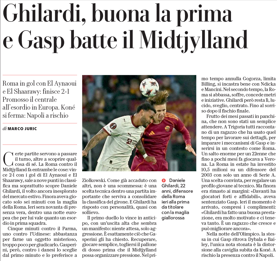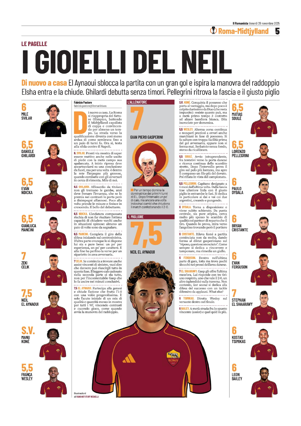 Svilar 6,5; Ghilardi 6, Ndicka 6,5, Mancini 6; Celik