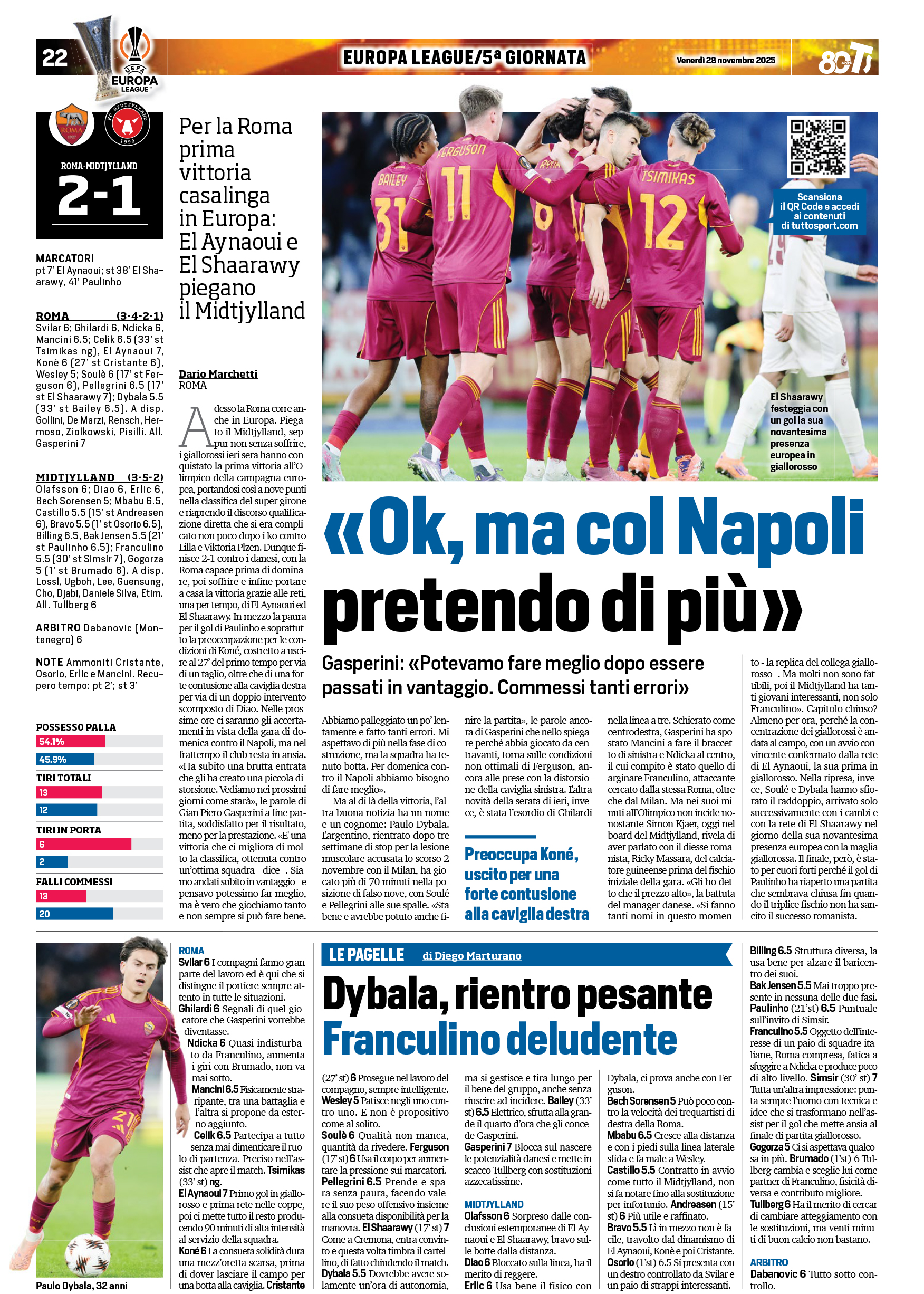 Pellegrini 6,5 (63' El Shaarawy 7,5); Dybala 6,5