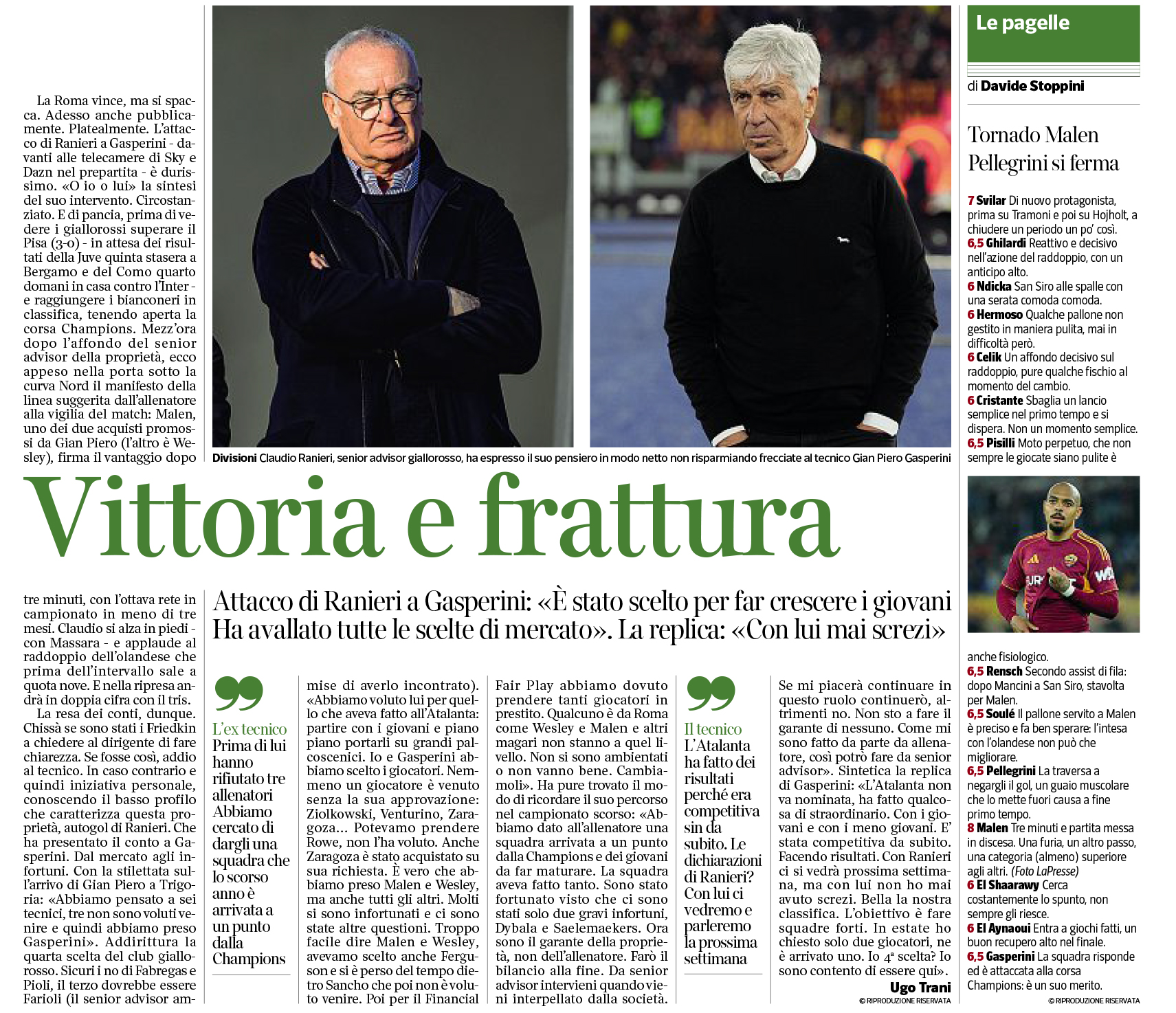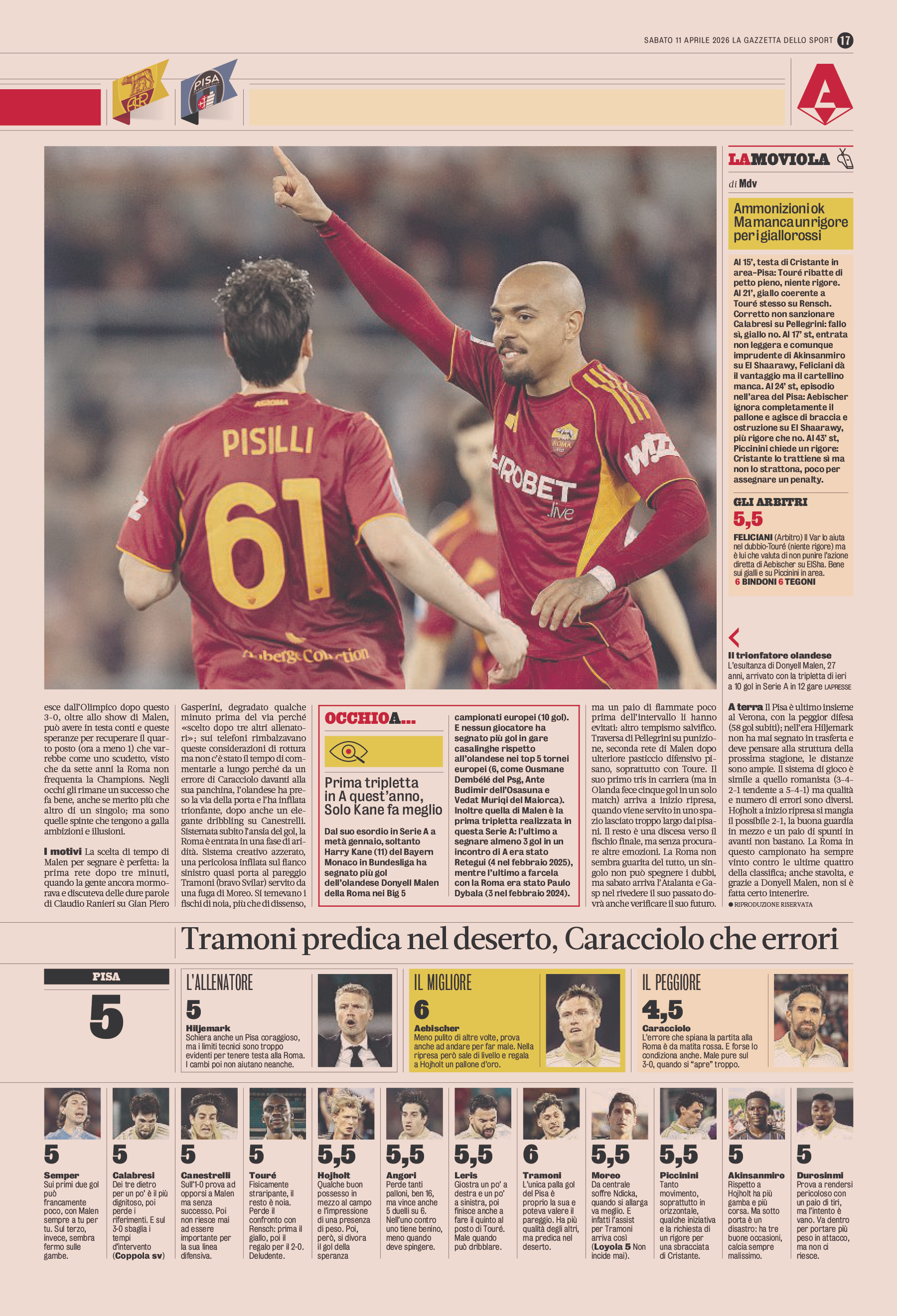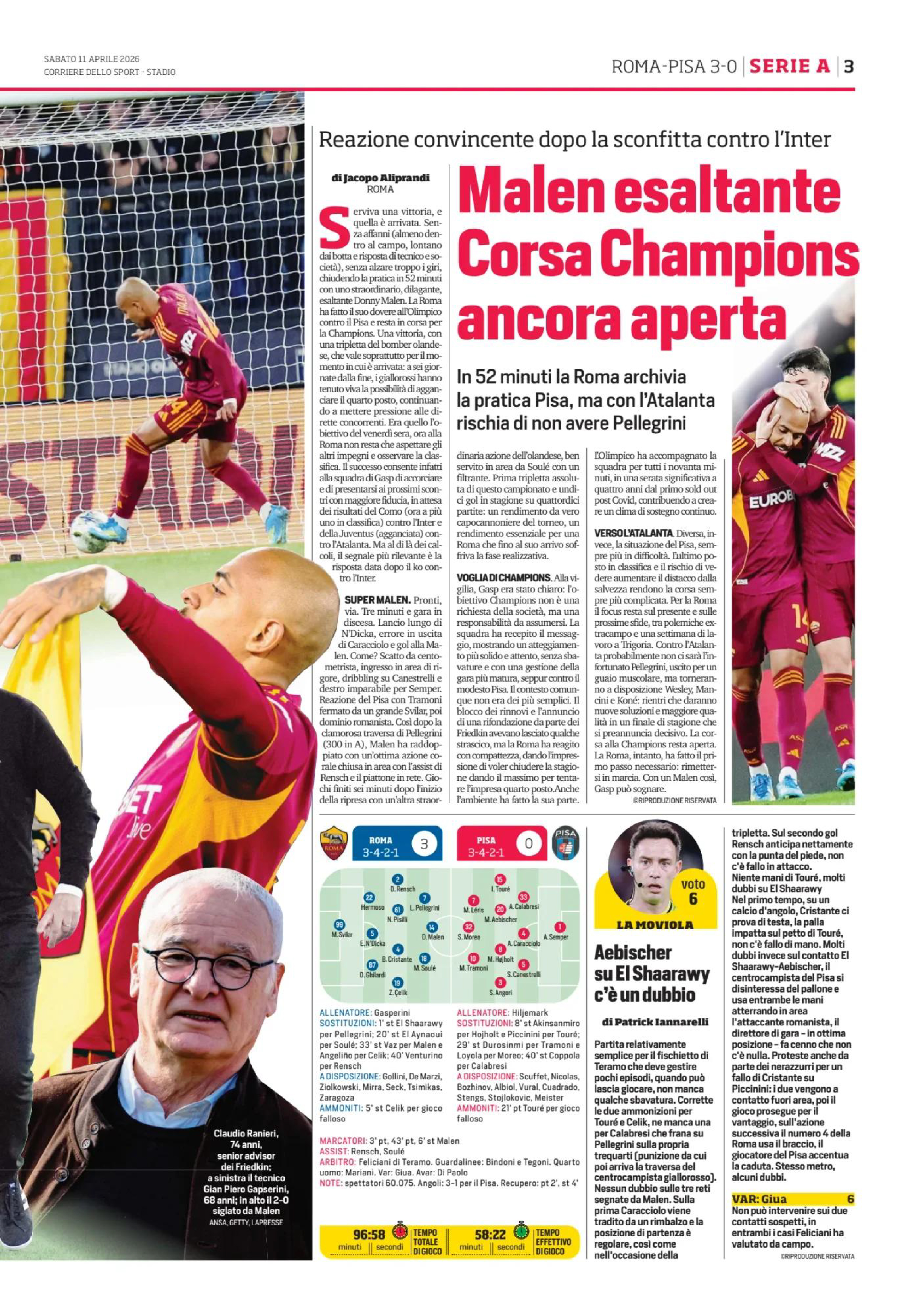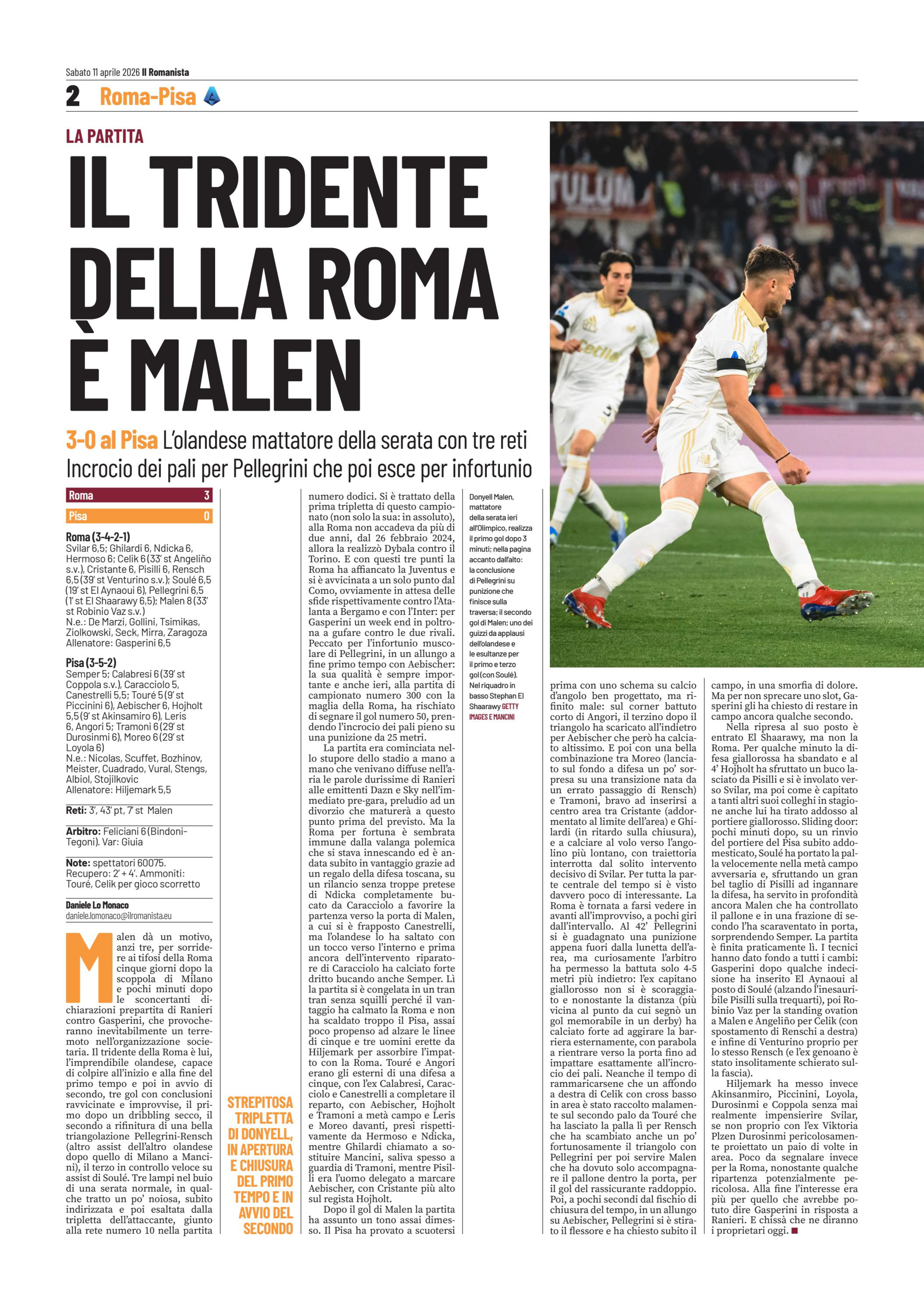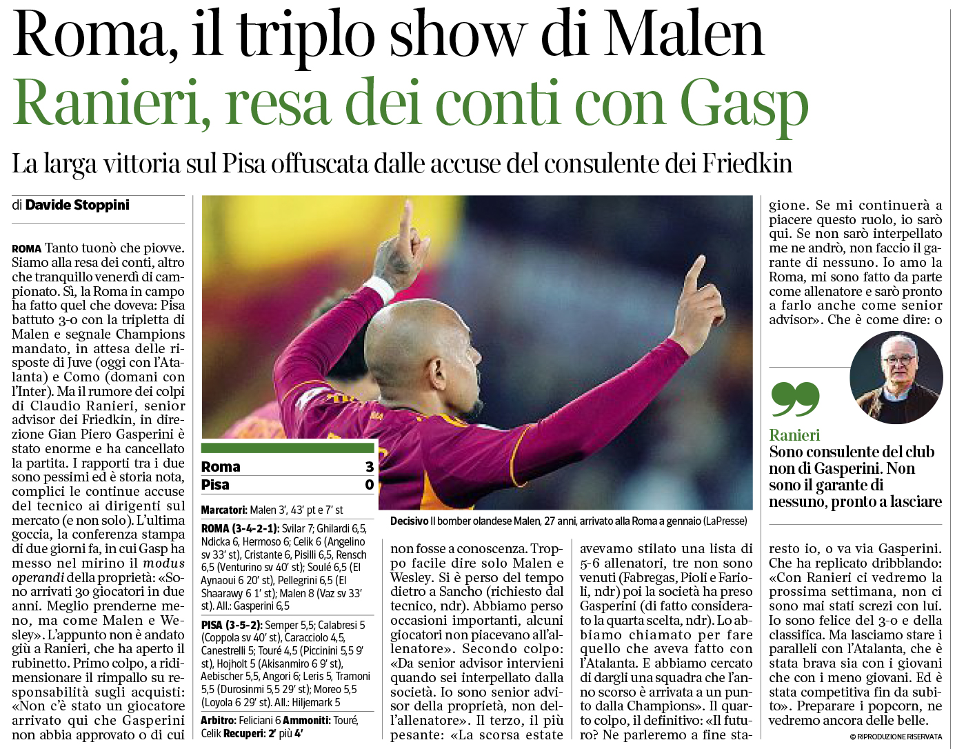 El Aynaoui), Pellegrini (46' El Shaarawy); Malen (78'