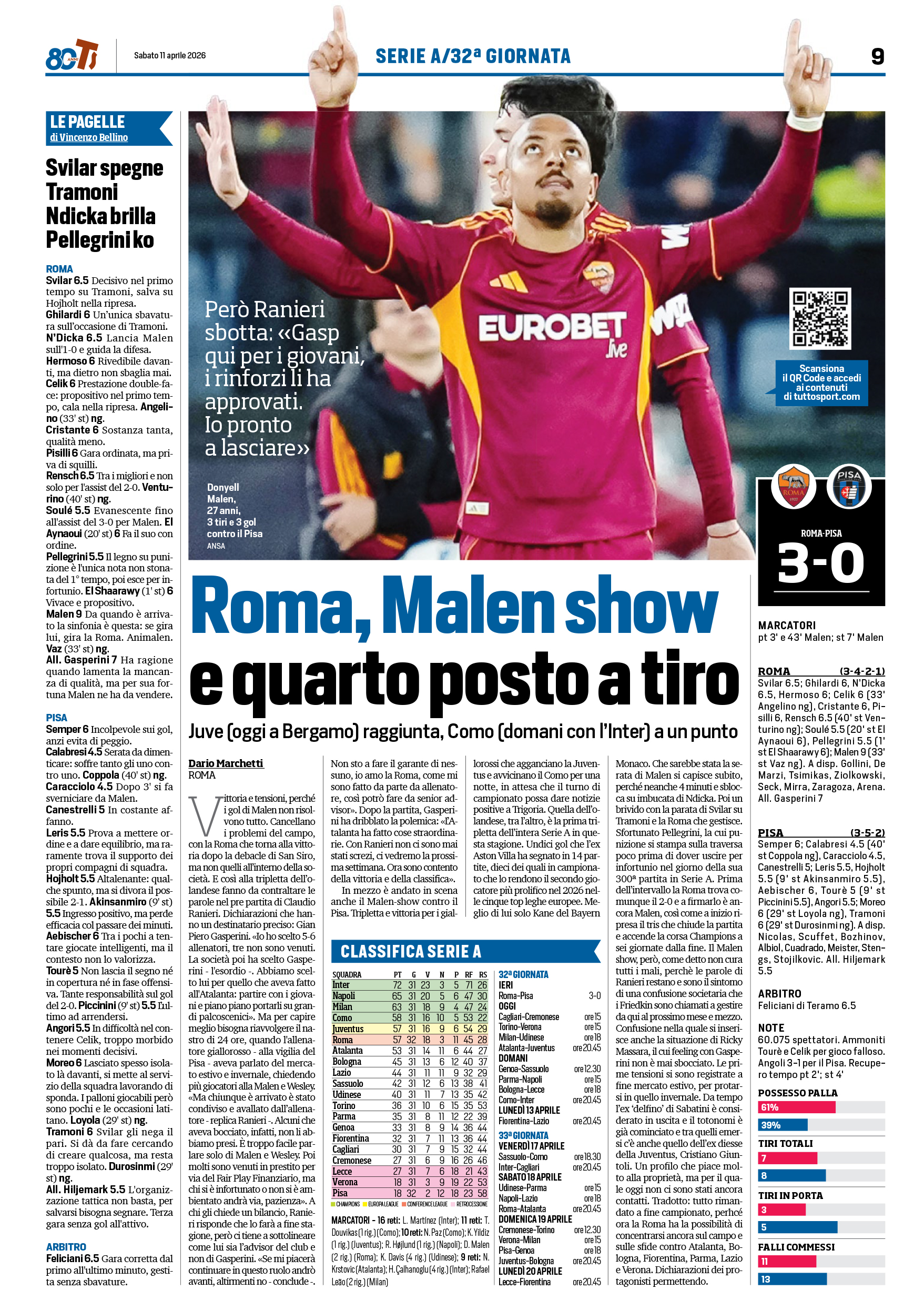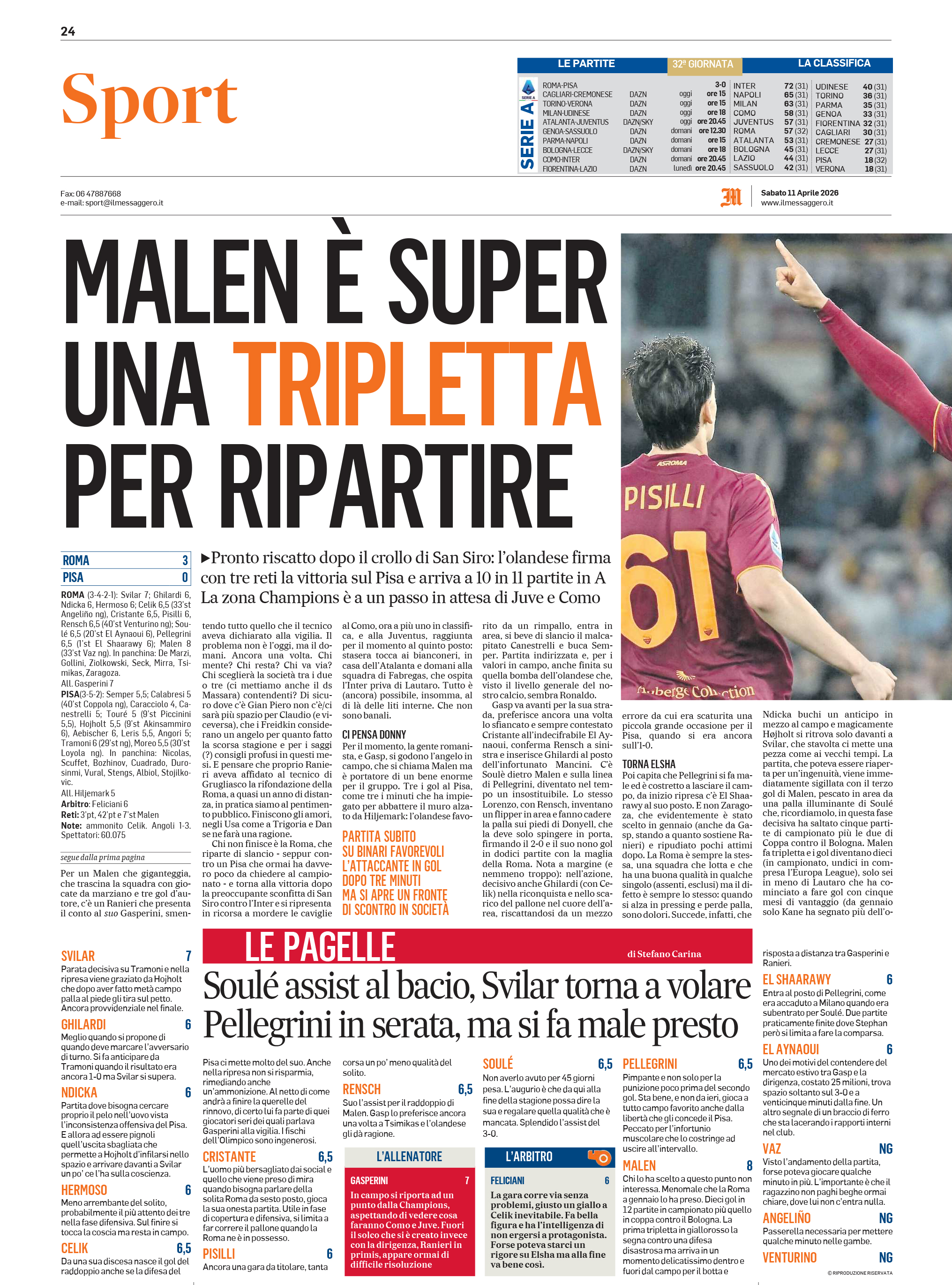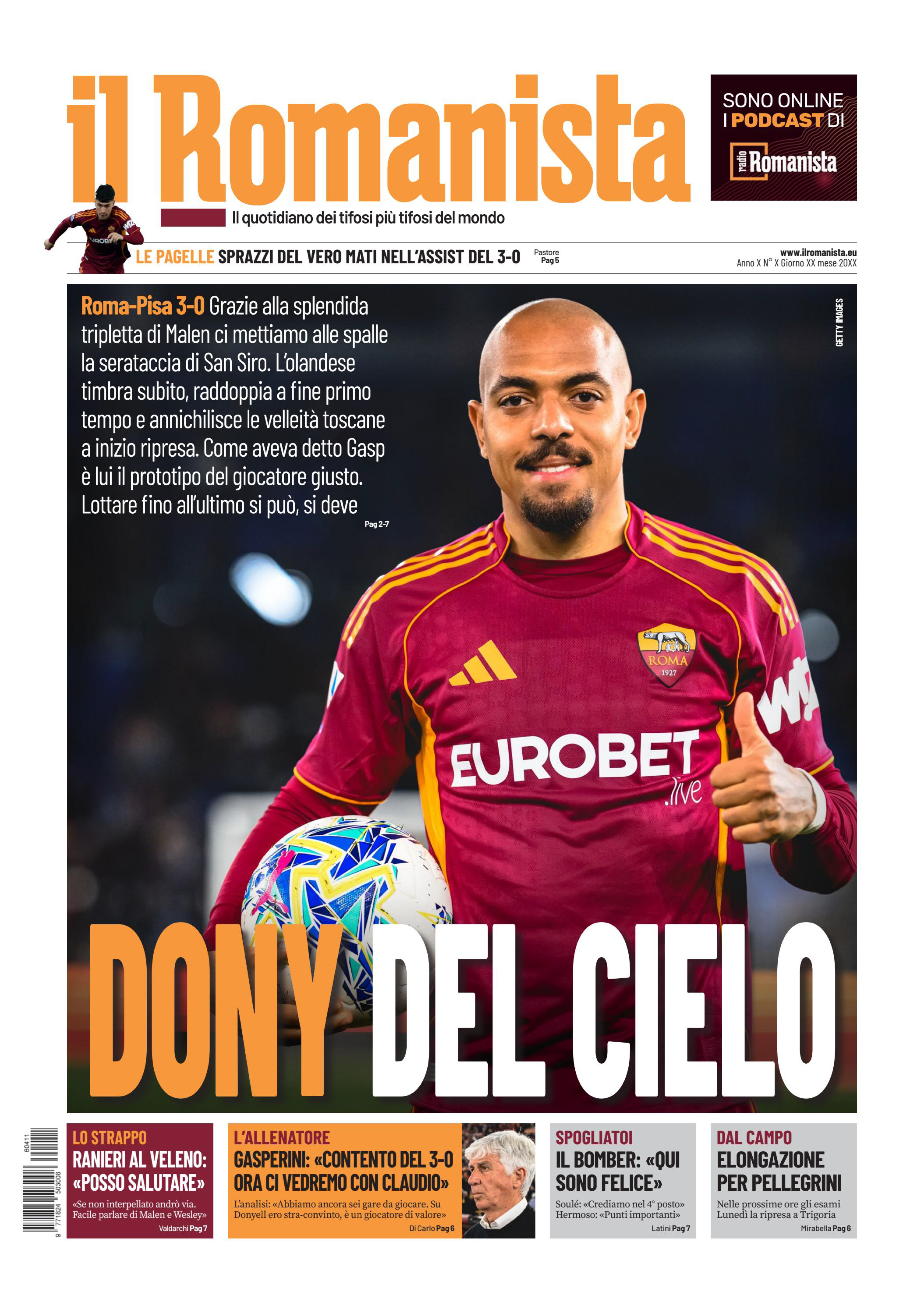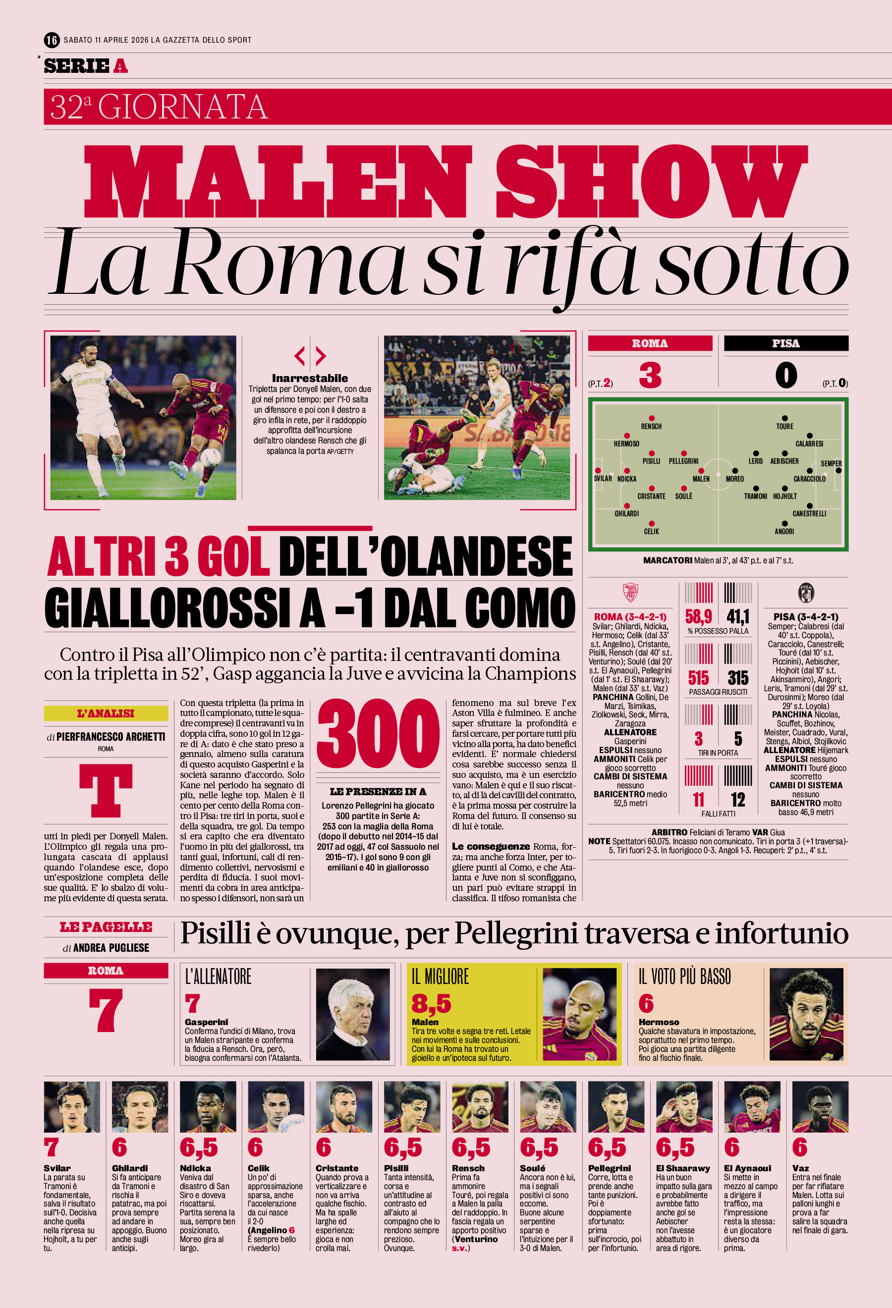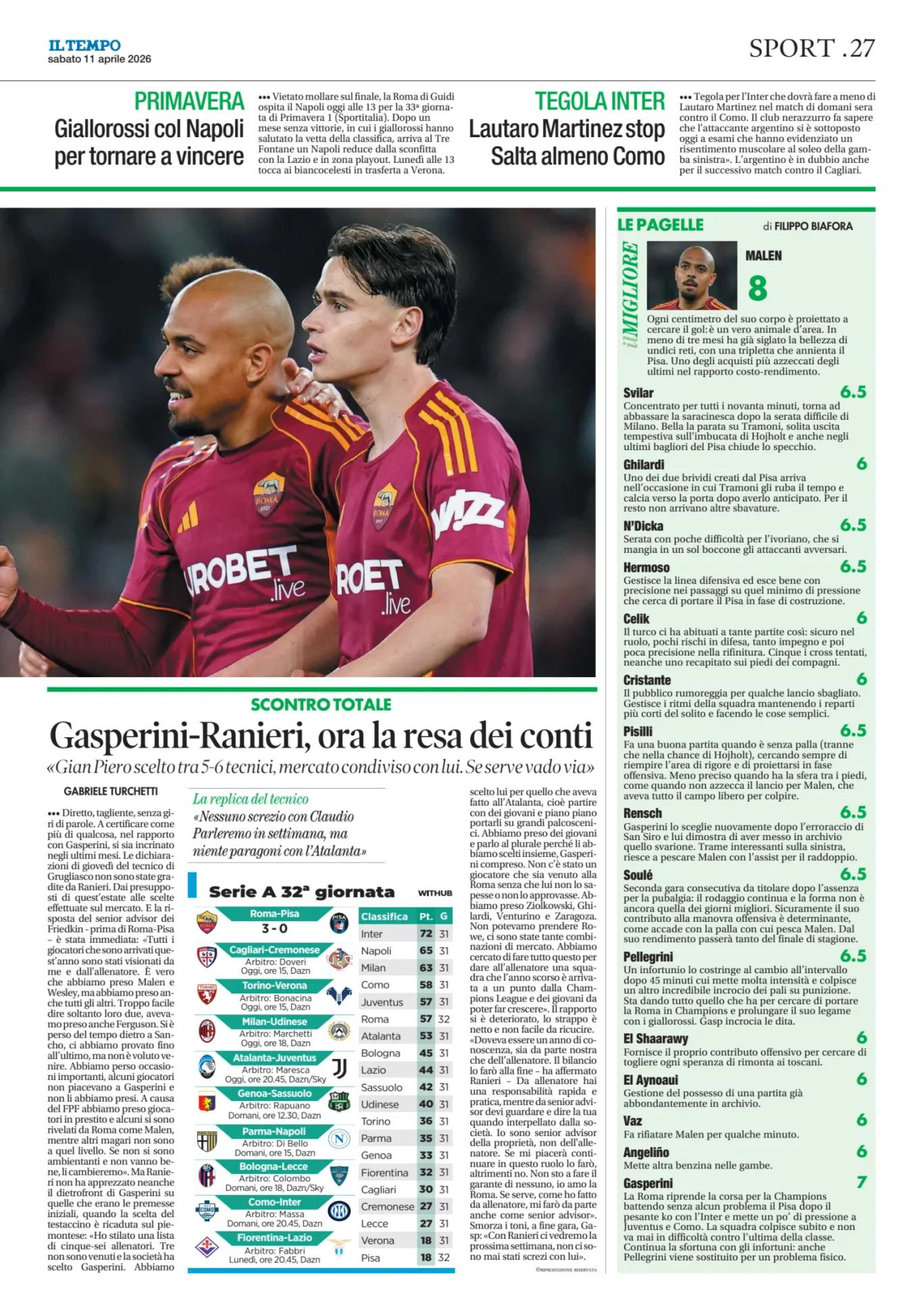 El Aynaoui), Pellegrini (46' El Shaarawy); Malen (78'