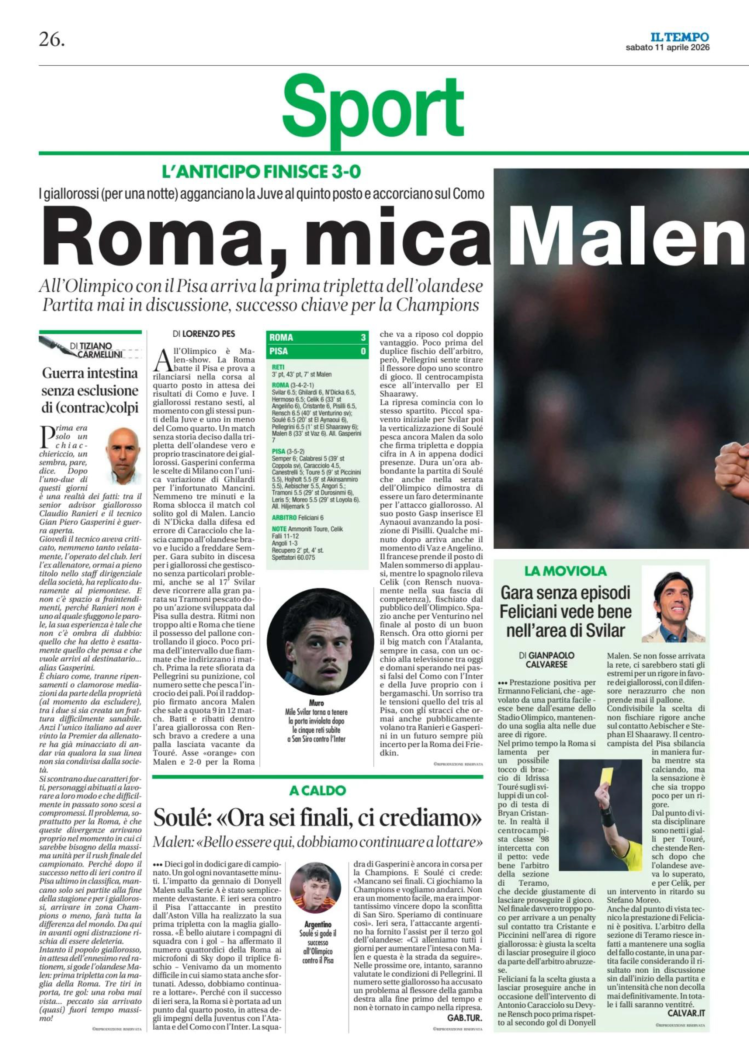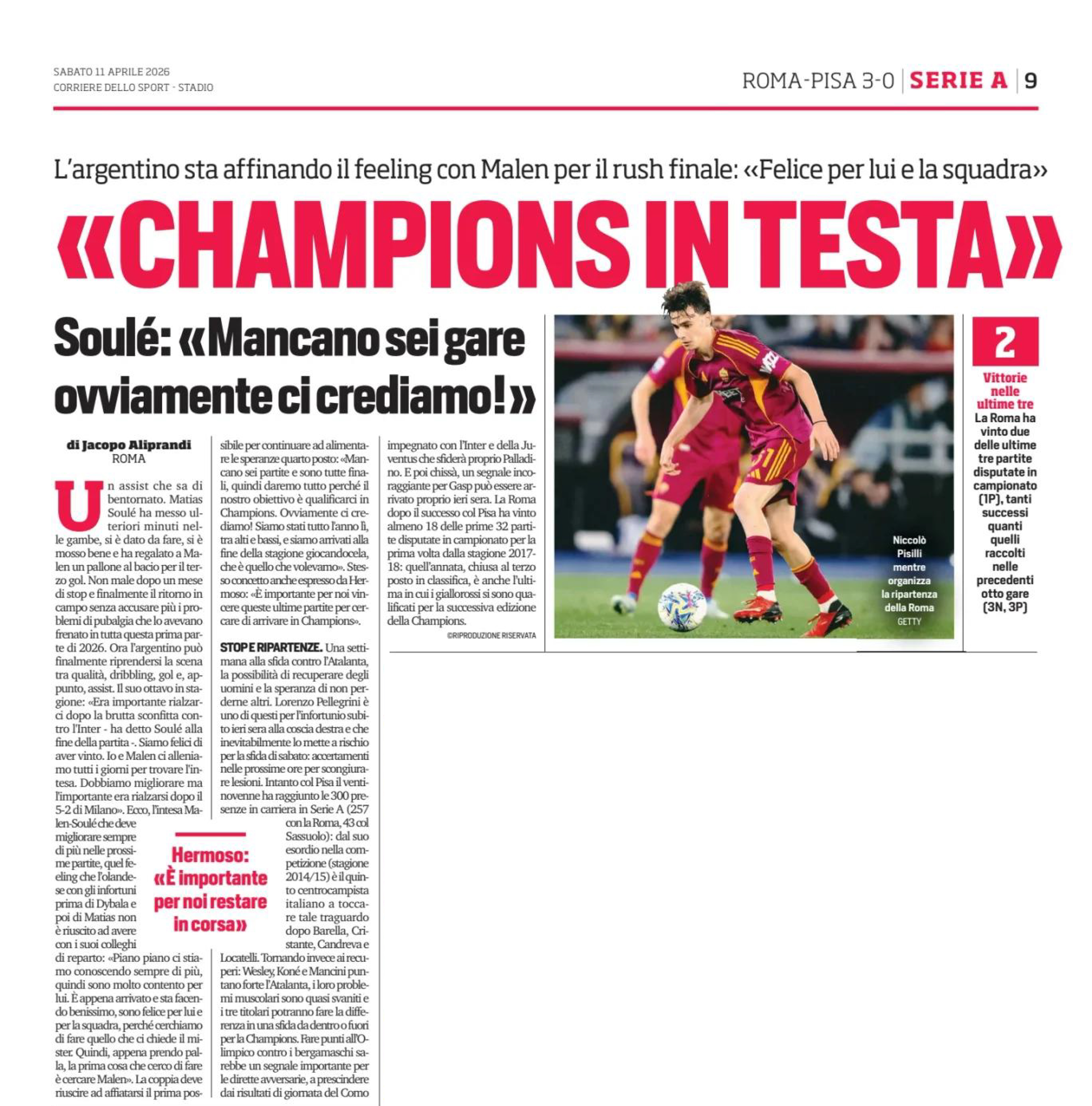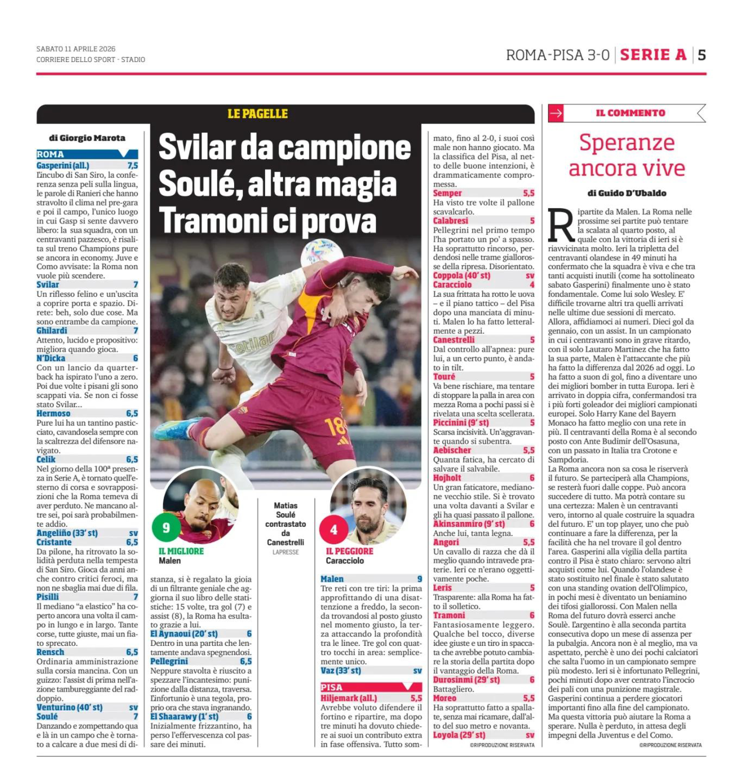 Pisilli, Ghilardi, Rensch (85' Venturino); Soulé (65'