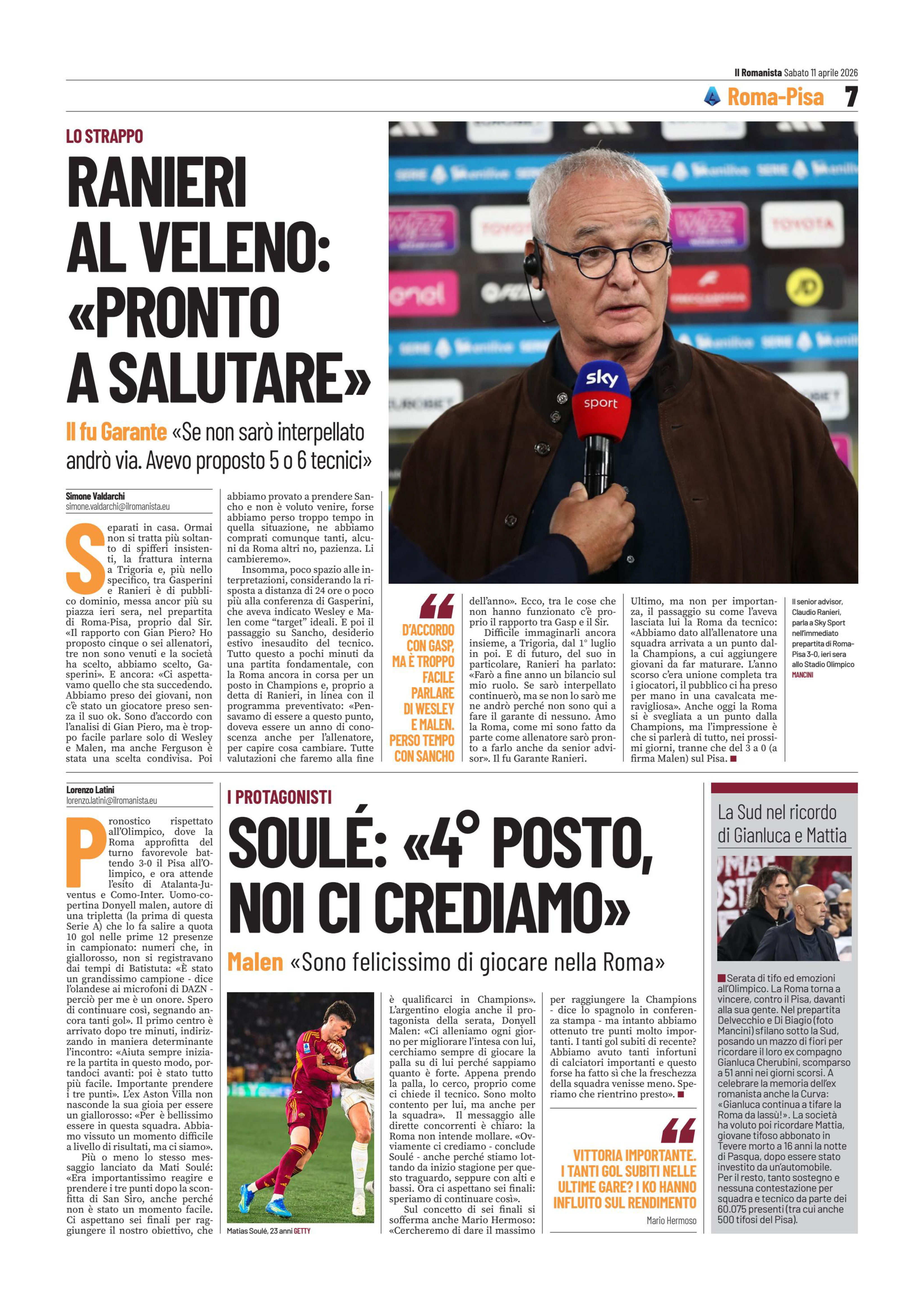 sostiene la Roma, con i soliti alti e bassi,
