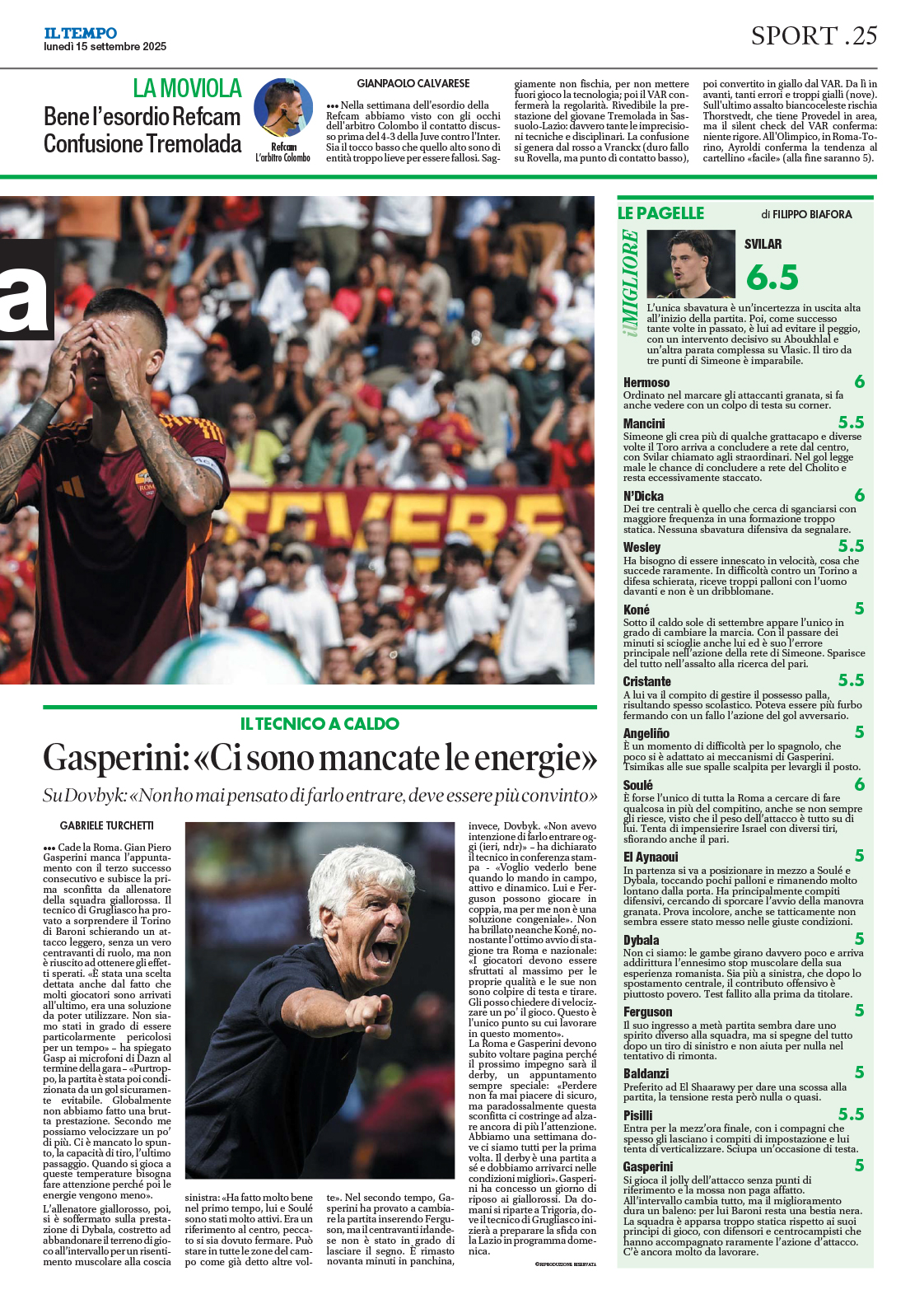| Tabellino partita: ROMA (3-4-2-1): Svilar 6.5; Hermoso