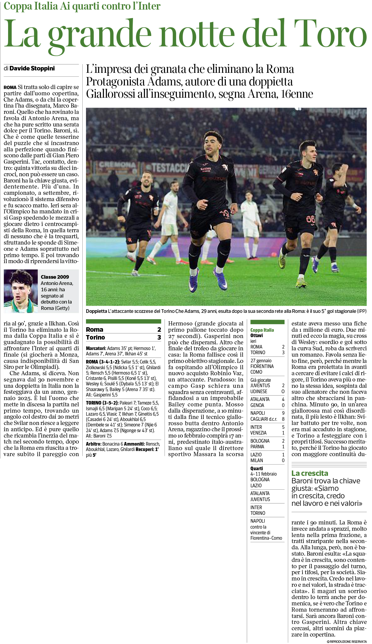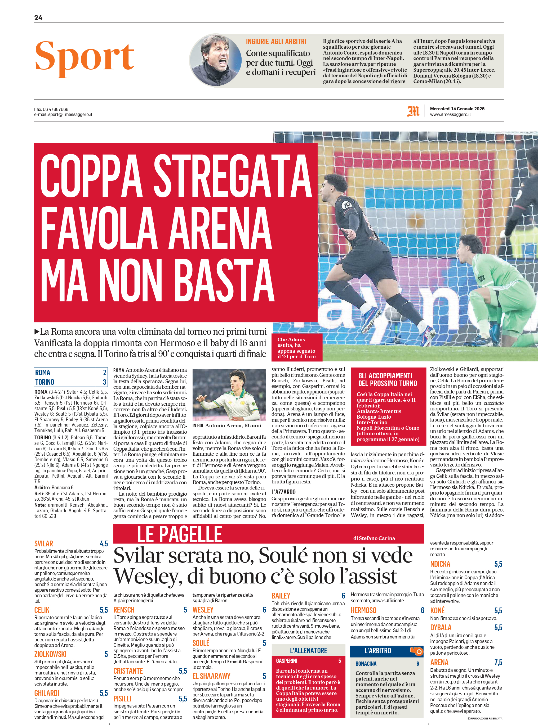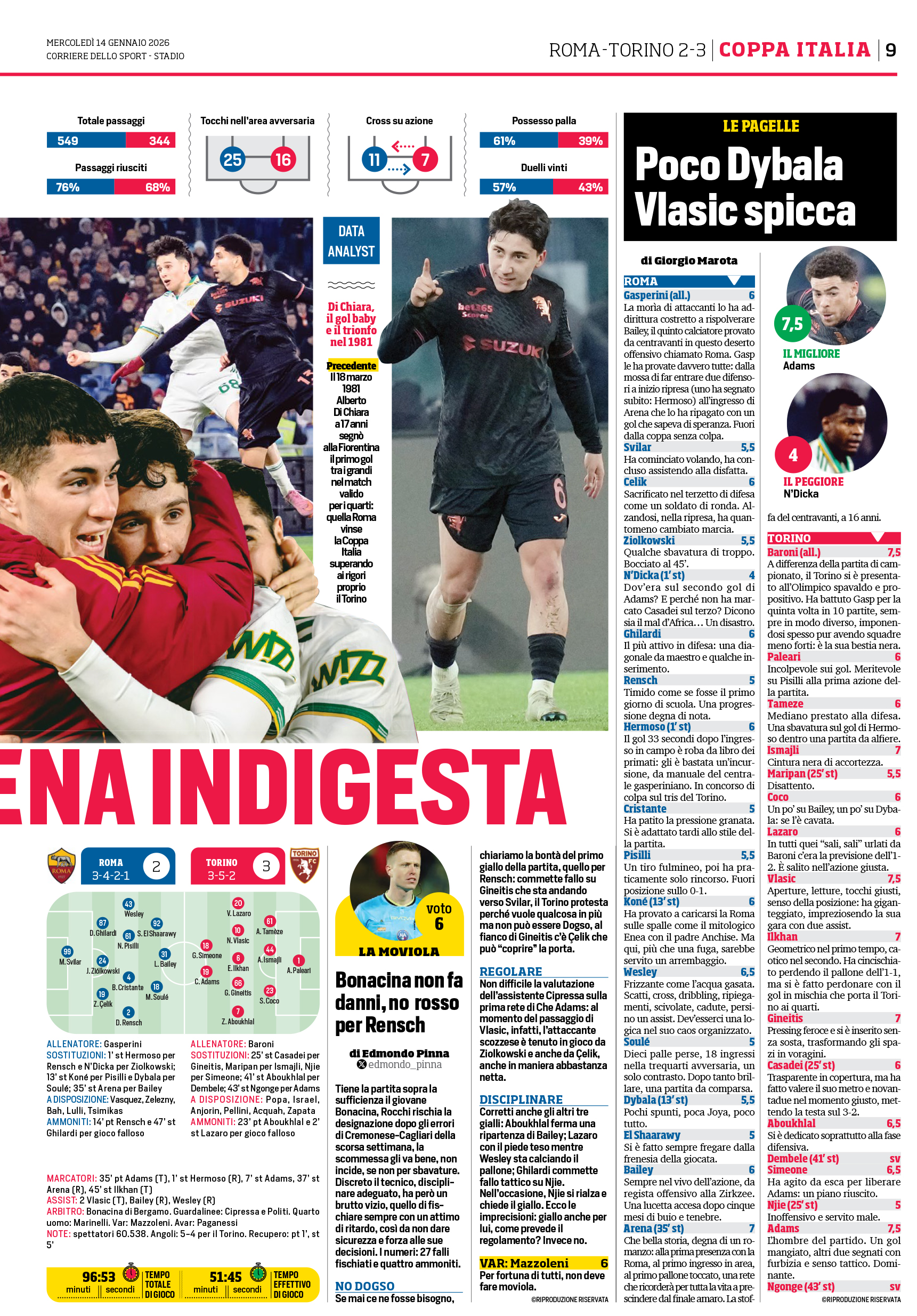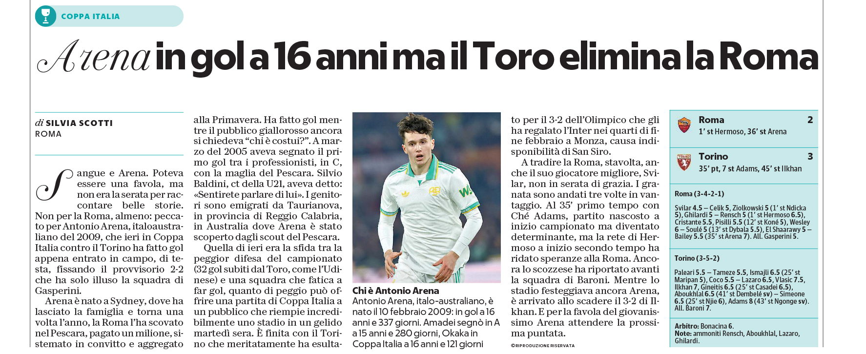 Cristante, 61 Pisilli (56′ Koné), 43 Wesley; 92 El
