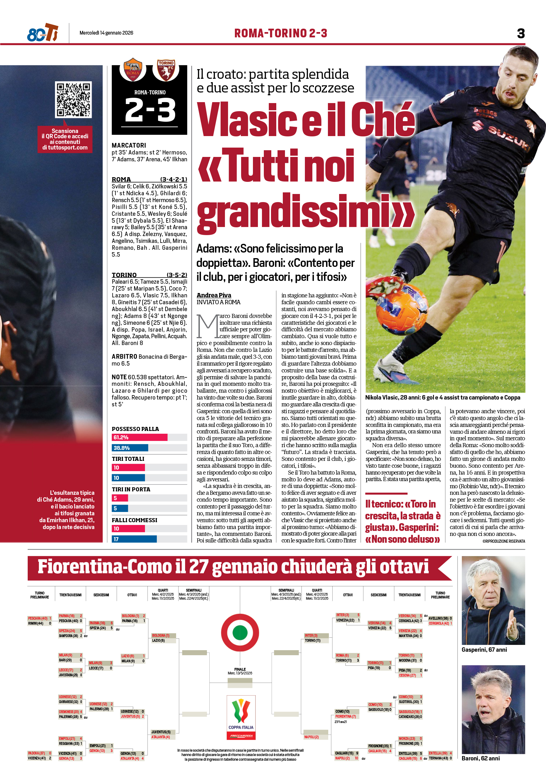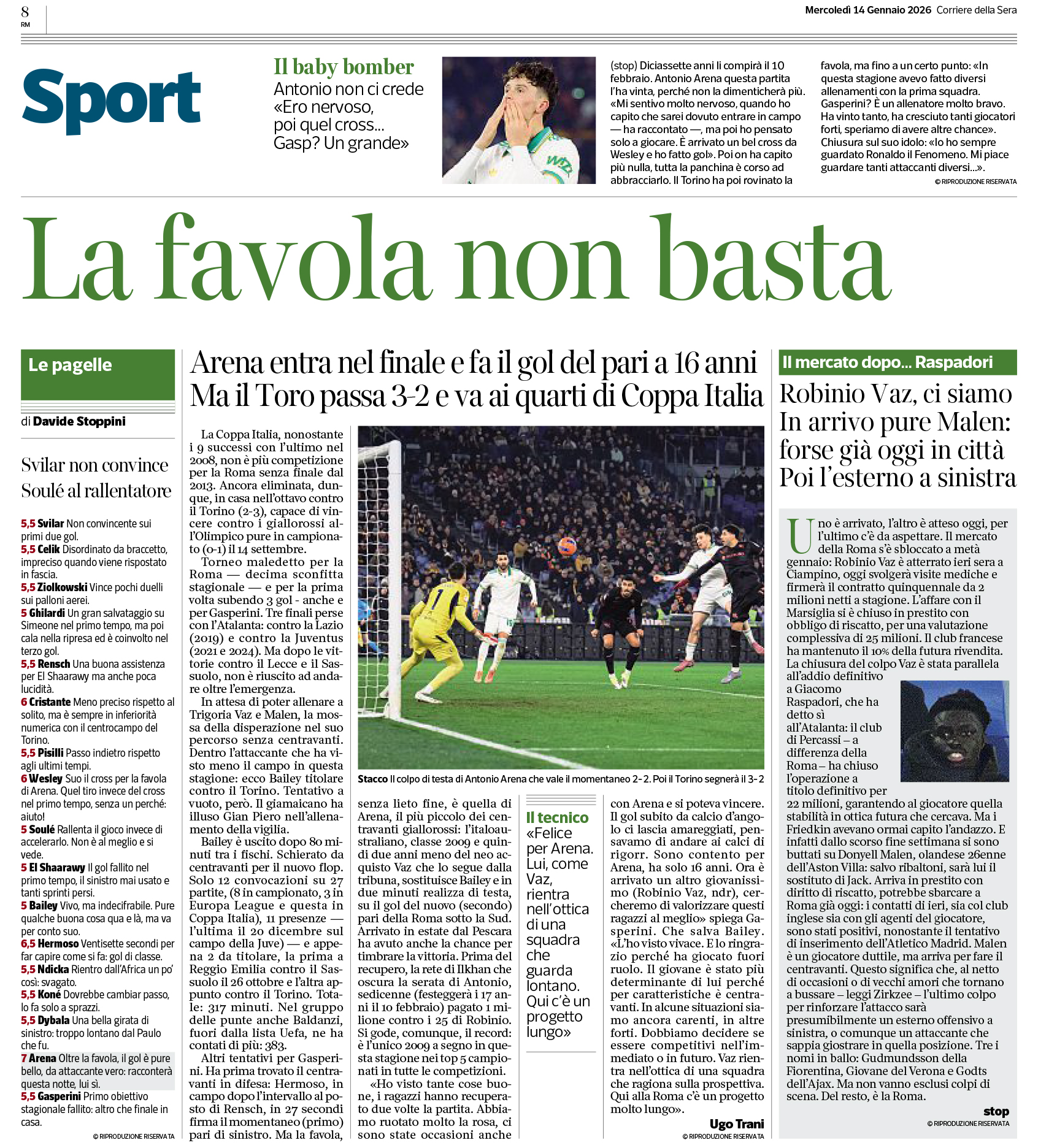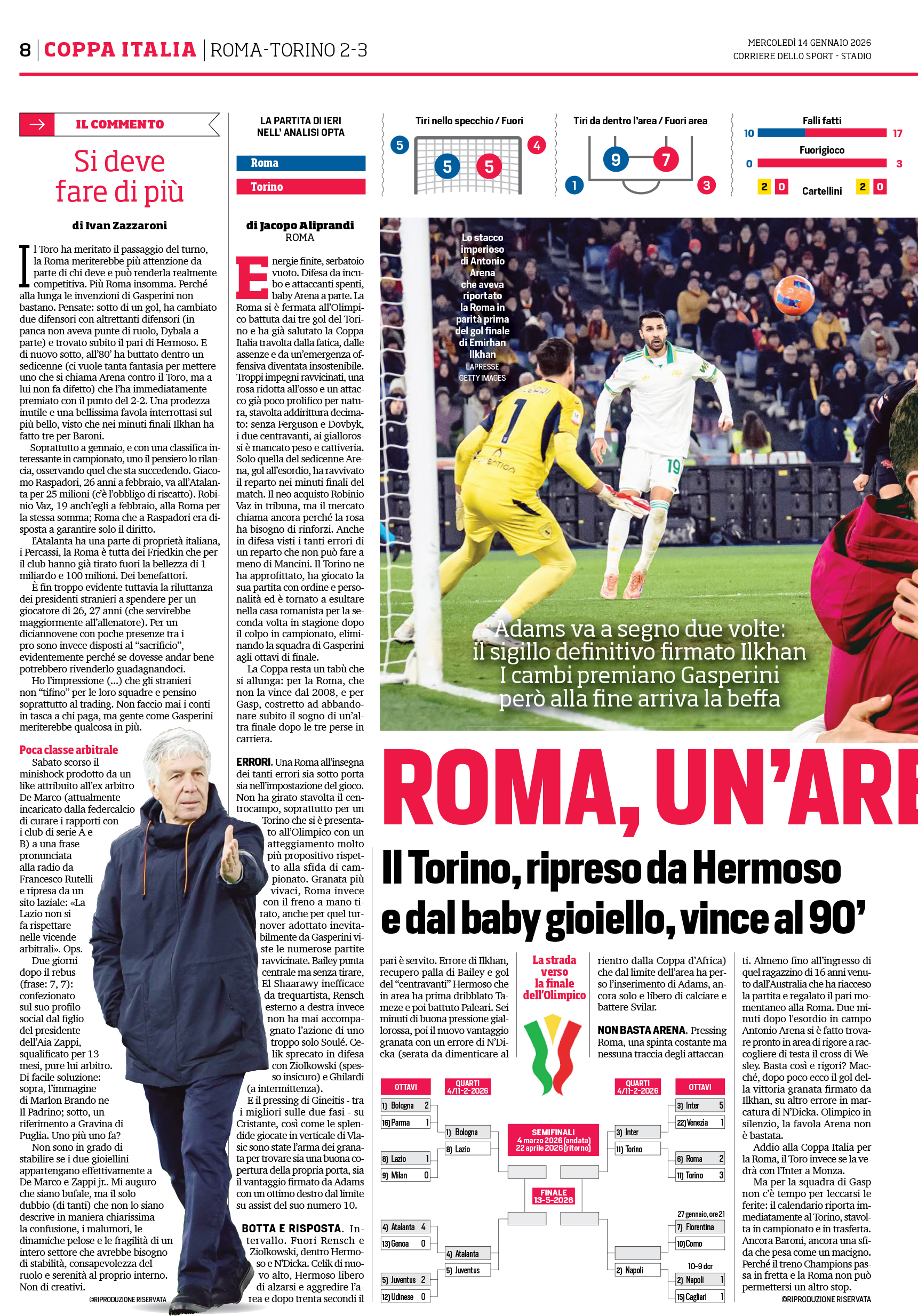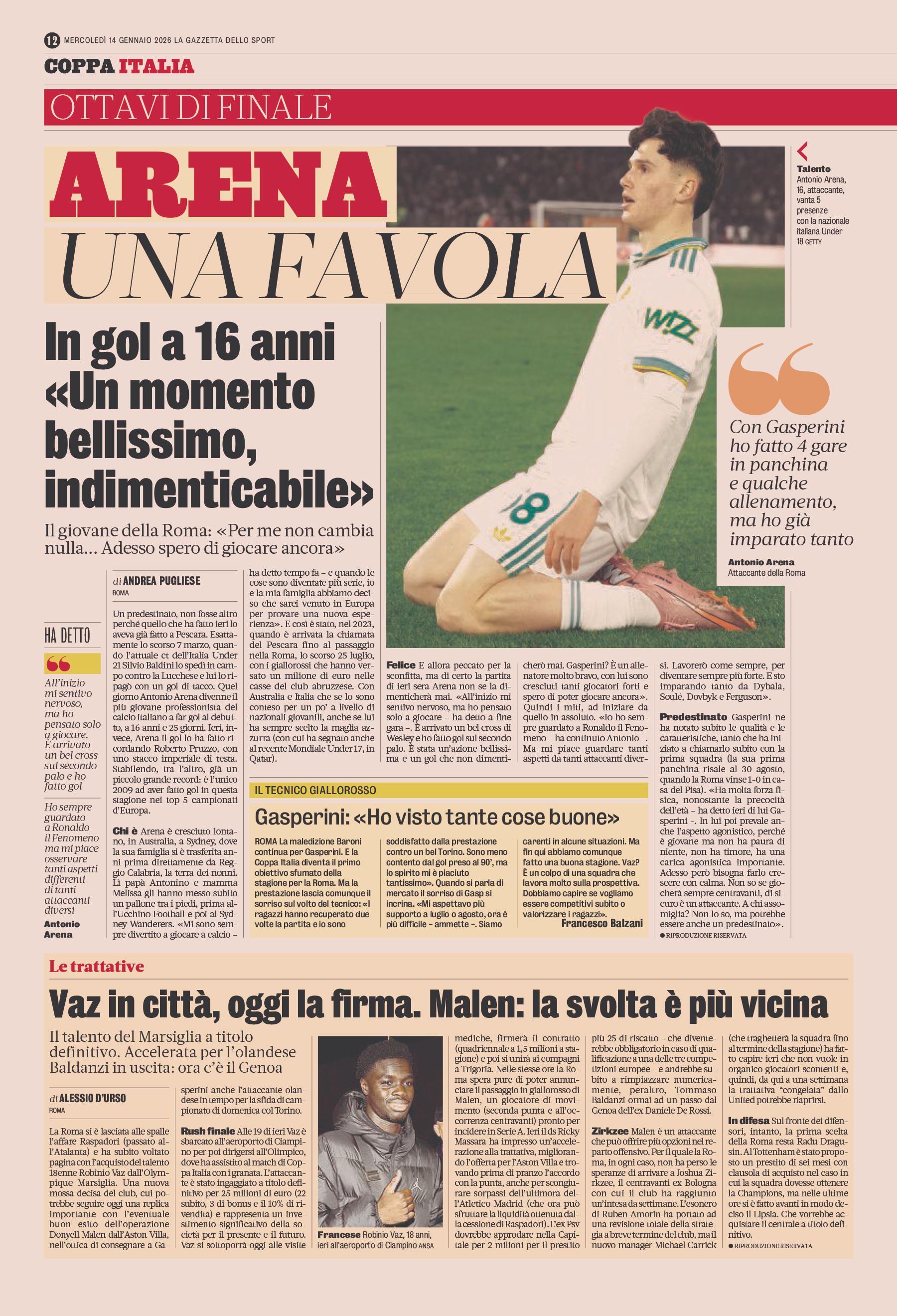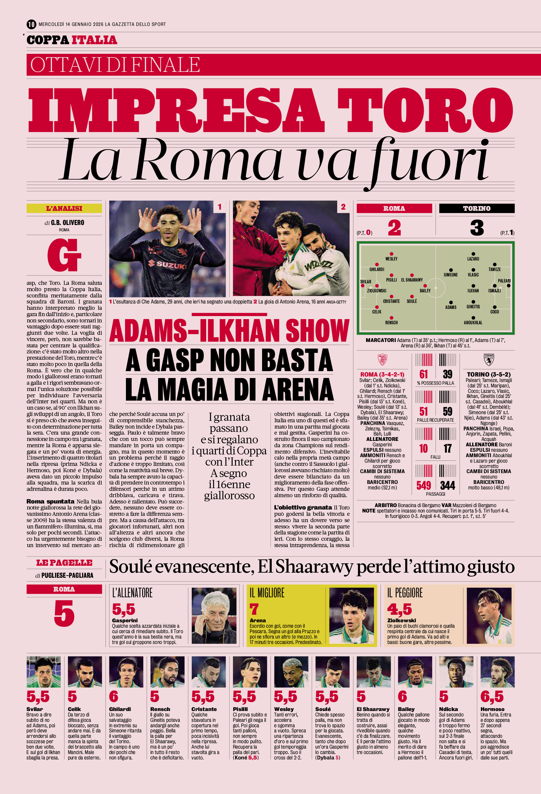 Cristante, 61 Pisilli (56′ Koné), 43 Wesley; 92 El