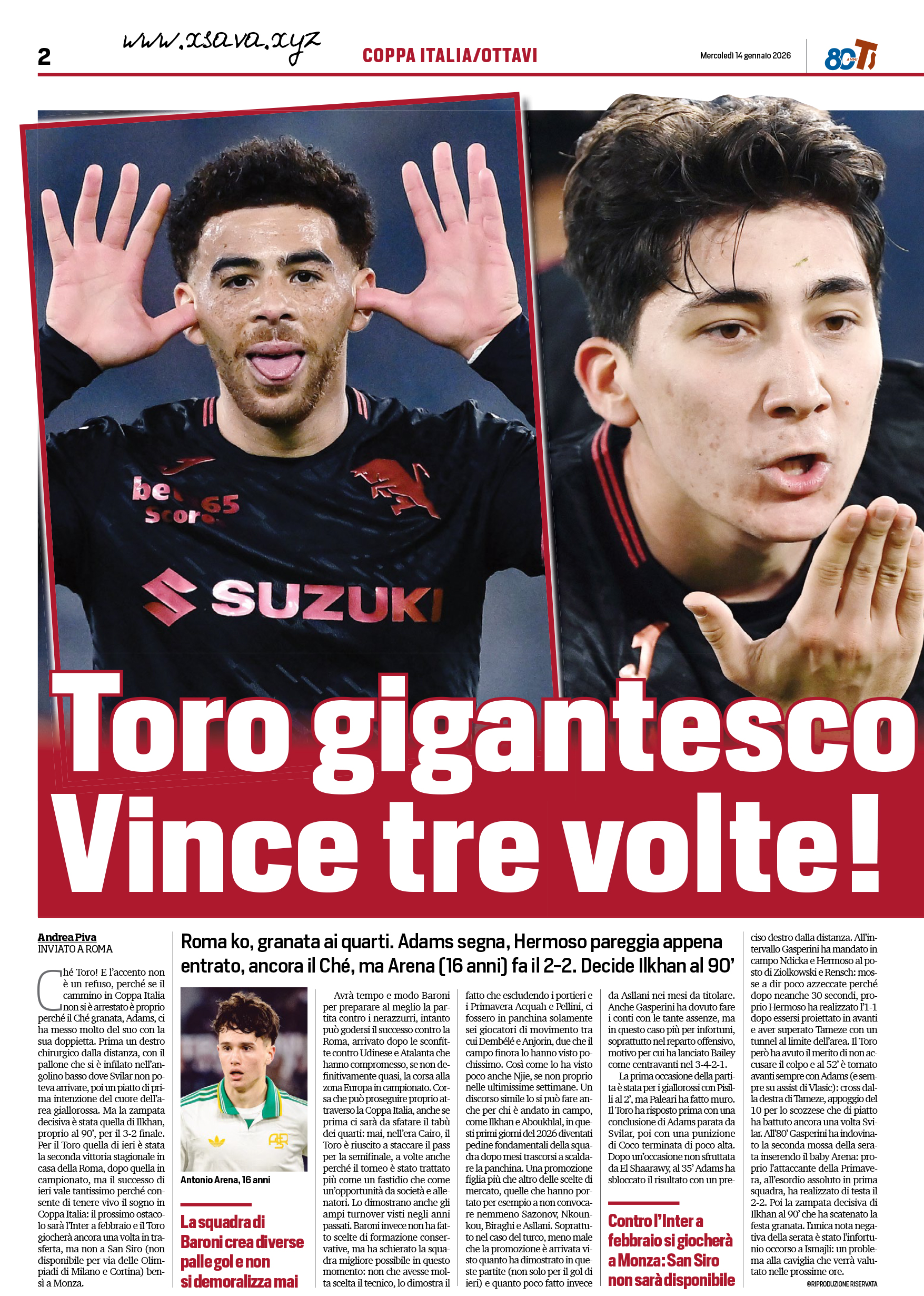 TORINO (3-5-2): Paleari; Tameze, Ismajli (69′