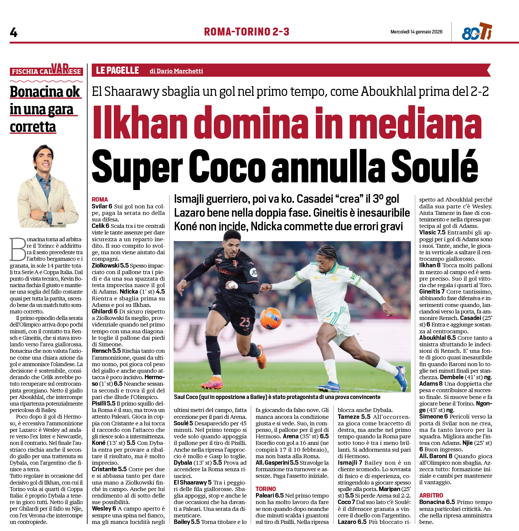 Shaarawy, 18 Soulé (56′ Dybala); 31 Bailey (79′