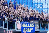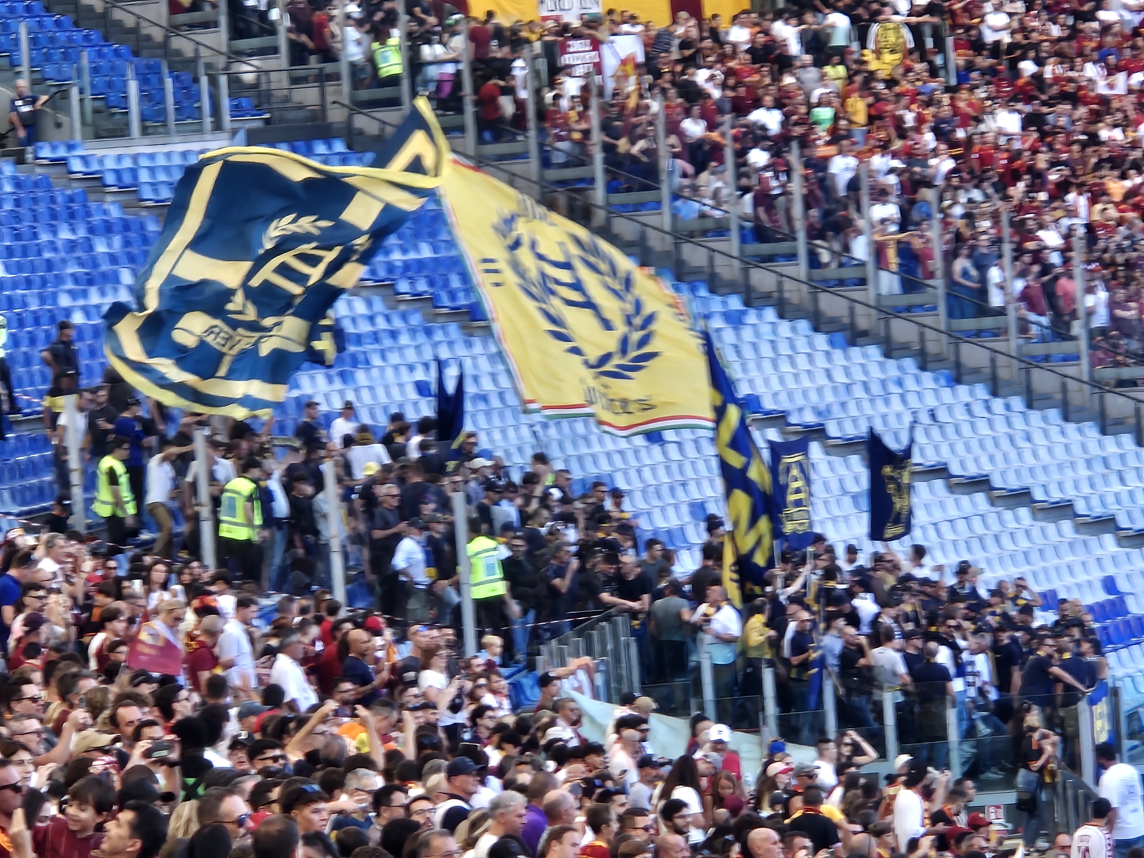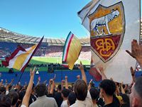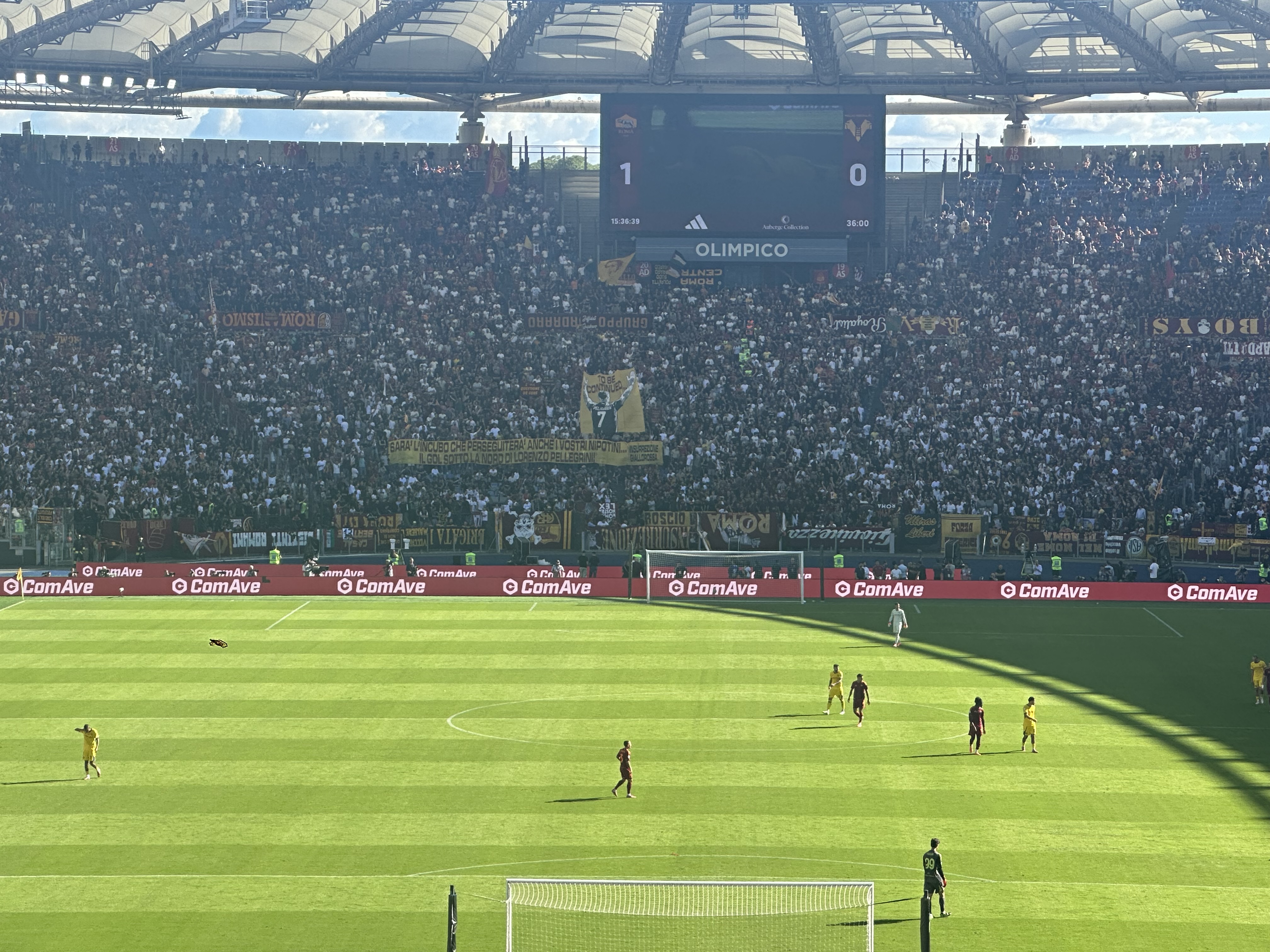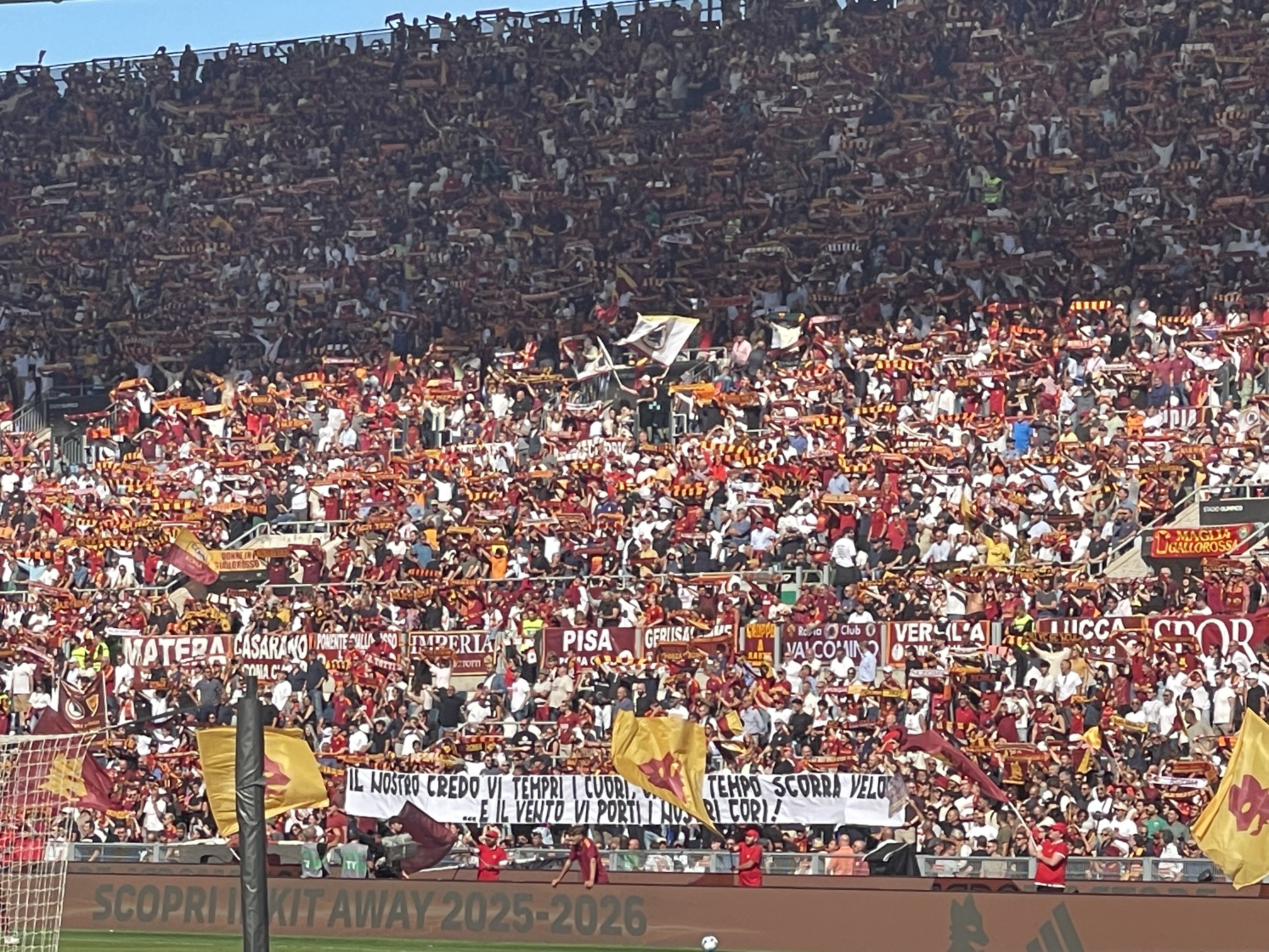 Tifo ospiti: Quelli che sono venuti han fatto una ottima impressione: compatti, movimentati, costanti nel tifo, con alcuni bandieroni ben disegnati che sventolano nel settore. Il problema è solo uno: per una partita alle 15.00 di domenica, come un tempo, sono veramente troppo pochi, credo sui 300. Eppure ormai Roma non è come negli anni '80/'90... Non conosco le dinamiche scaligere, ma più d'uno in Curva Sud si è chiesto: Verona si è imborghesita? |