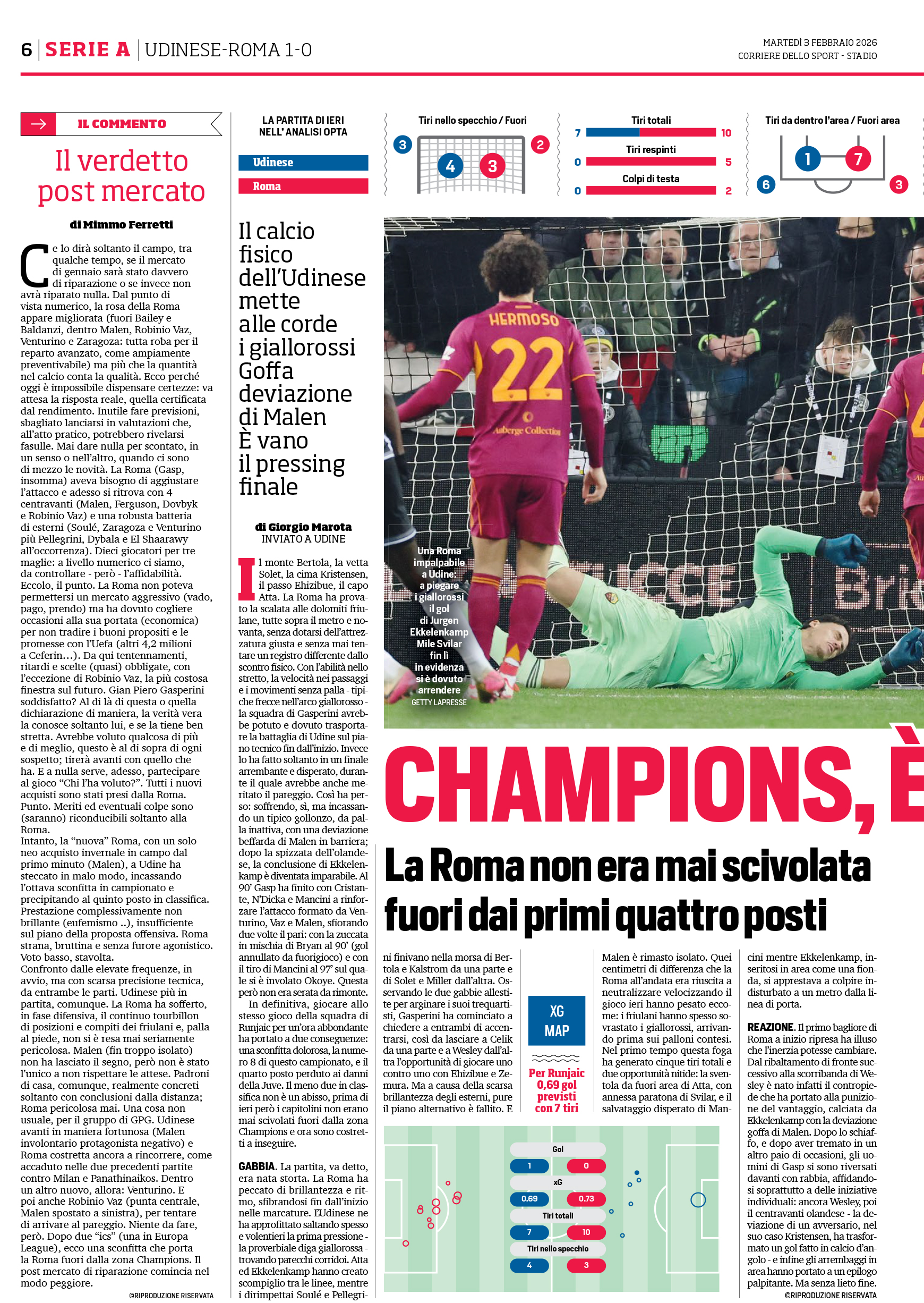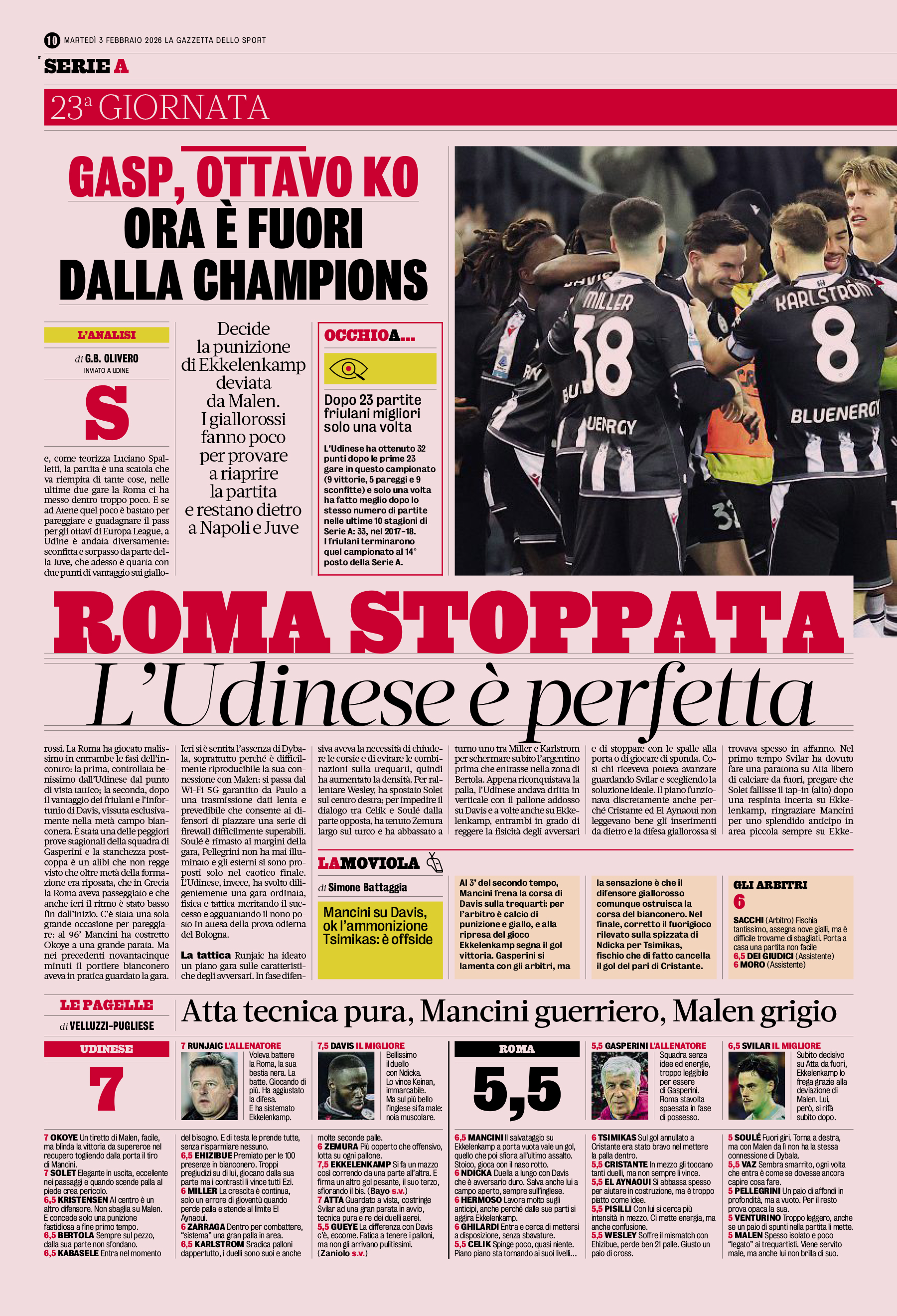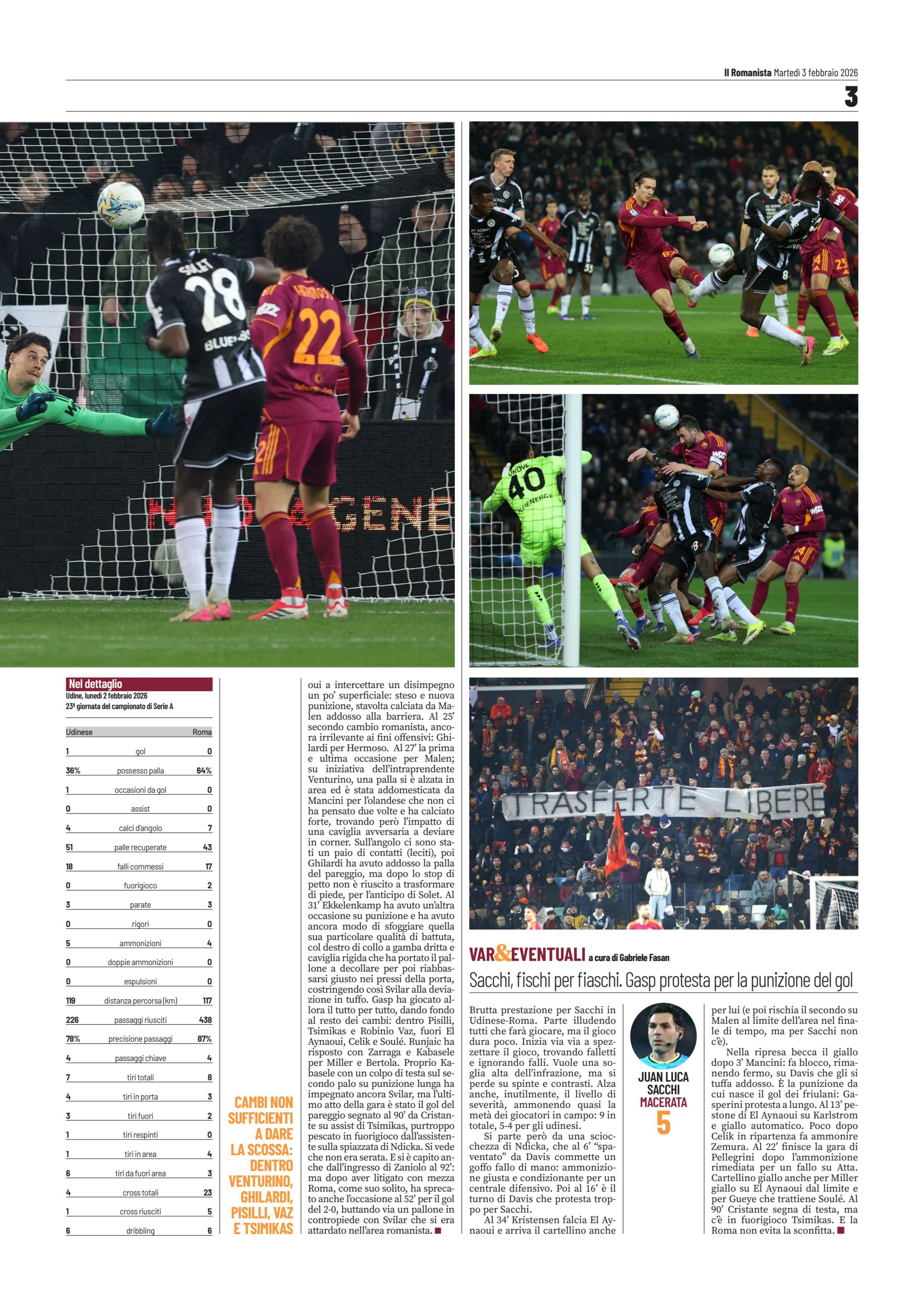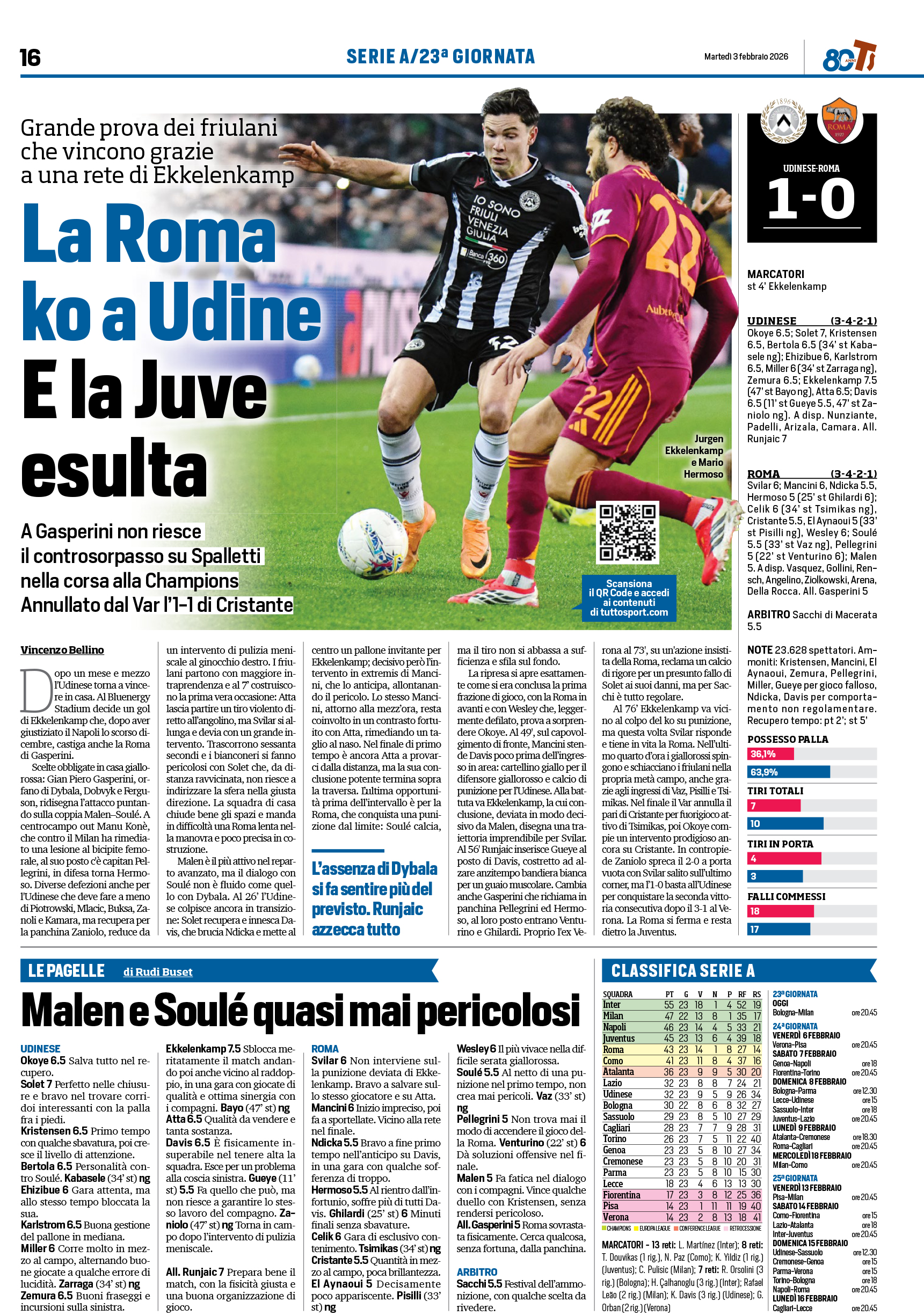 UDINESE/ROMA 1-0 Udine, Dacia Arena Lunedì, 2 febbraio 2026 ore 20.45 ![]() invia una e-mail per i resoconti |
