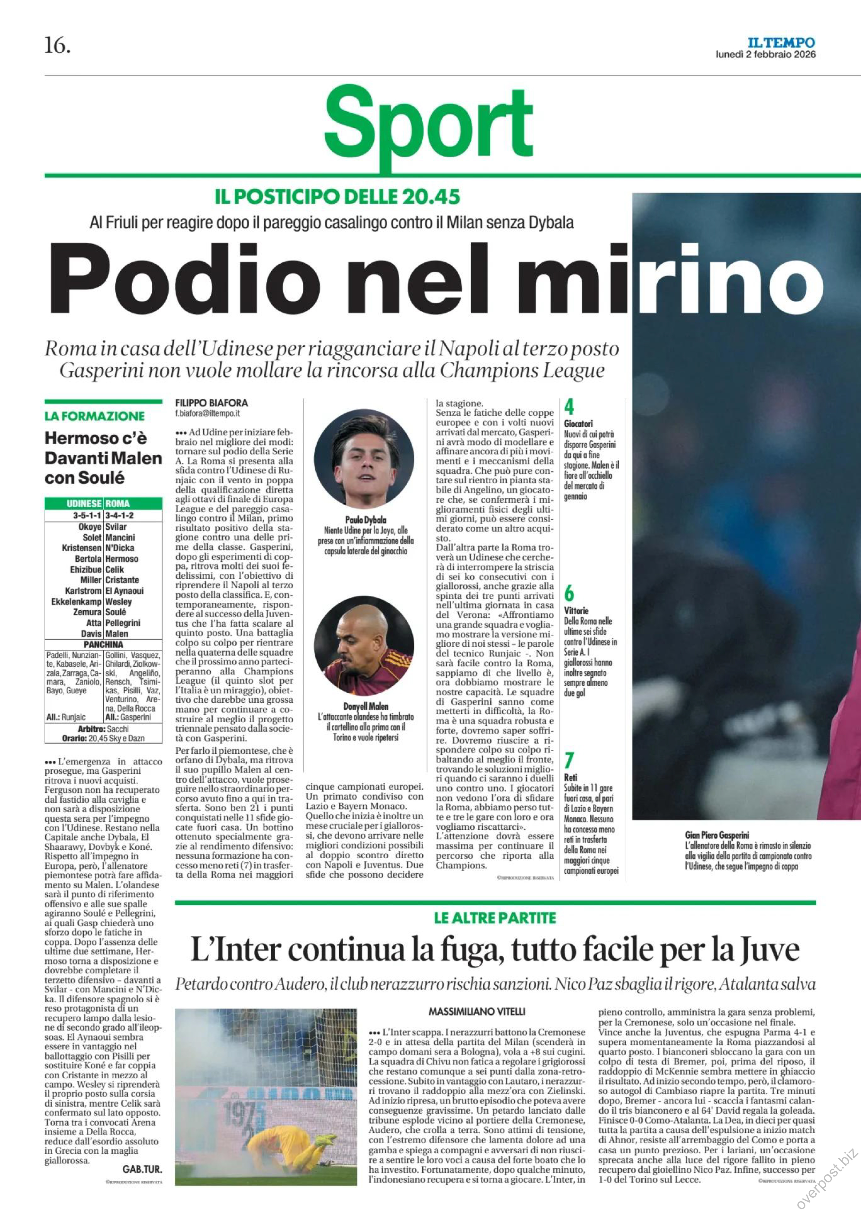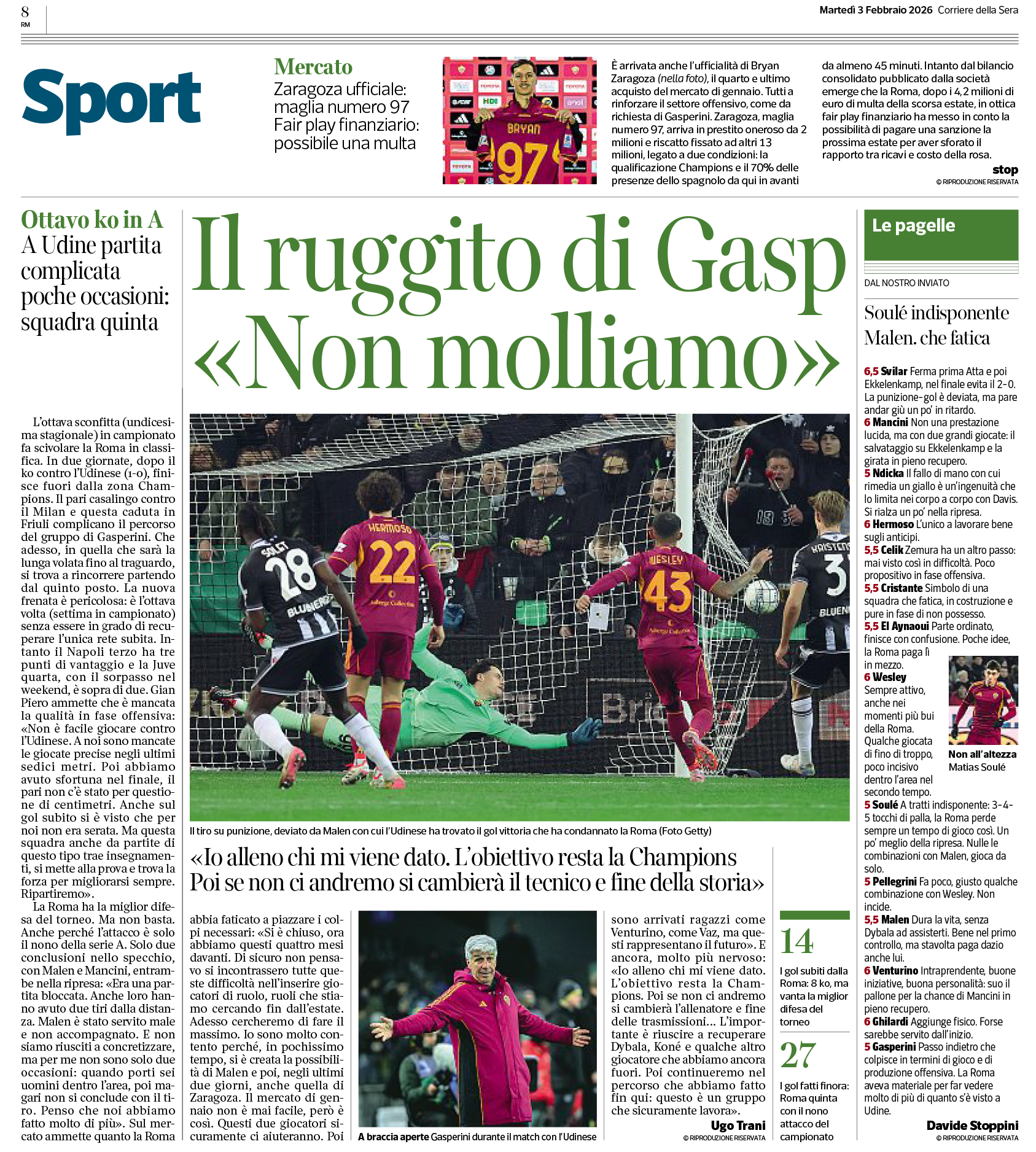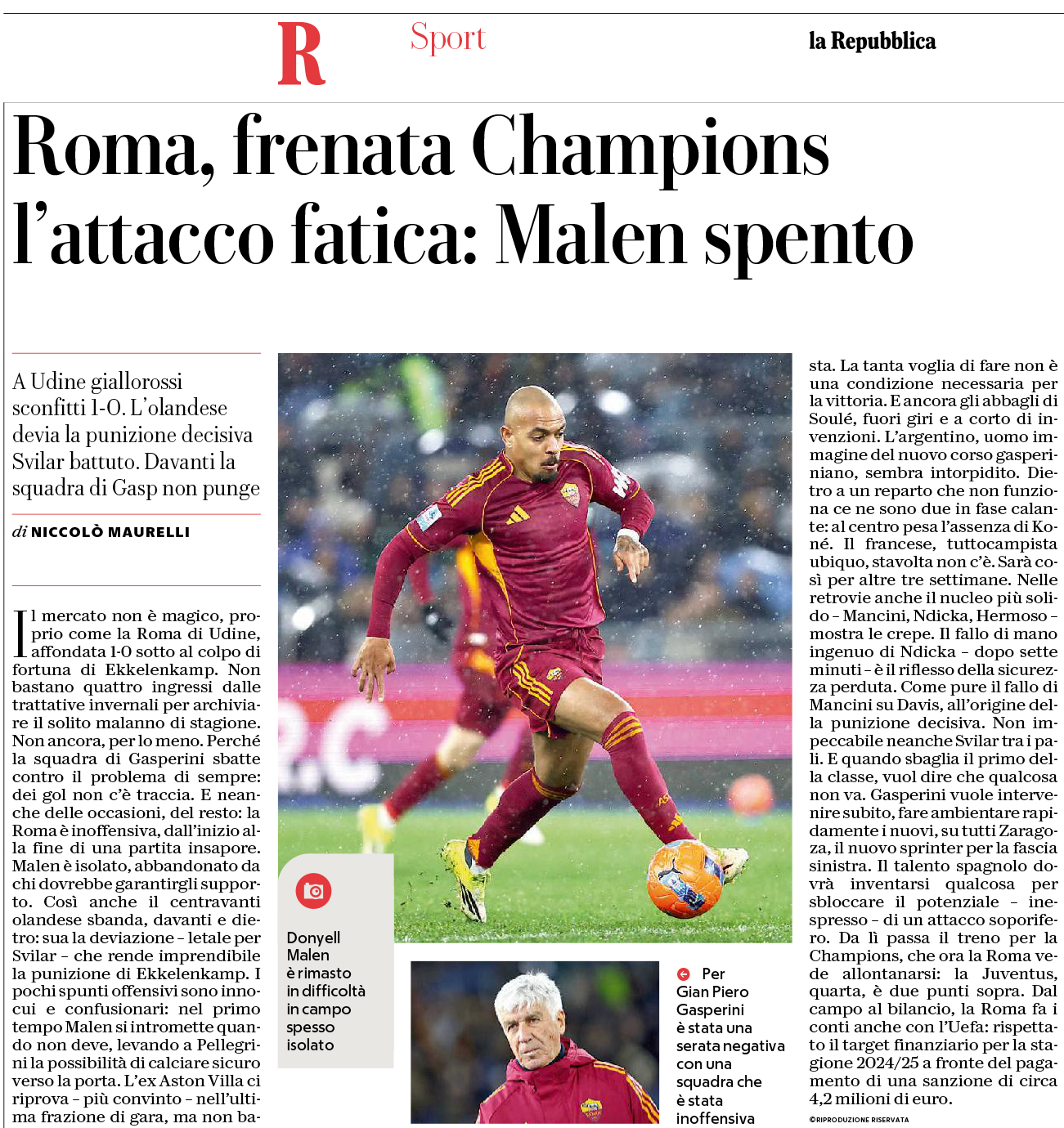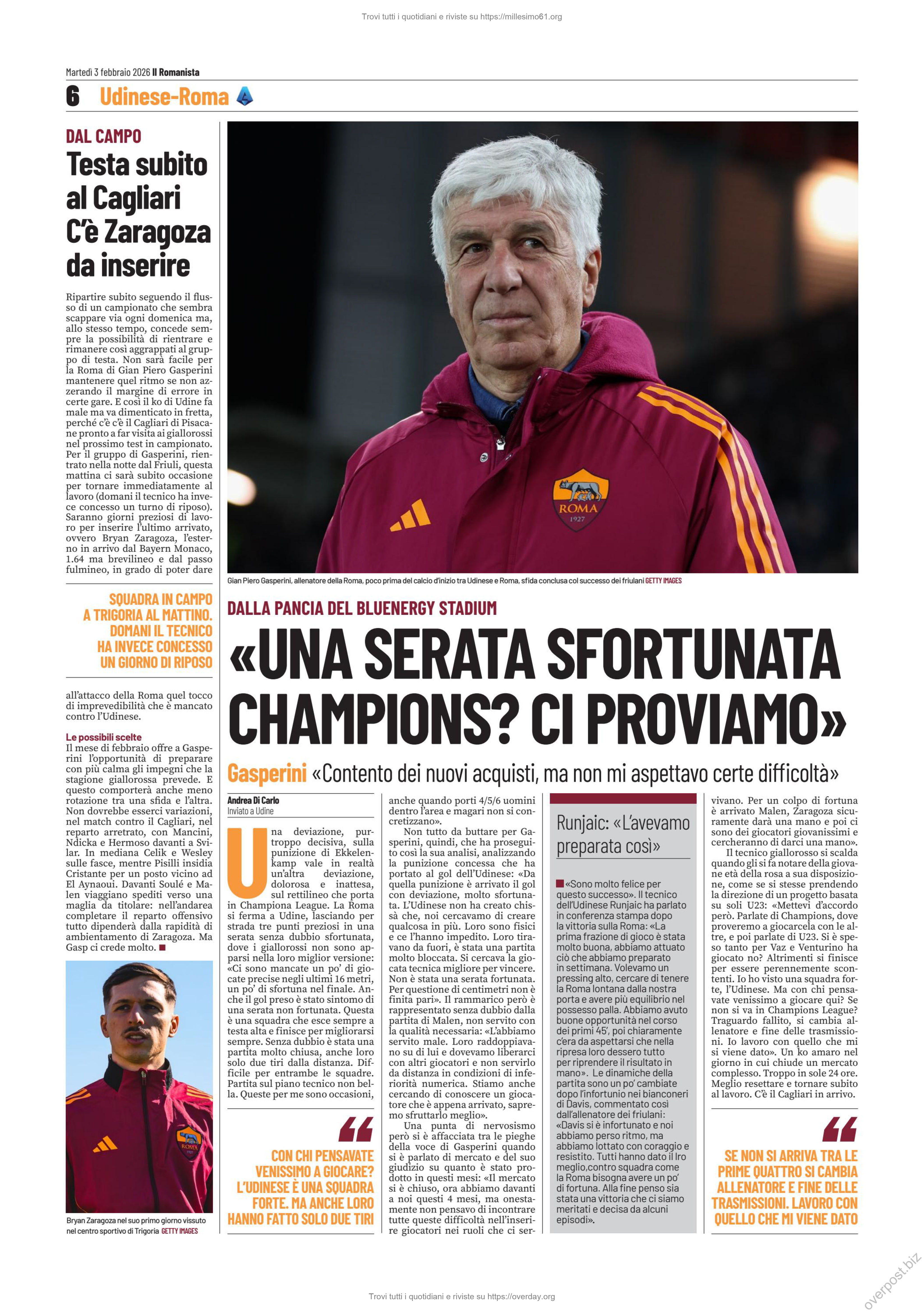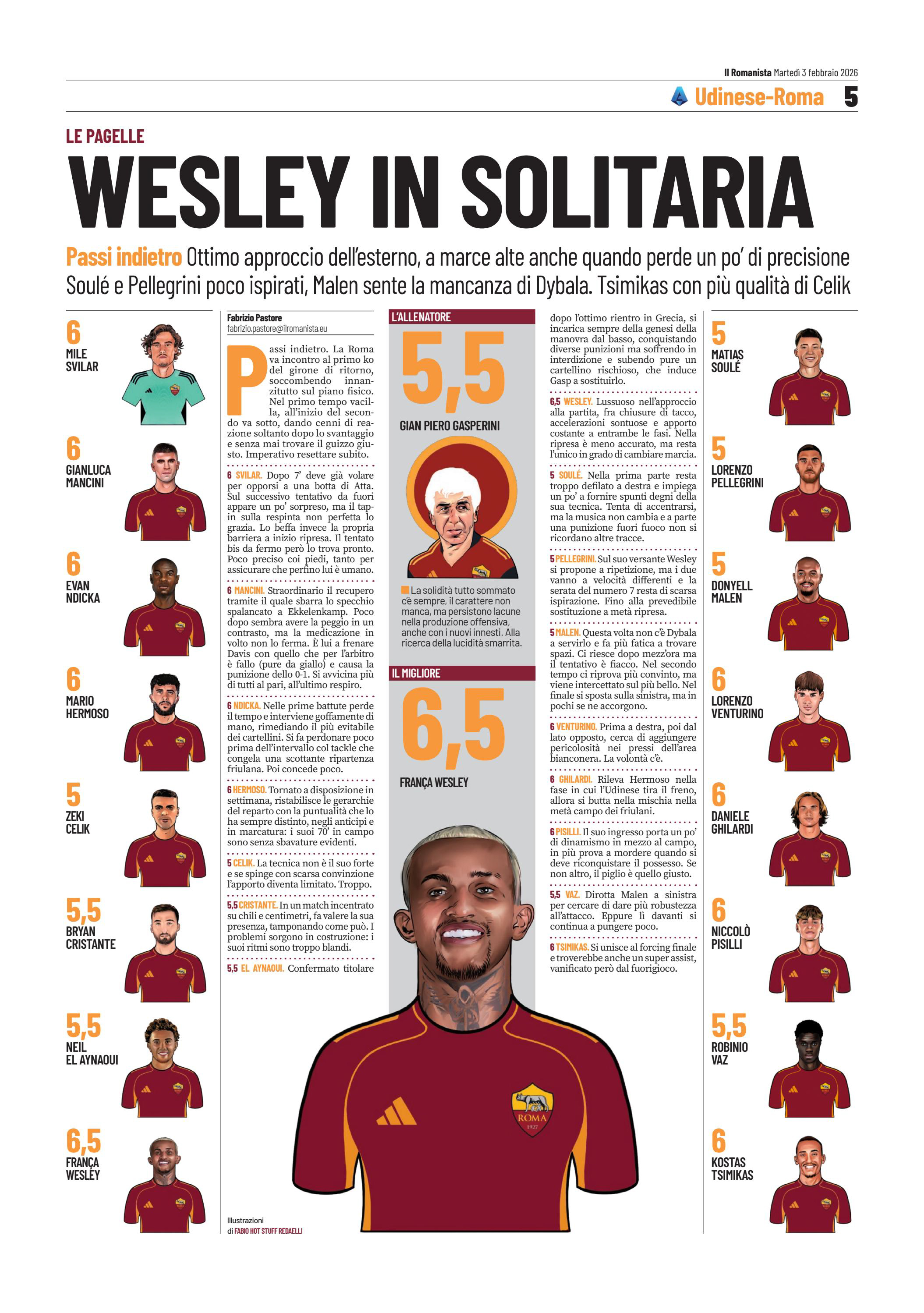 UDINESE/ROMA 1-0 Udine, Dacia Arena Lunedì, 2 febbraio 2026 ore 20.45 ![]() invia una e-mail per i resoconti |
