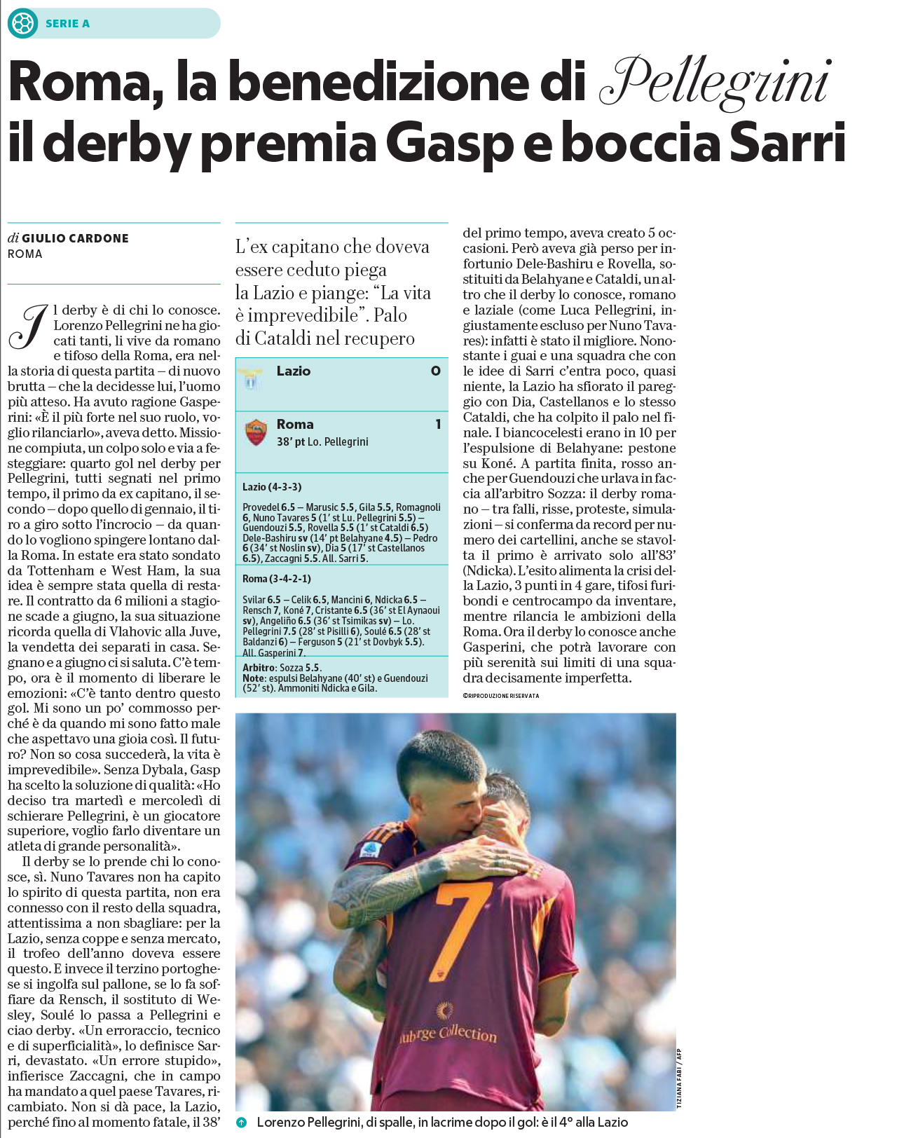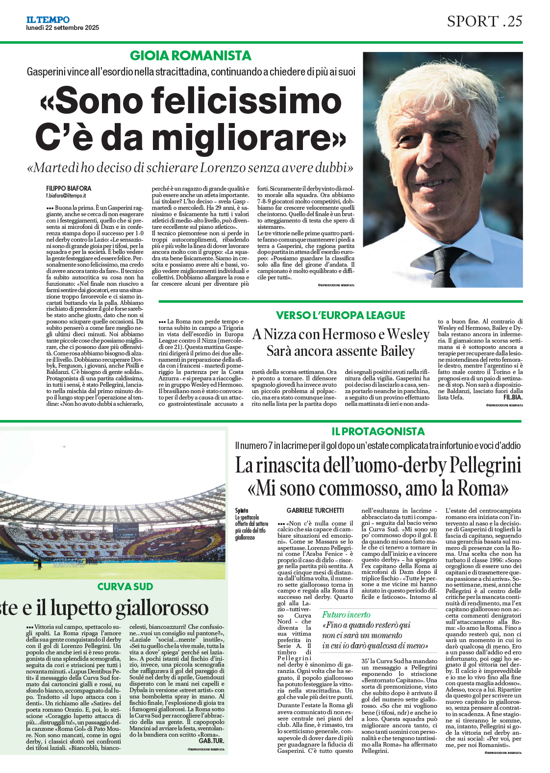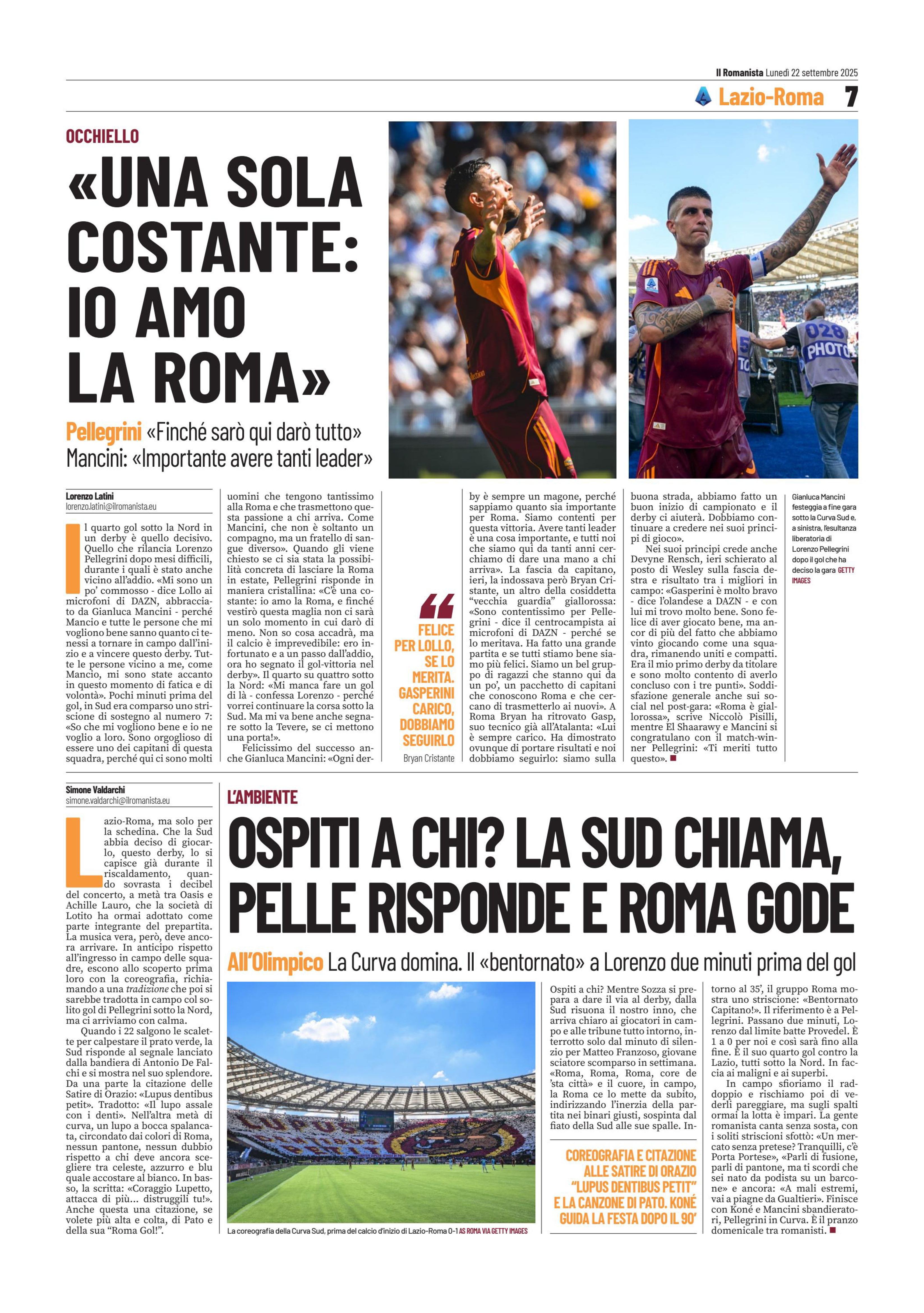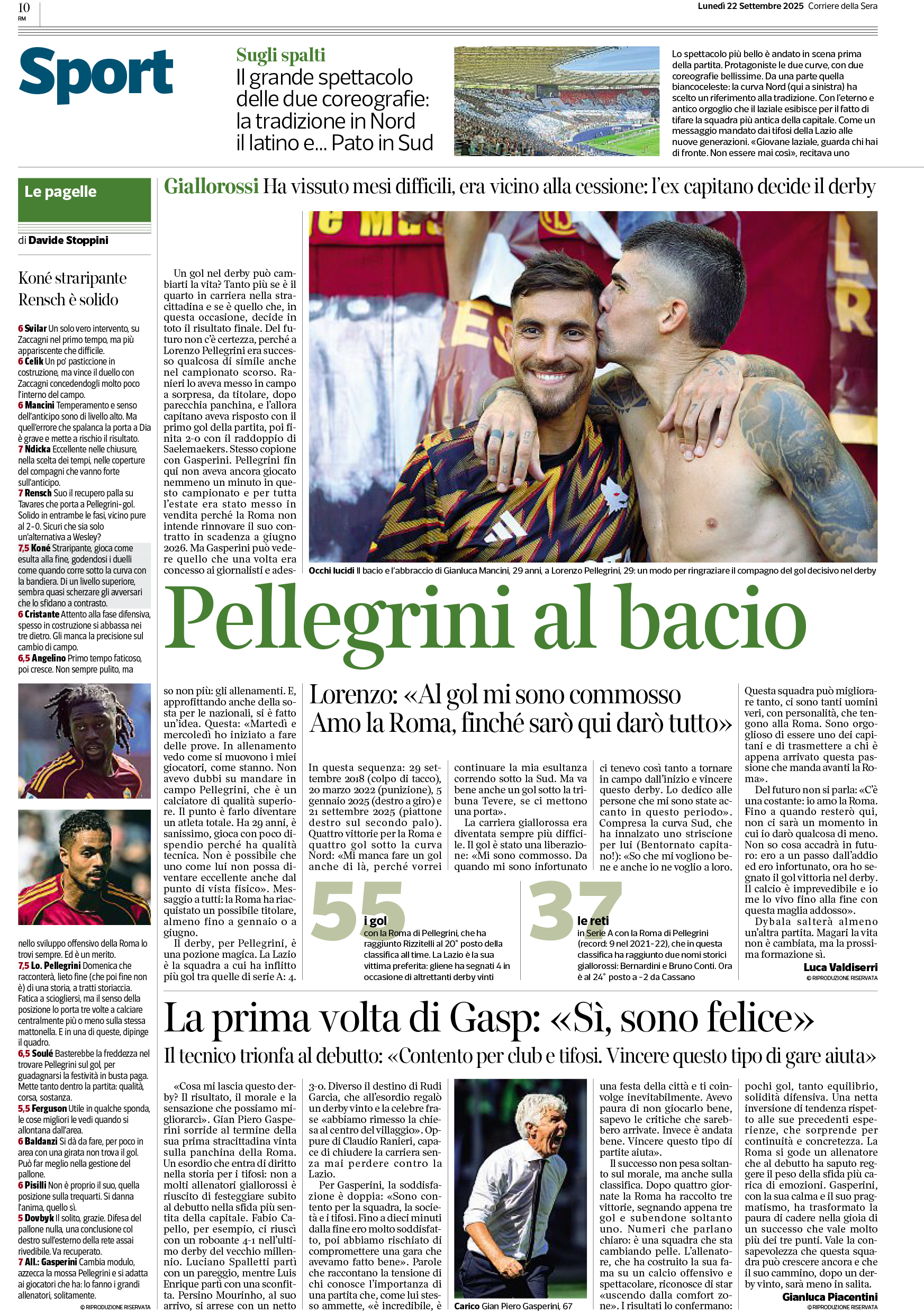 ROMA (3-5-2): Svilar 6.5; Celik 6, Mancini 6.5, Ndicka 6; Rensch 6, Cristante 6 (81' El Ayanaoui 6), Koné 7, Pellegrini 7 (73' Pisilli 6), Angelino 6.5 (81' Tsimikas 5.5); Soulé 6.5 (73' Baldanzi 6), Ferguson 5.5 (66' Dovbyk 6). All. Gasperini.