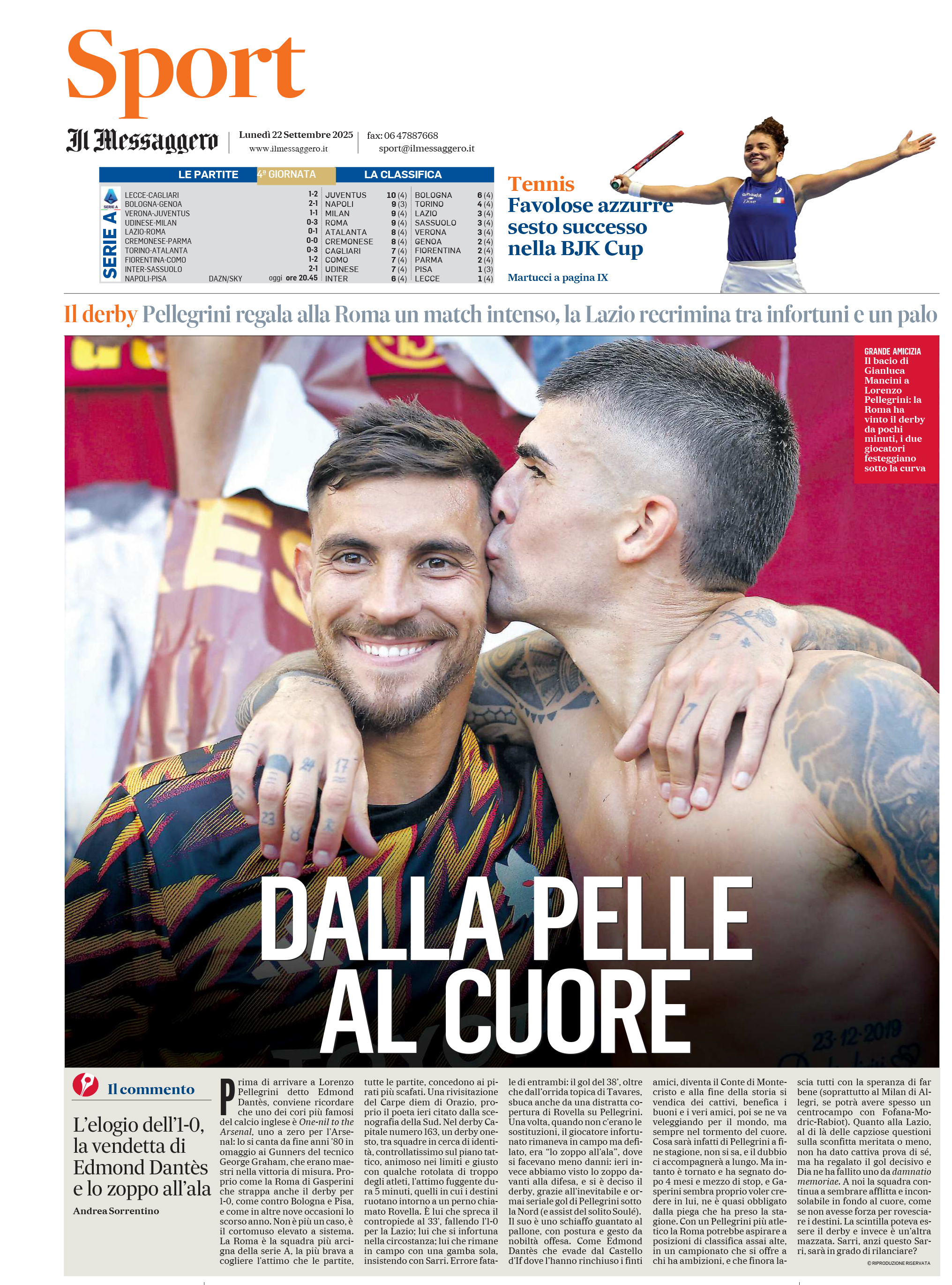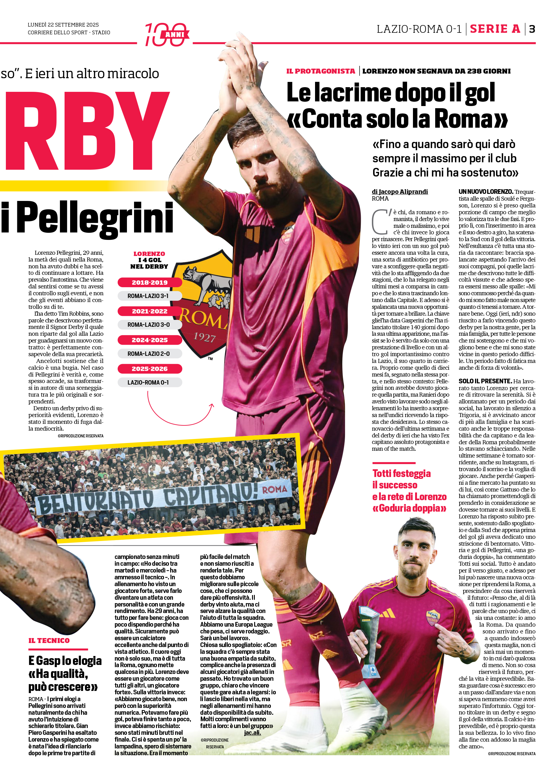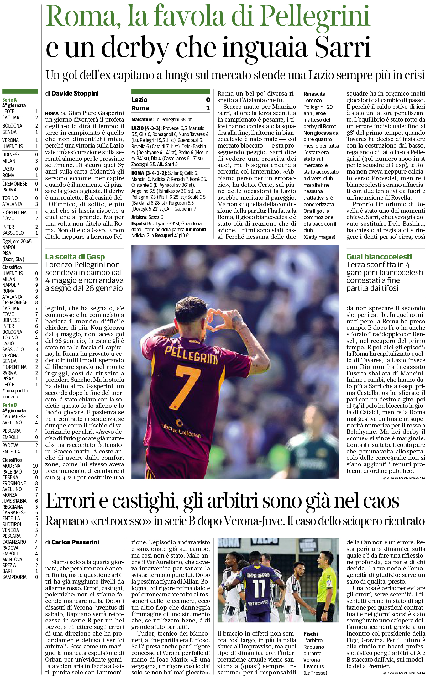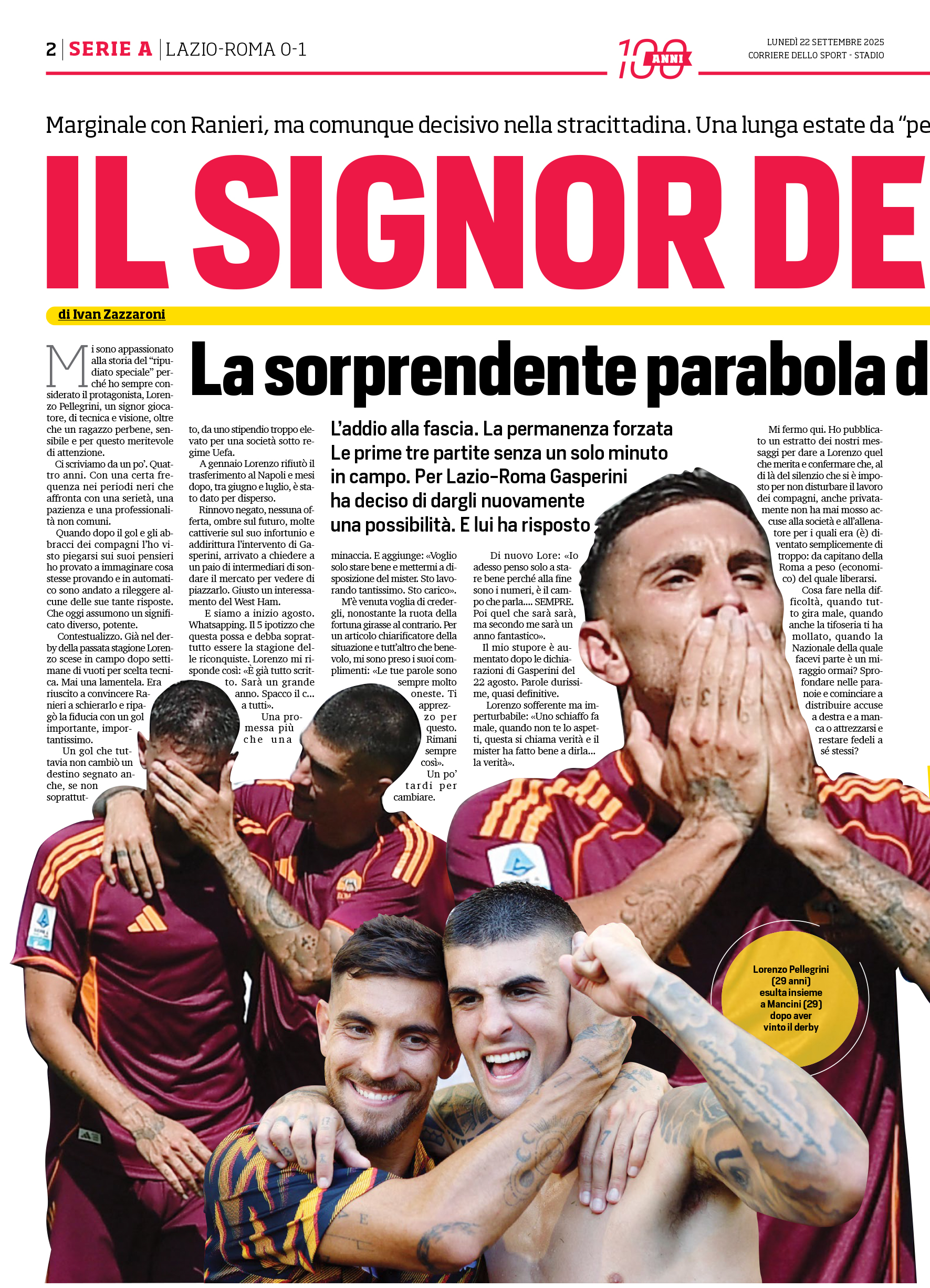 ROMA (3-5-2): Svilar 6.5; Celik 6, Mancini 6.5, Ndicka 6; Rensch 6, Cristante 6 (81' El Ayanaoui 6), Koné 7, Pellegrini 7 (73' Pisilli 6), Angelino 6.5 (81' Tsimikas 5.5); Soulé 6.5 (73' Baldanzi 6), Ferguson 5.5 (66' Dovbyk 6). All. Gasperini.